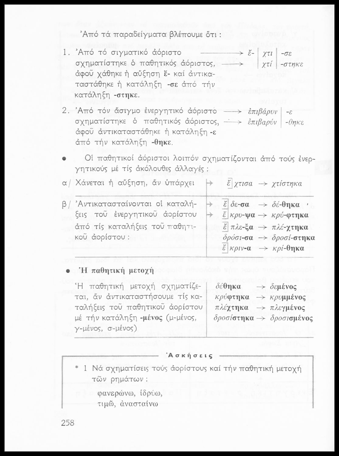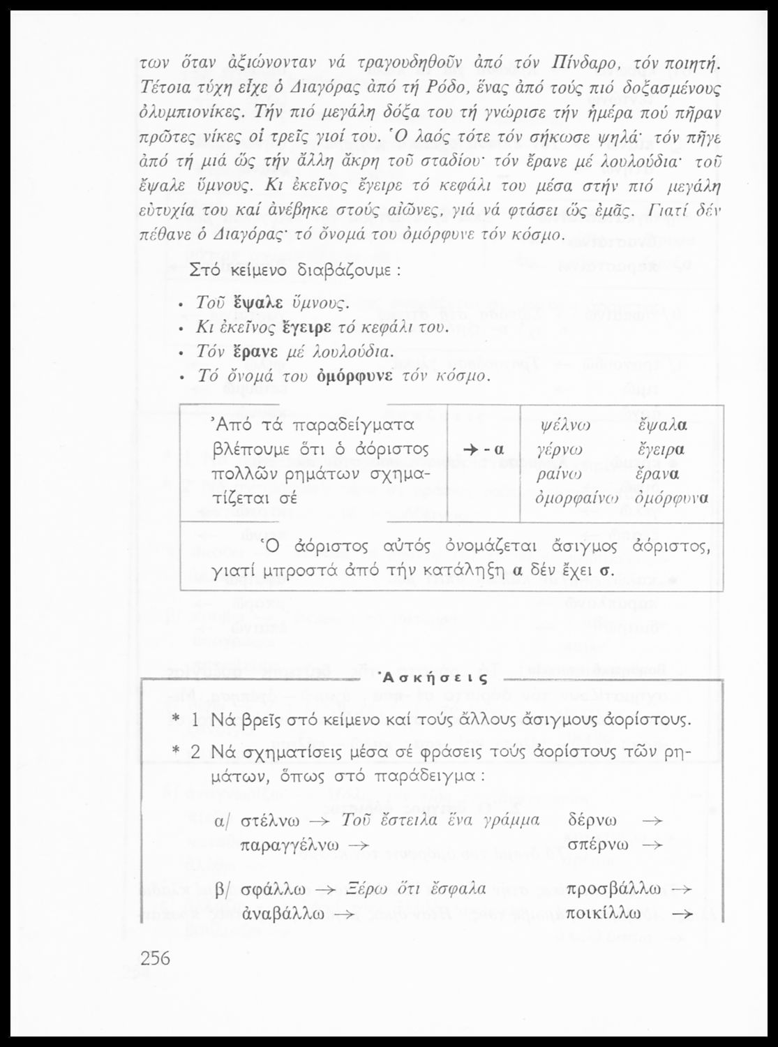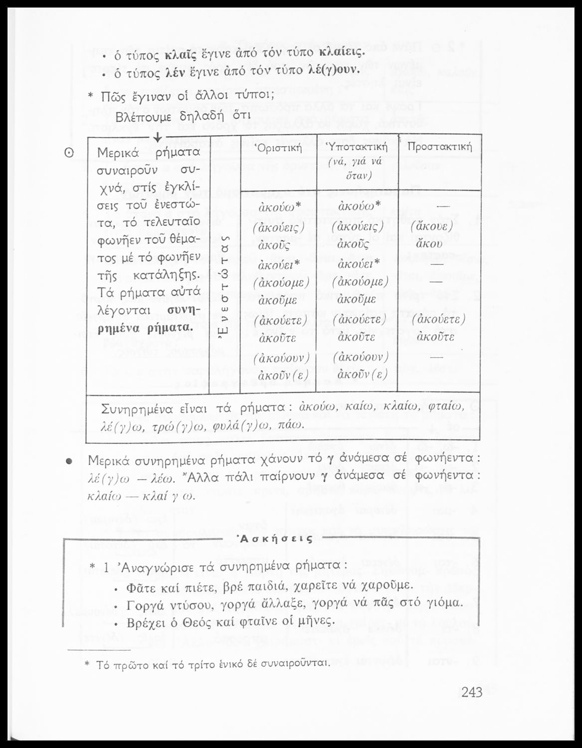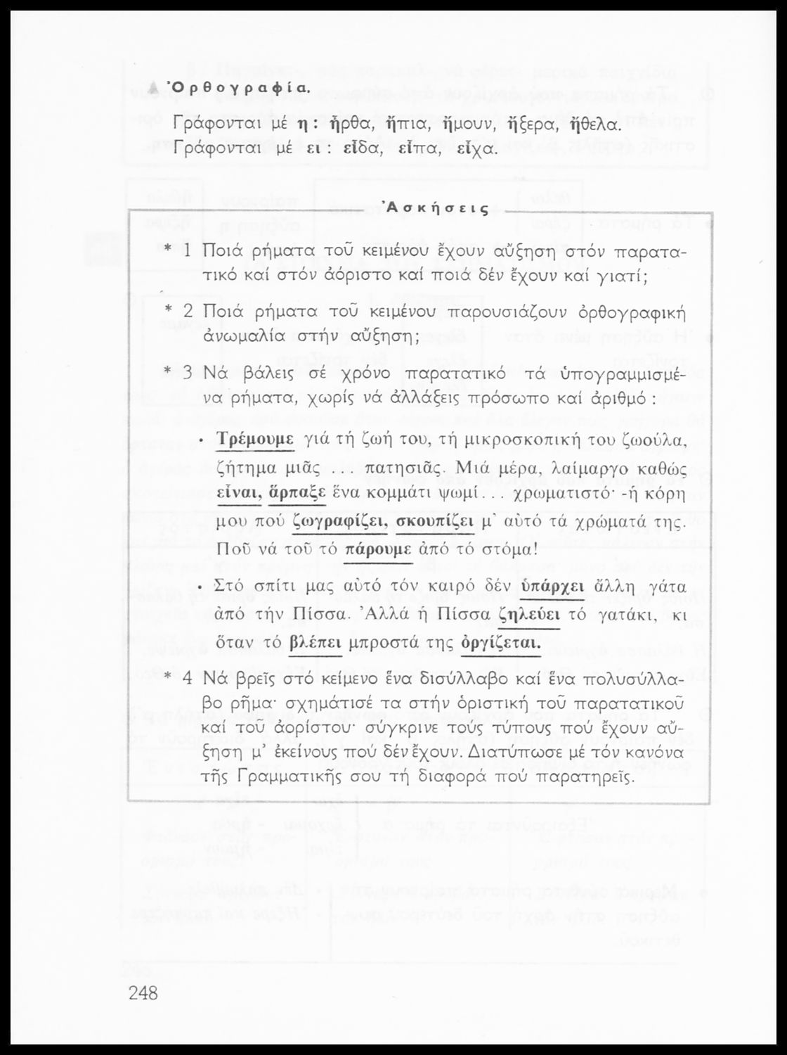 Σχολικό εγχειρίδιο της Ε΄ και ΣΤ΄ τάξης Δημοτικού για την γραμματική της ελληνικής γλώσσας με κανόνες και παραδείγματα. Στο επίμετρο υπάρχουν πίνακες με ανώμαλους σχηματισμούς ρημάτων.
