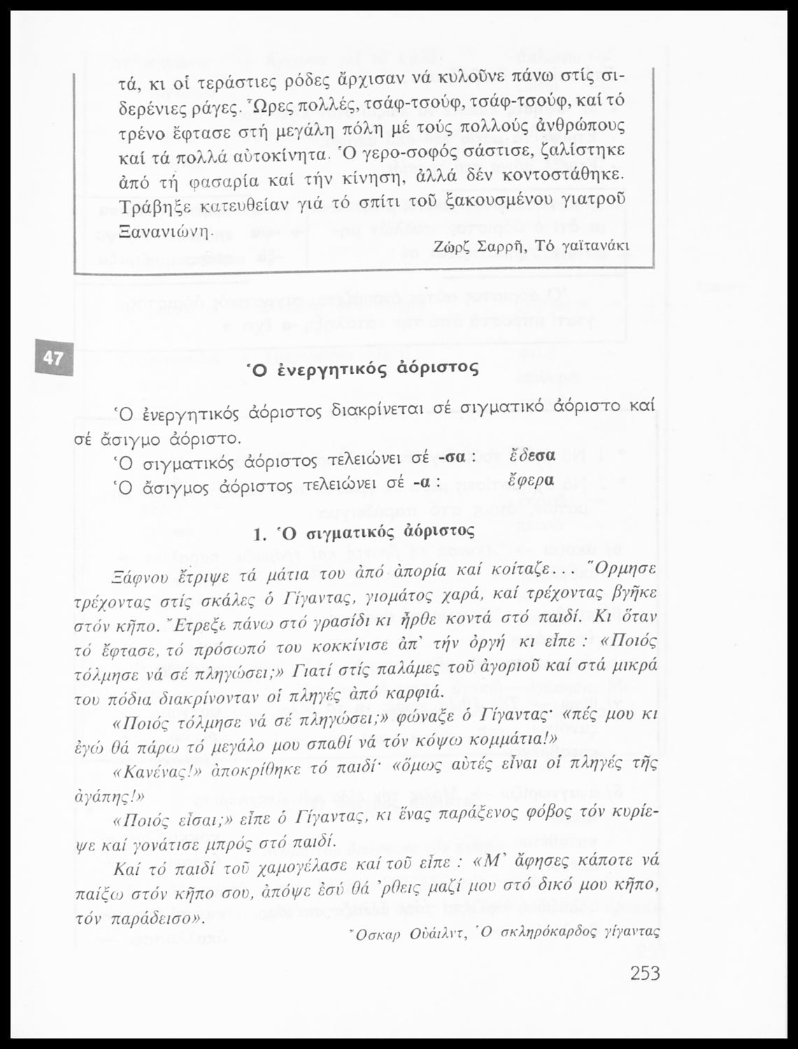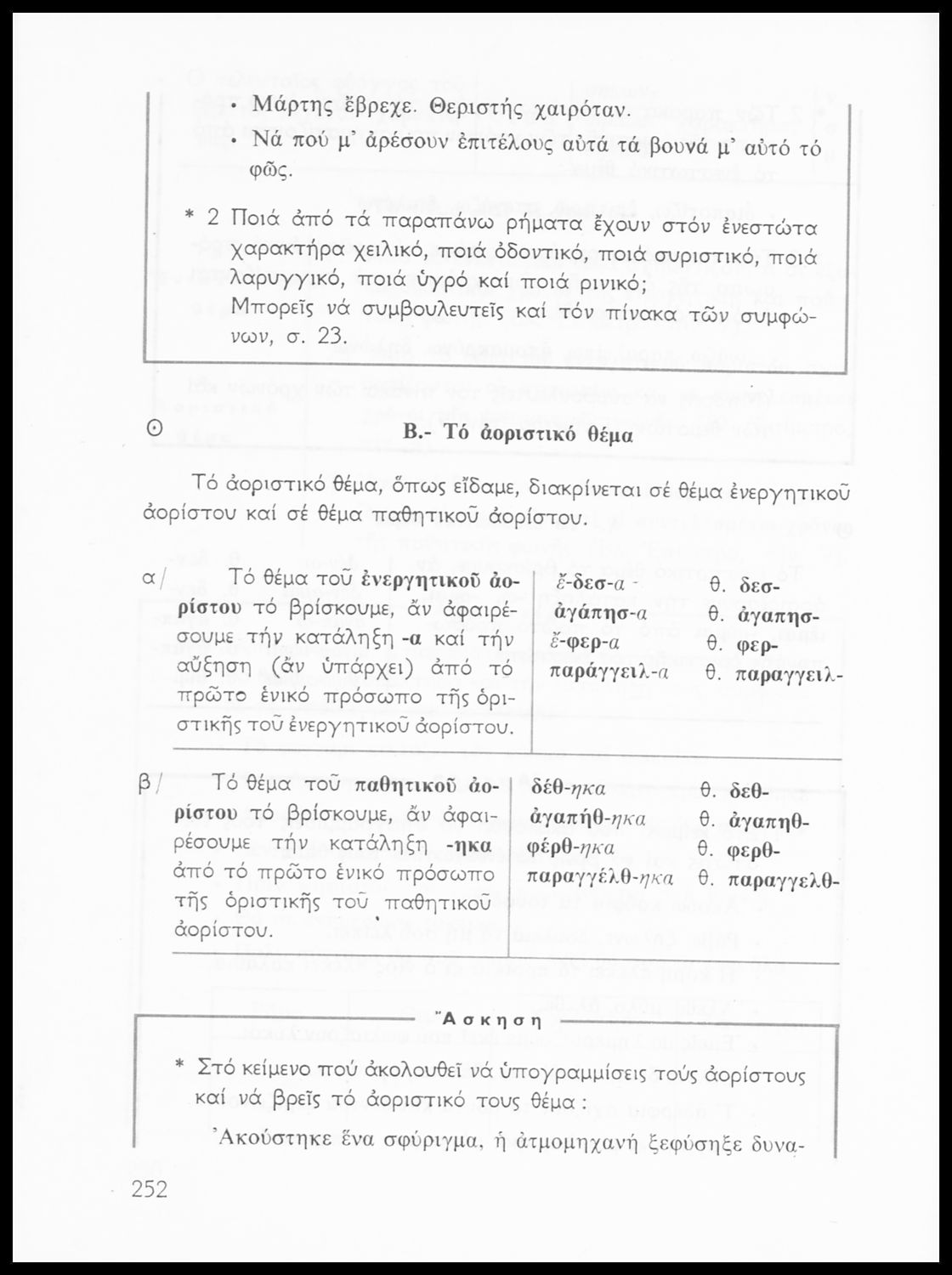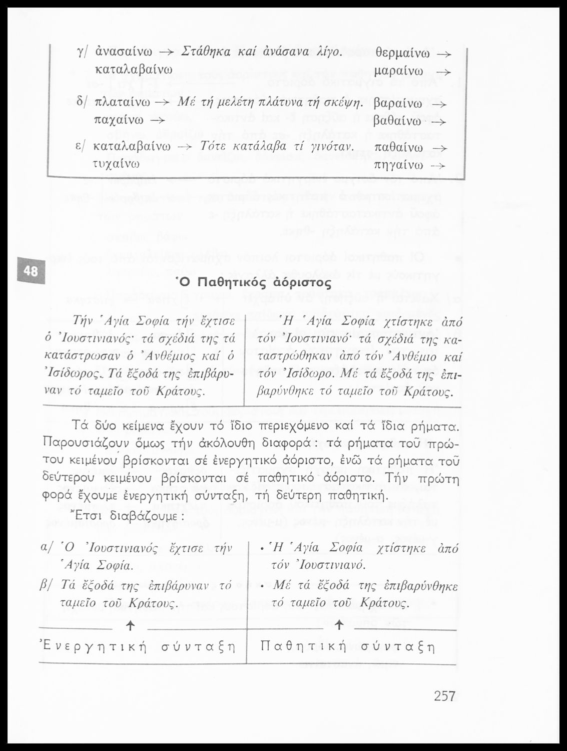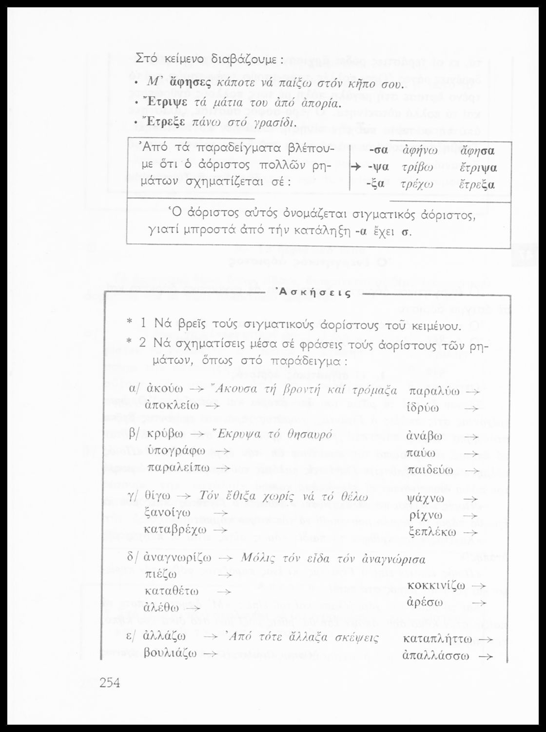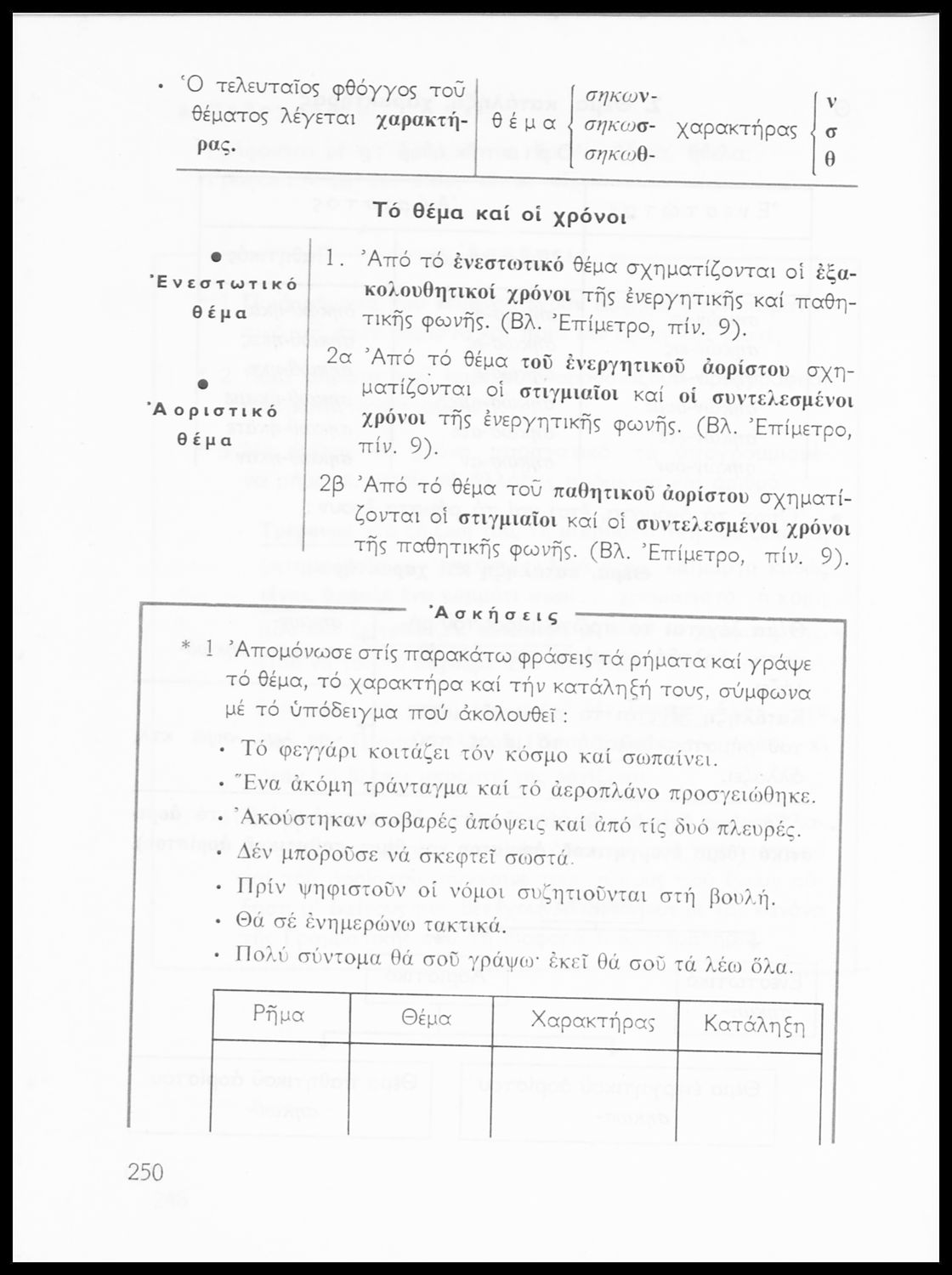 Σχολικό εγχειρίδιο της Ε΄ και ΣΤ΄ τάξης Δημοτικού για την γραμματική της ελληνικής γλώσσας με κανόνες και παραδείγματα. Στο επίμετρο υπάρχουν πίνακες με ανώμαλους σχηματισμούς ρημάτων.