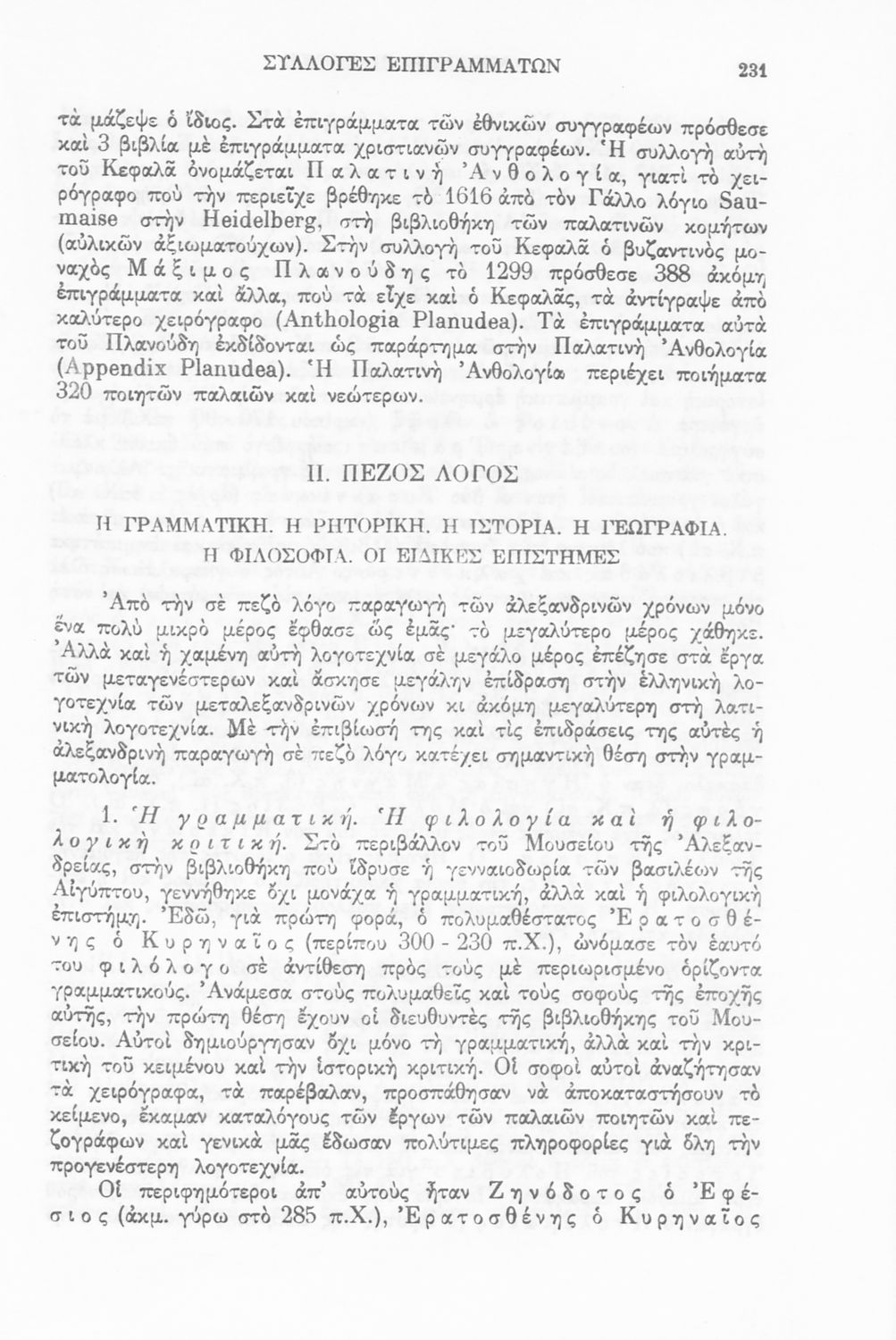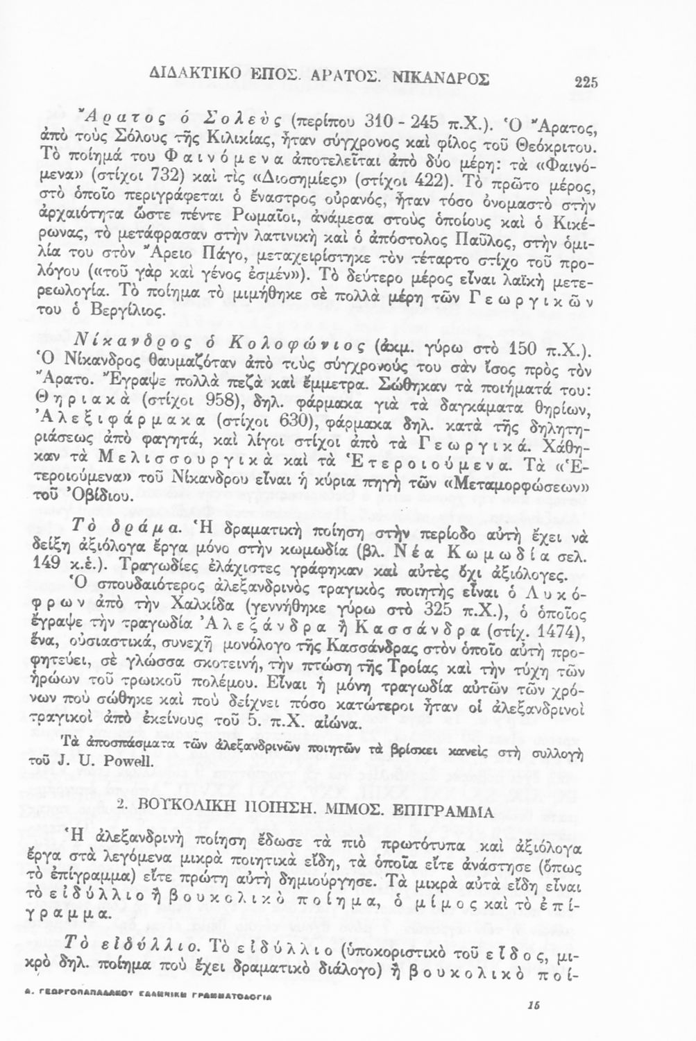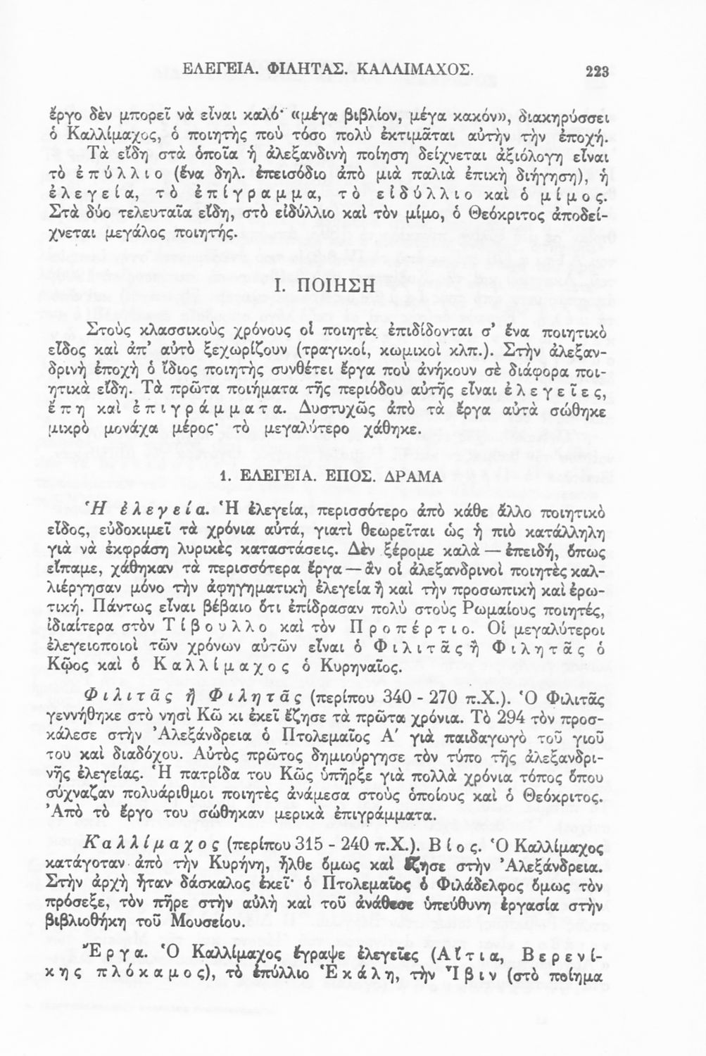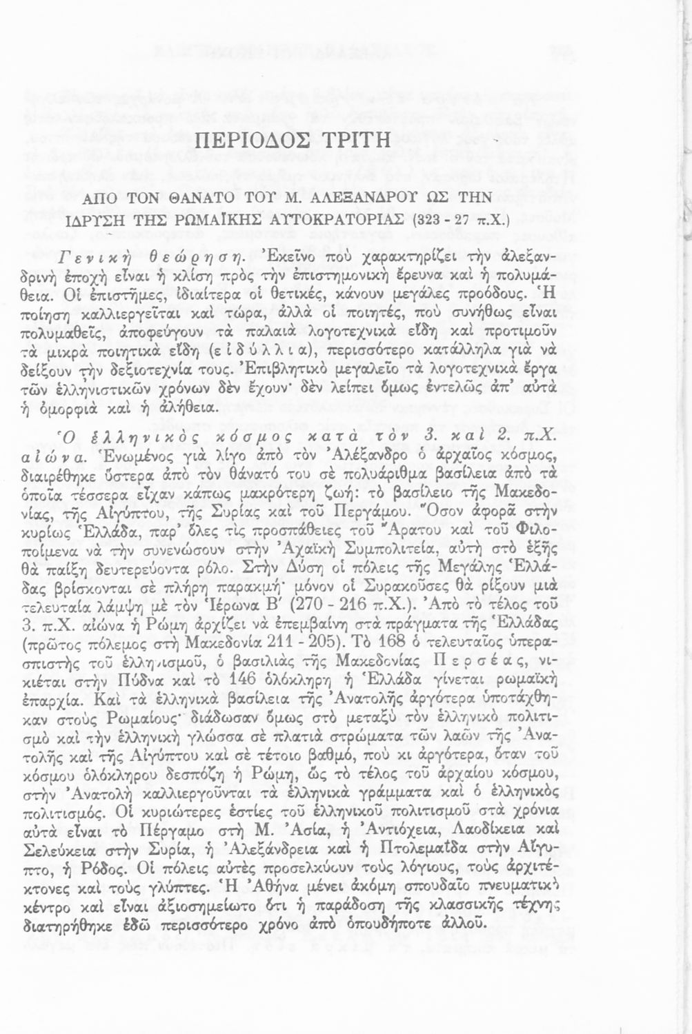 Επιστημονικό σύγγραμμα που εξετάζει την εξέλιξη της ποίησης και του πεζού λόγου κατά την Αρχαϊκή, Κλασσική, Αλεξανδρινή και Ρωμαϊκή και Βυζαντινή περίοδο.