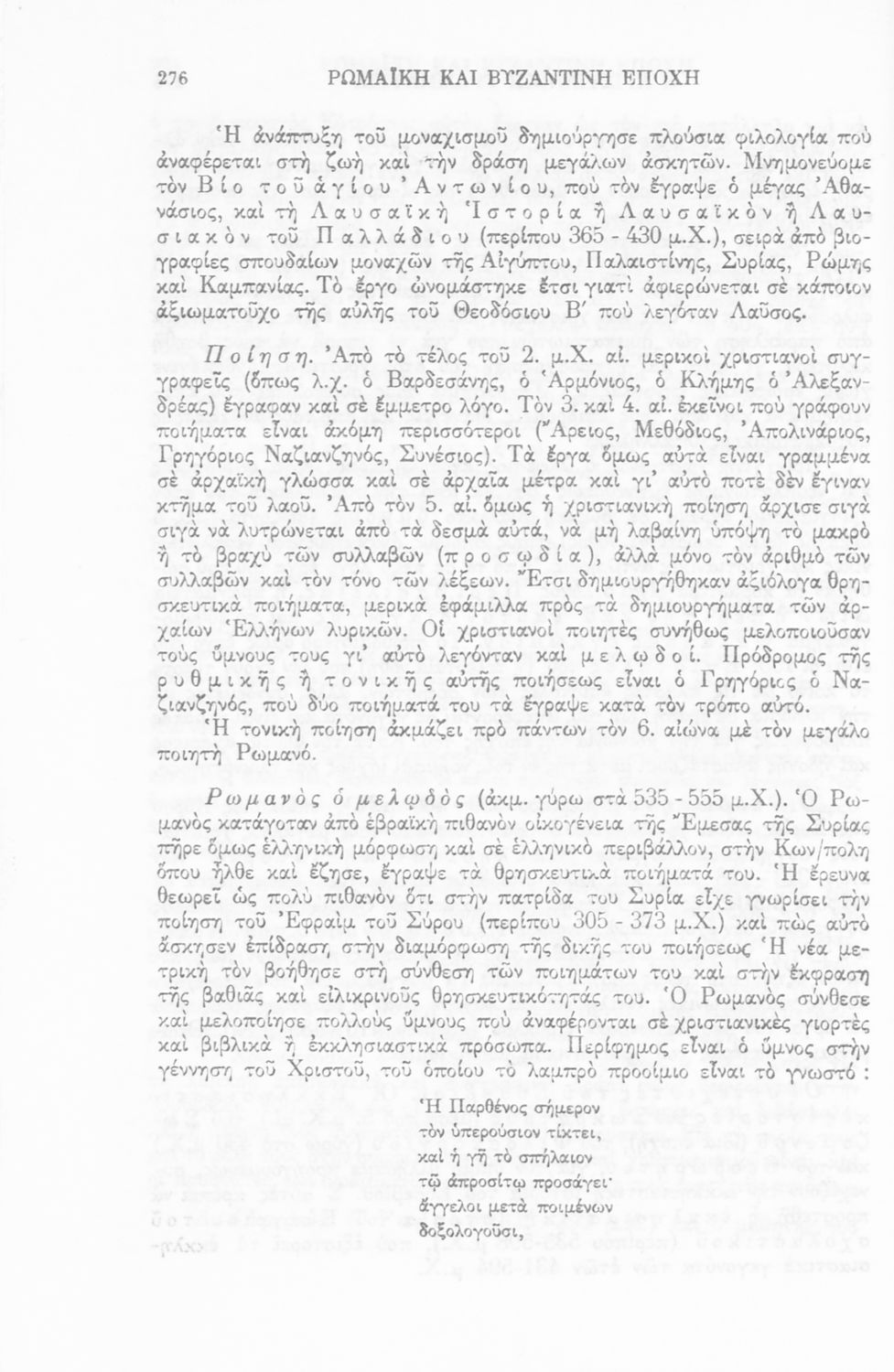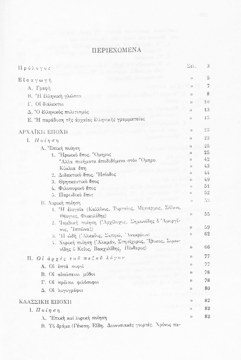 Επιστημονικό σύγγραμμα που εξετάζει την εξέλιξη της ποίησης και του πεζού λόγου κατά την Αρχαϊκή, Κλασσική, Αλεξανδρινή και Ρωμαϊκή και Βυζαντινή περίοδο.