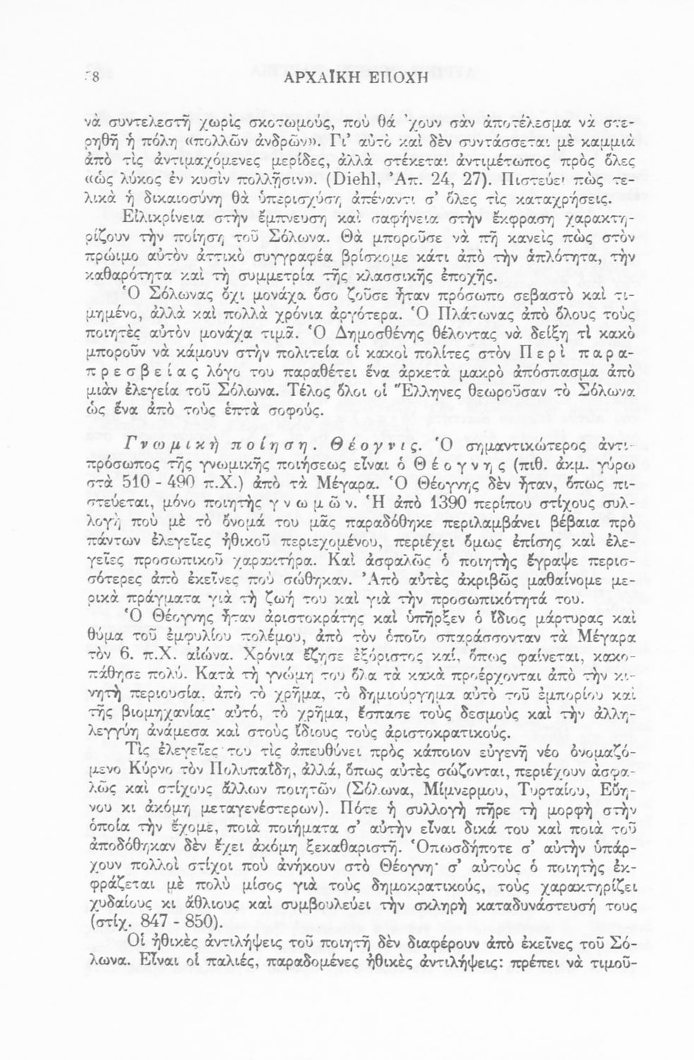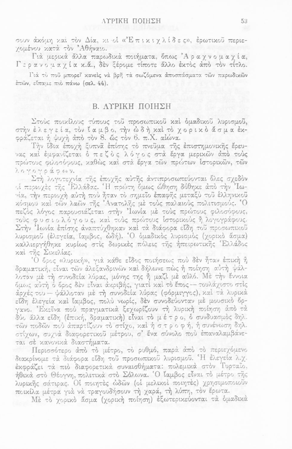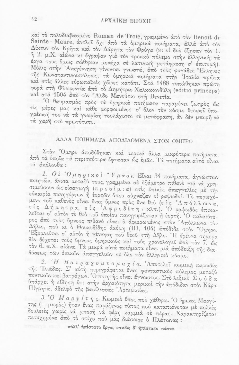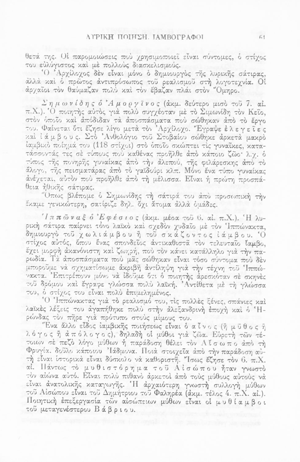 Επιστημονικό σύγγραμμα που εξετάζει την εξέλιξη της ποίησης και του πεζού λόγου κατά την Αρχαϊκή, Κλασσική, Αλεξανδρινή και Ρωμαϊκή και Βυζαντινή περίοδο.