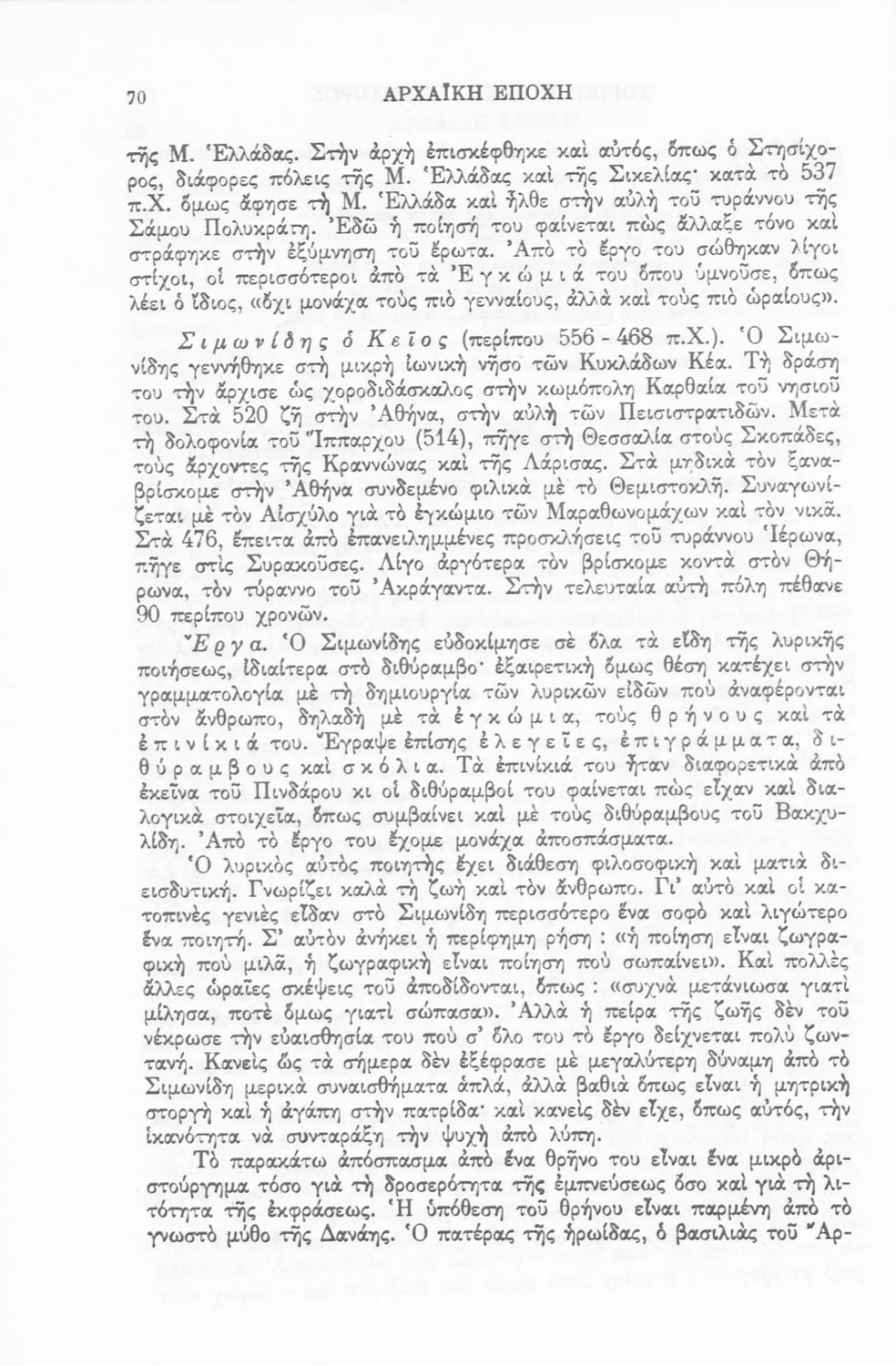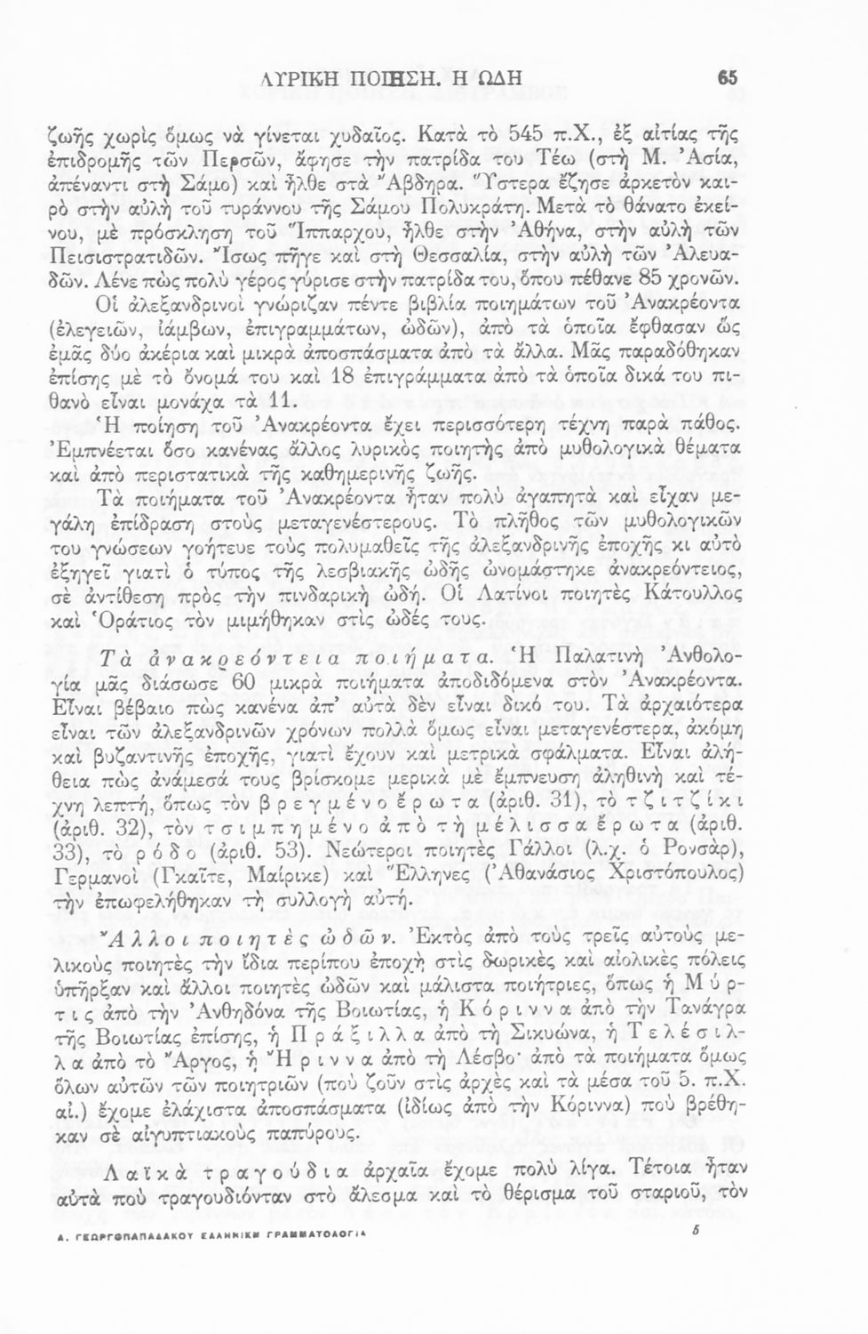 Γλώσσα: Δημοτική Παρουσίαση περιεχομένου: Επιστημονικό σύγγραμμα που εξετάζει την εξέλιξη της ποίησης και του πεζού λόγου κατά την Αρχαϊκή, Κλασσική, Αλεξανδρινή και Ρωμαϊκή και Βυζαντινή περίοδο. |