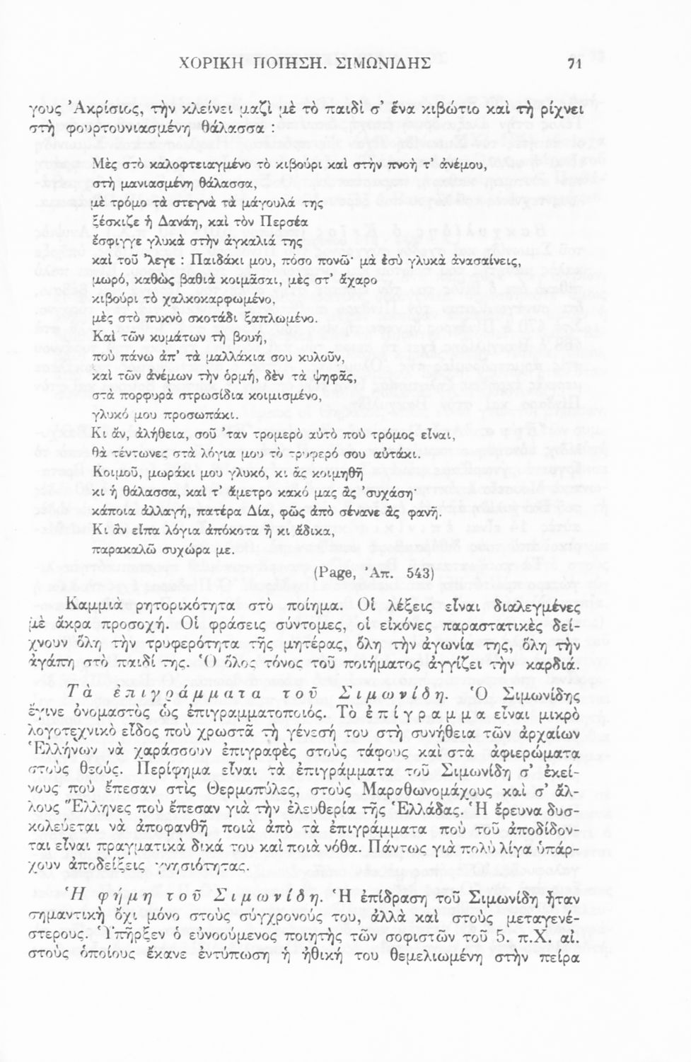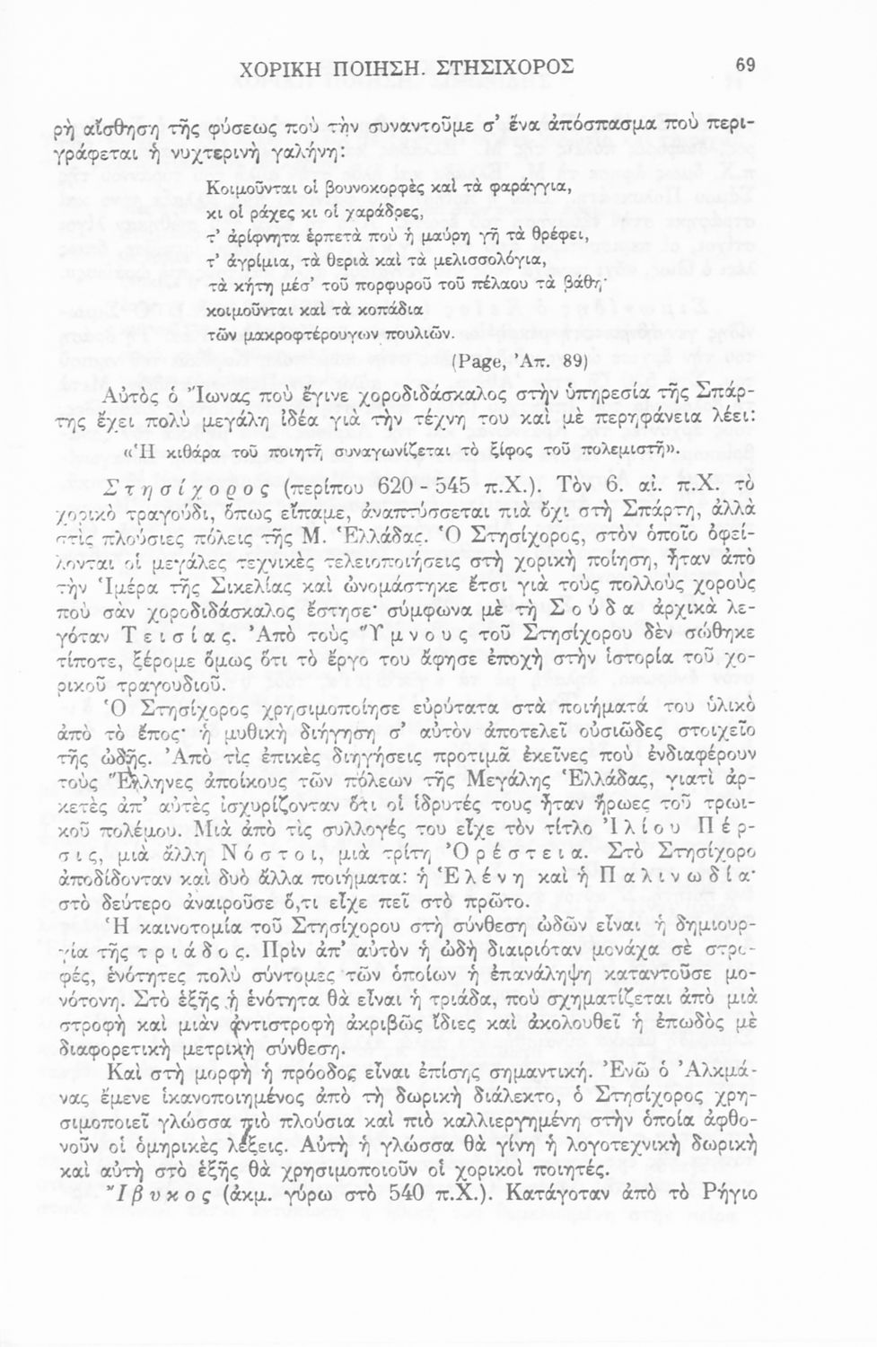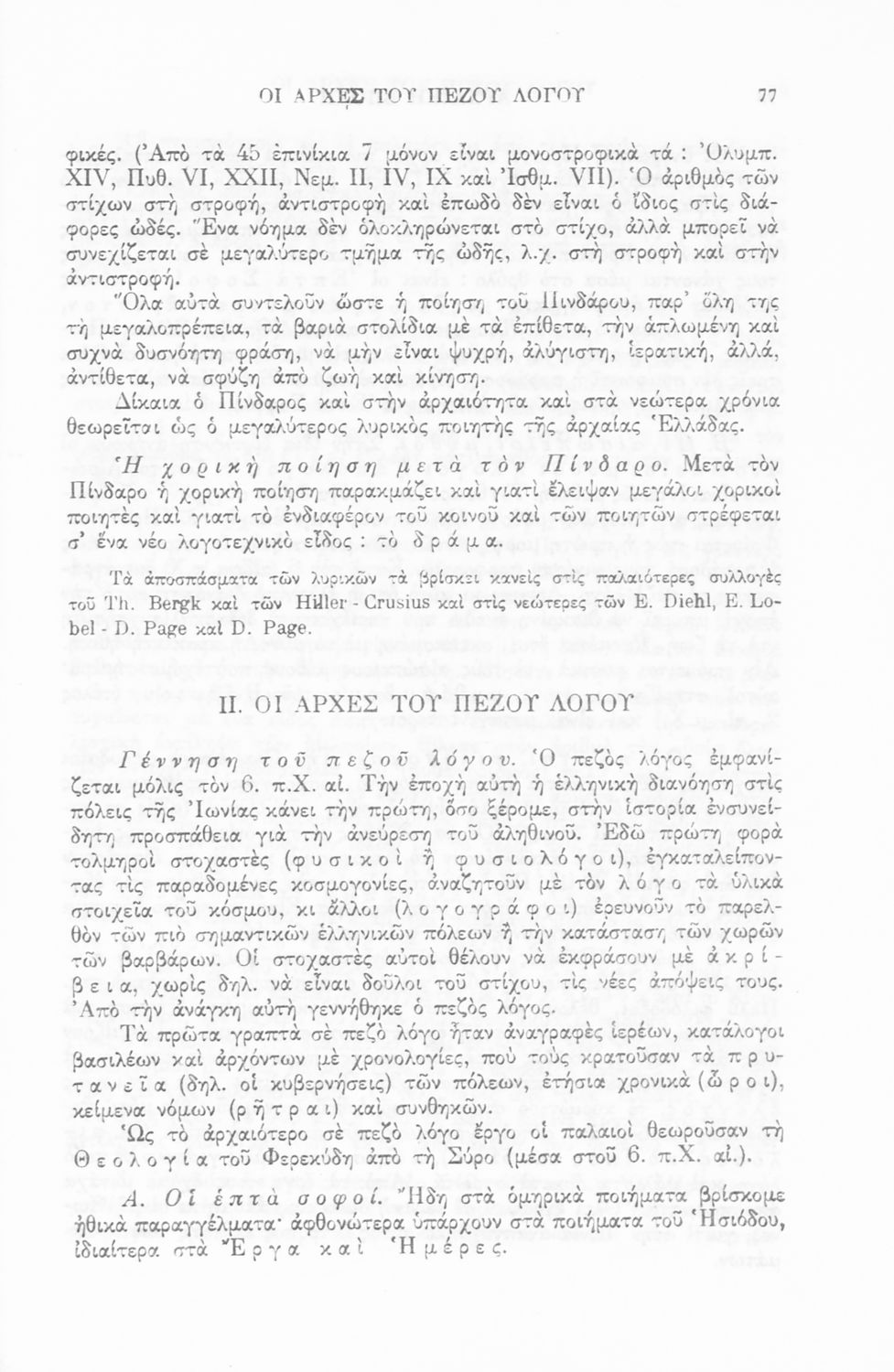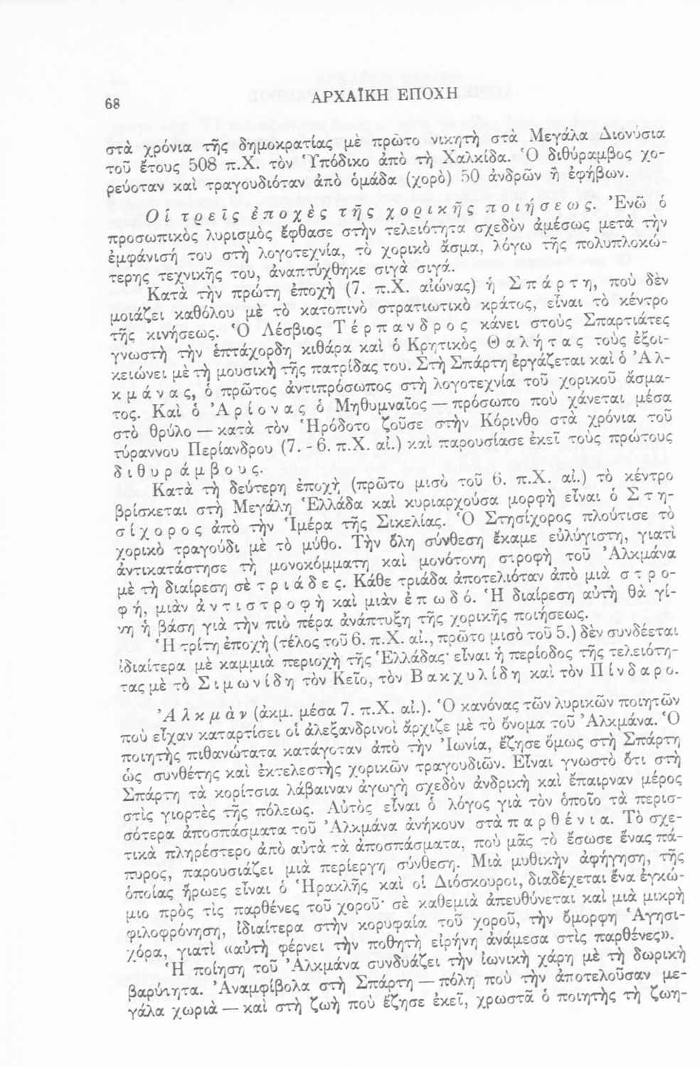 Επιστημονικό σύγγραμμα που εξετάζει την εξέλιξη της ποίησης και του πεζού λόγου κατά την Αρχαϊκή, Κλασσική, Αλεξανδρινή και Ρωμαϊκή και Βυζαντινή περίοδο.