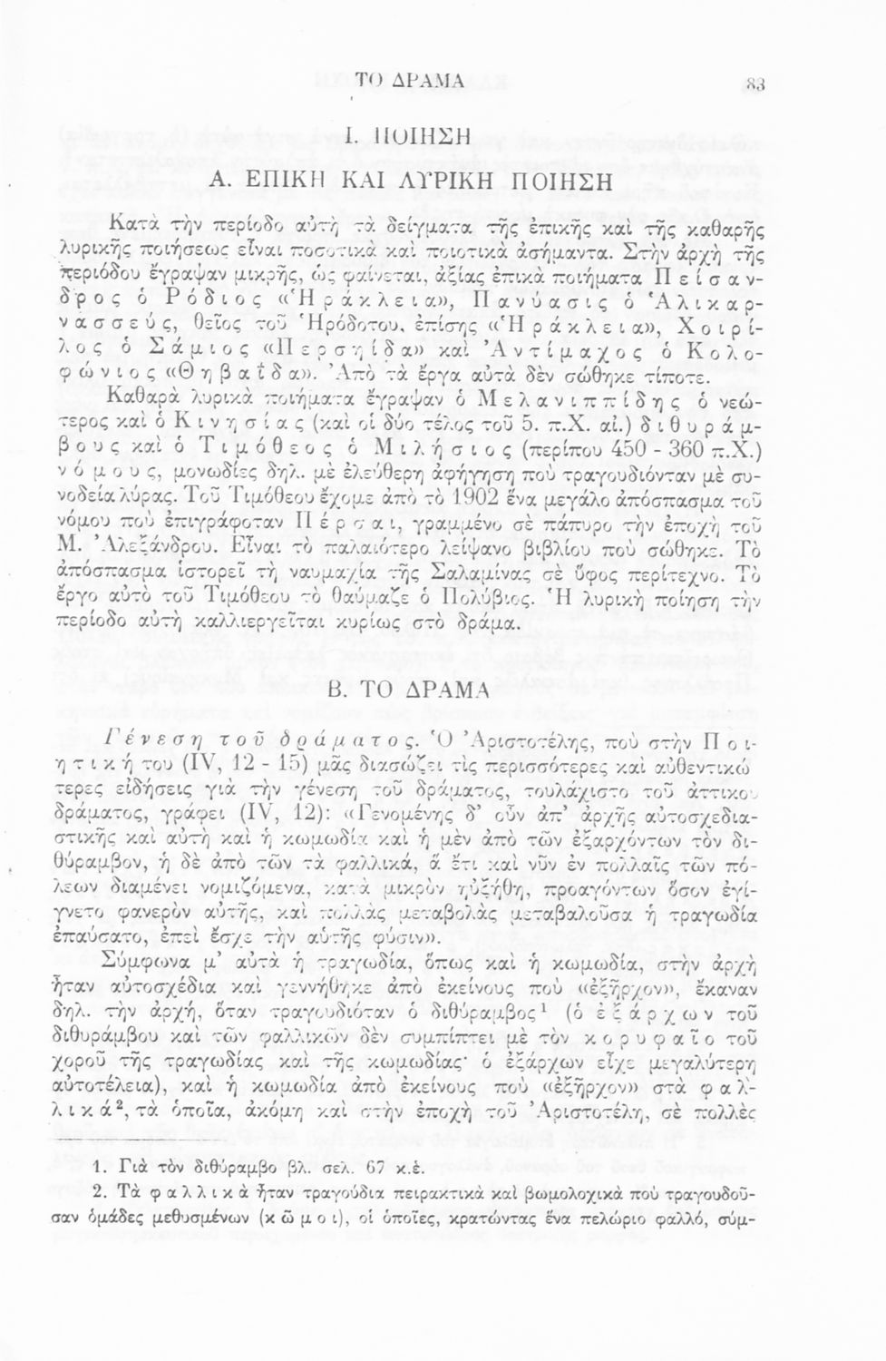 Γλώσσα: Δημοτική Παρουσίαση περιεχομένου: Επιστημονικό σύγγραμμα που εξετάζει την εξέλιξη της ποίησης και του πεζού λόγου κατά την Αρχαϊκή, Κλασσική, Αλεξανδρινή και Ρωμαϊκή και Βυζαντινή περίοδο. |