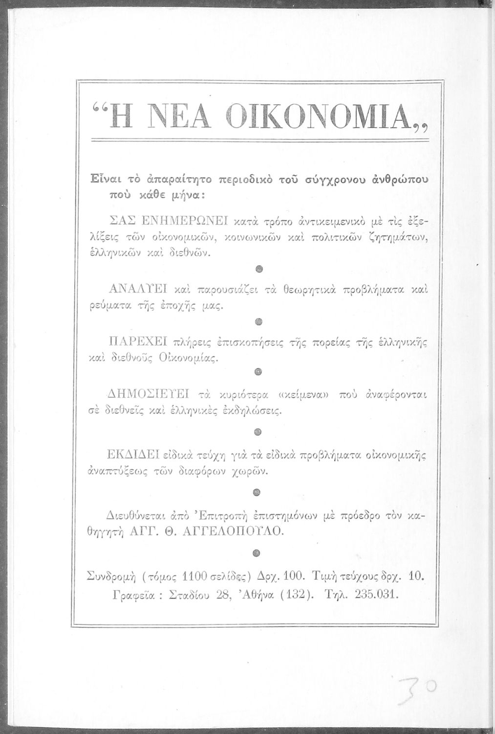 Εκδότης: Εκδόσεις του Περιοδικού Νέα Οικονομία Έτος έκδοσης: 1964 Τόπος έκδοσης: Αθήνα |