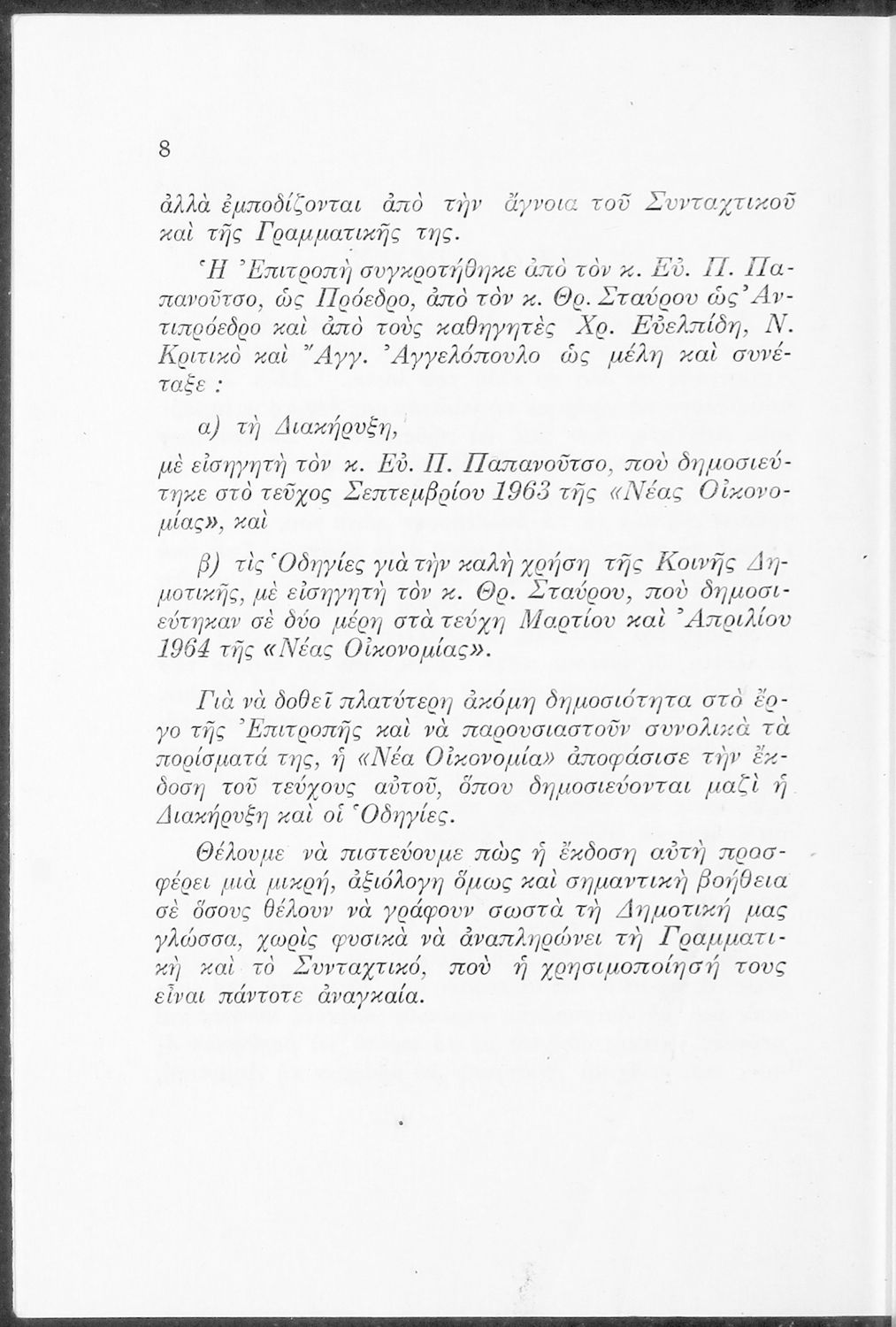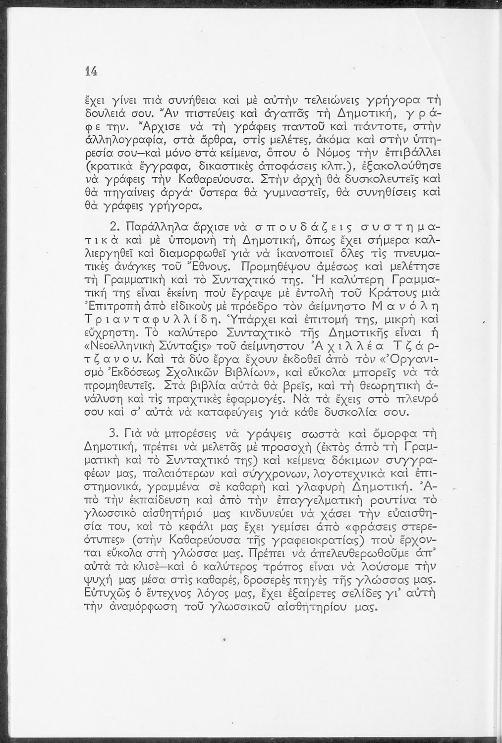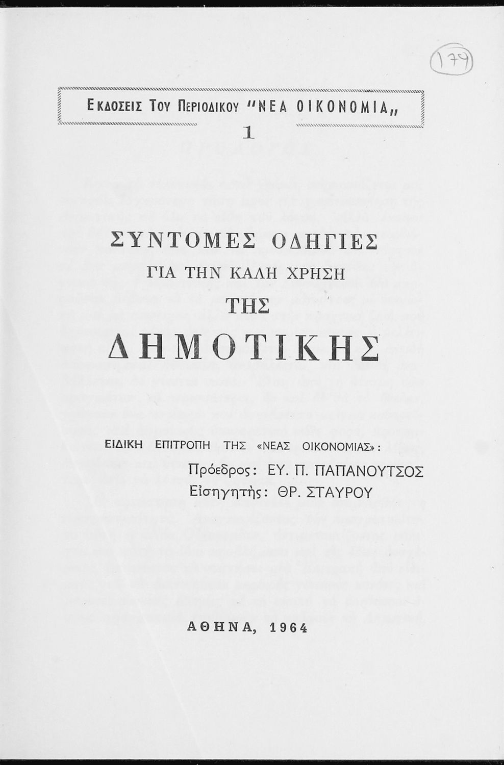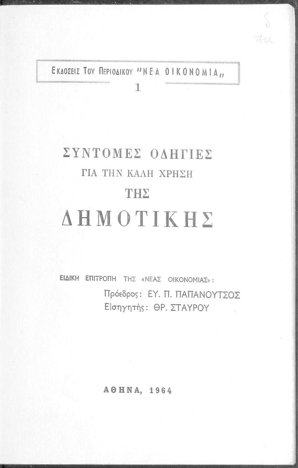 Γλώσσα: Δημοτική Παρουσίαση περιεχομένου: Έκδοση του περιοδικού Νέα Οικονομία που περιλαμβάνει οδηγίες για τη σωστή χρήση της δημοτικής. |