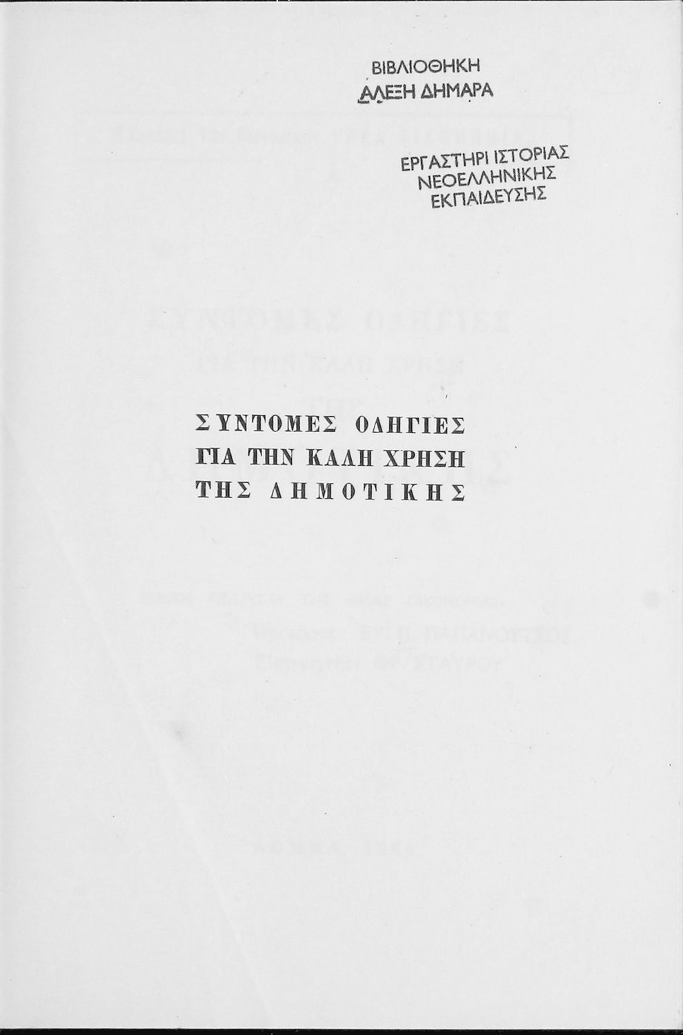 Εντοπισμός πρωτοτύπου: Εργαστήρι Ιστορίας Ν.Ε. Εκπαίδευσης, Πανεπιστήμιο Ιωαννίνων Κωδικός βιβλιοθήκης: 179 |