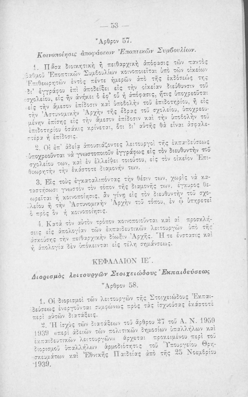 Παρουσίαση περιεχομένου: Έκδοση του Υπουργείου Θρησκευμάτων και Εθνικής Παιδείας με οδηγίες προς τις εκπαιδευτικές αρχές για τον τρόπο άσκησης διοίκησης στην Στοιχειώδη και Μέση Εκπαίδευση. Περιλαμβάνει τον Α.Ν. 2180/1940, ΦΕΚ 14 Α, 12-1-1940.