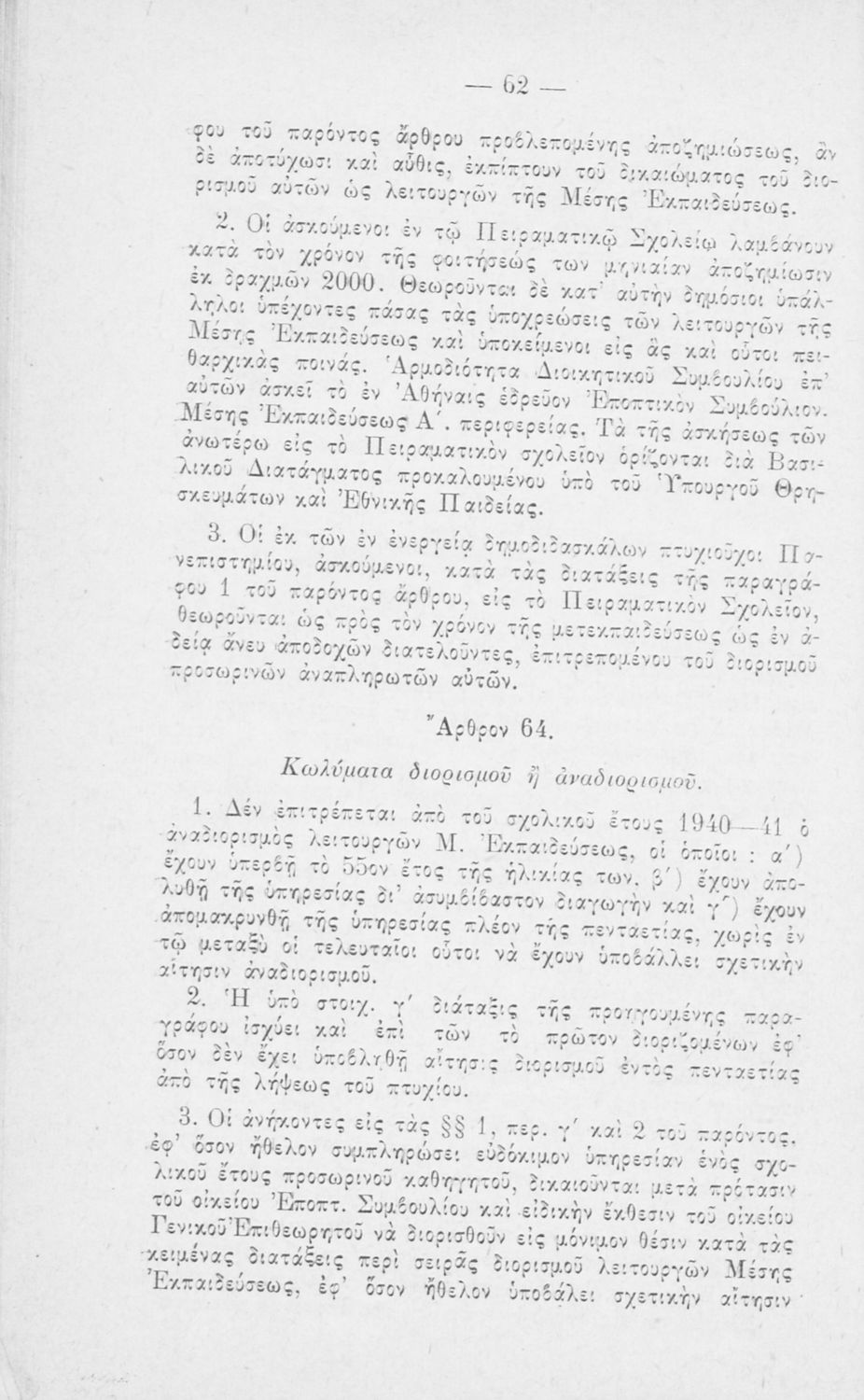 Έκδοση του Υπουργείου Εθνικής Παιδείας και Θρησκευμάτων που περιλαμβάνει το Ν.Δ. 4379/1964 (ΦΕΚ 182, 24-10-1964) "Περί οργανώσεως και διοικήσεως της Γενικής (Στοιχειώδους και Μέσης) Εκπαιδεύσεως".
