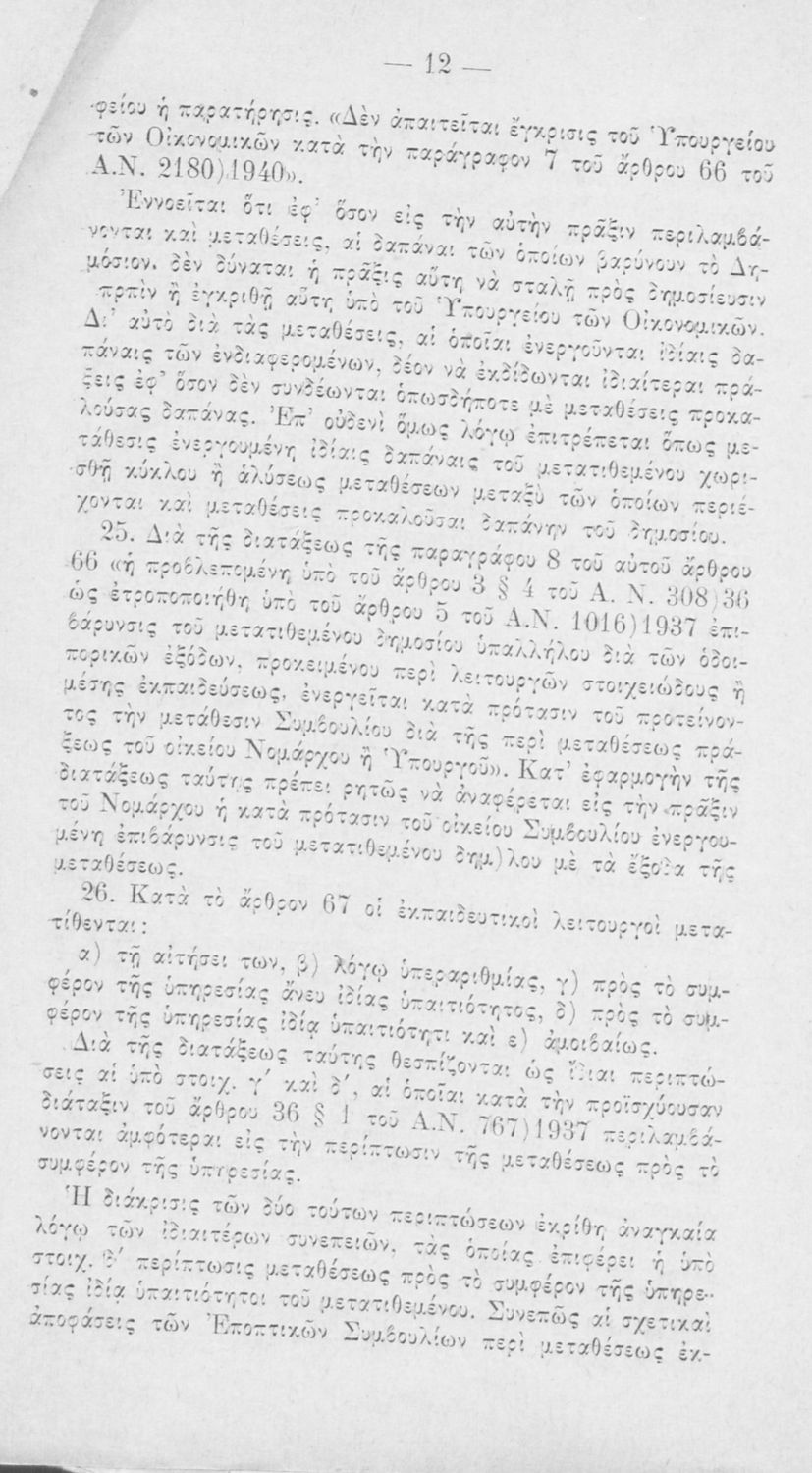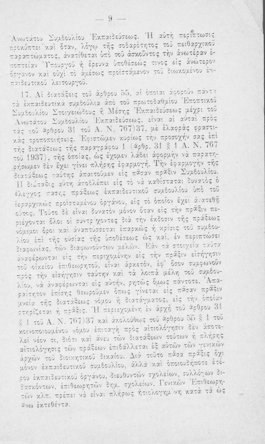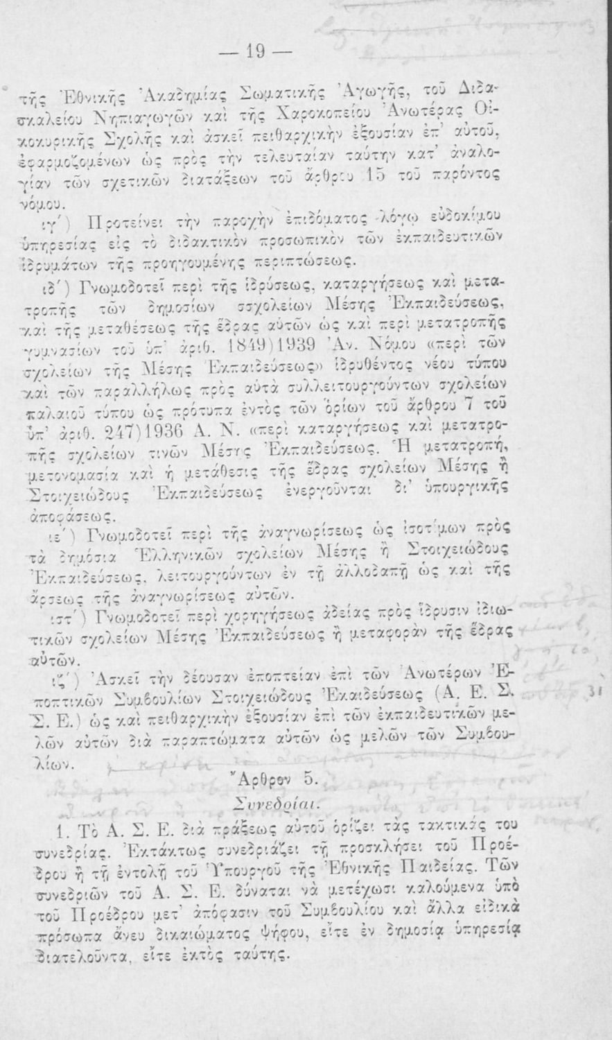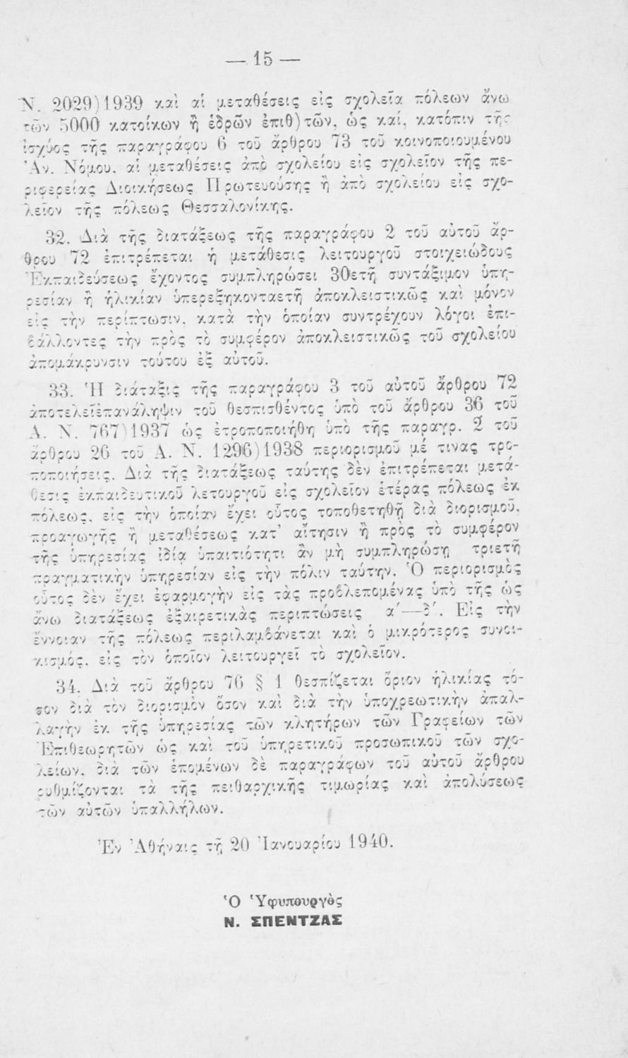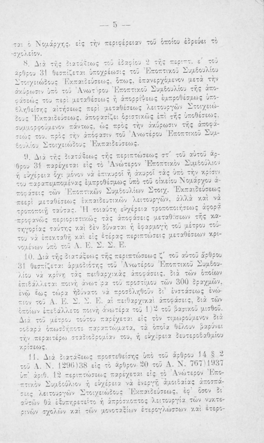Έκδοση του Υπουργείου Θρησκευμάτων και Εθνικής Παιδείας με οδηγίες προς τις εκπαιδευτικές αρχές για τον τρόπο άσκησης διοίκησης στην Στοιχειώδη και Μέση Εκπαίδευση. Περιλαμβάνει τον Α.Ν. 2180/1940, ΦΕΚ 14 Α, 12-1-1940.
