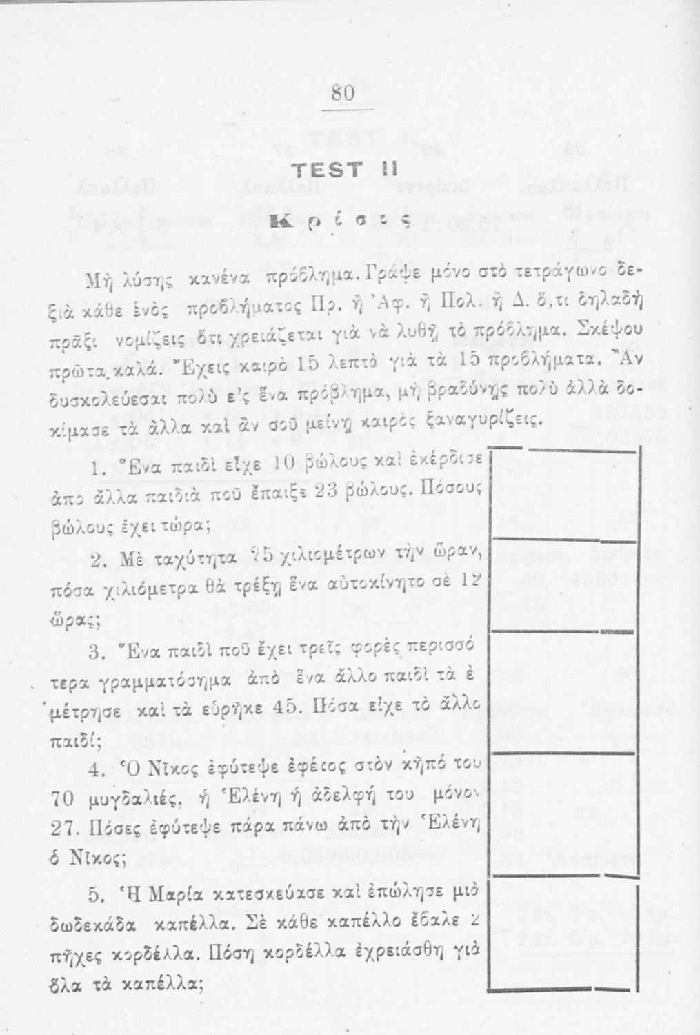 Έκδοση του Υπουργείου Εκκλησιαστικών και Δημοσίας Εκπαιδεύσεως με δοκιμασίες και μετρήσεις που αποσκοπεί στην αξιολόγηση των μαθητών Δημοτικού στην Αριθμητική.