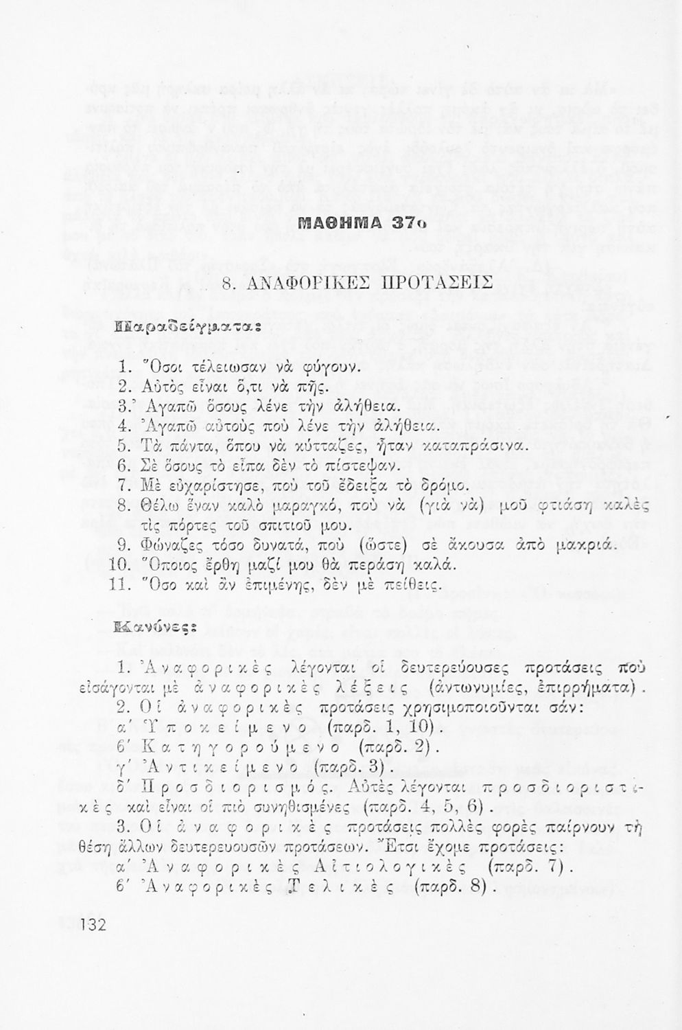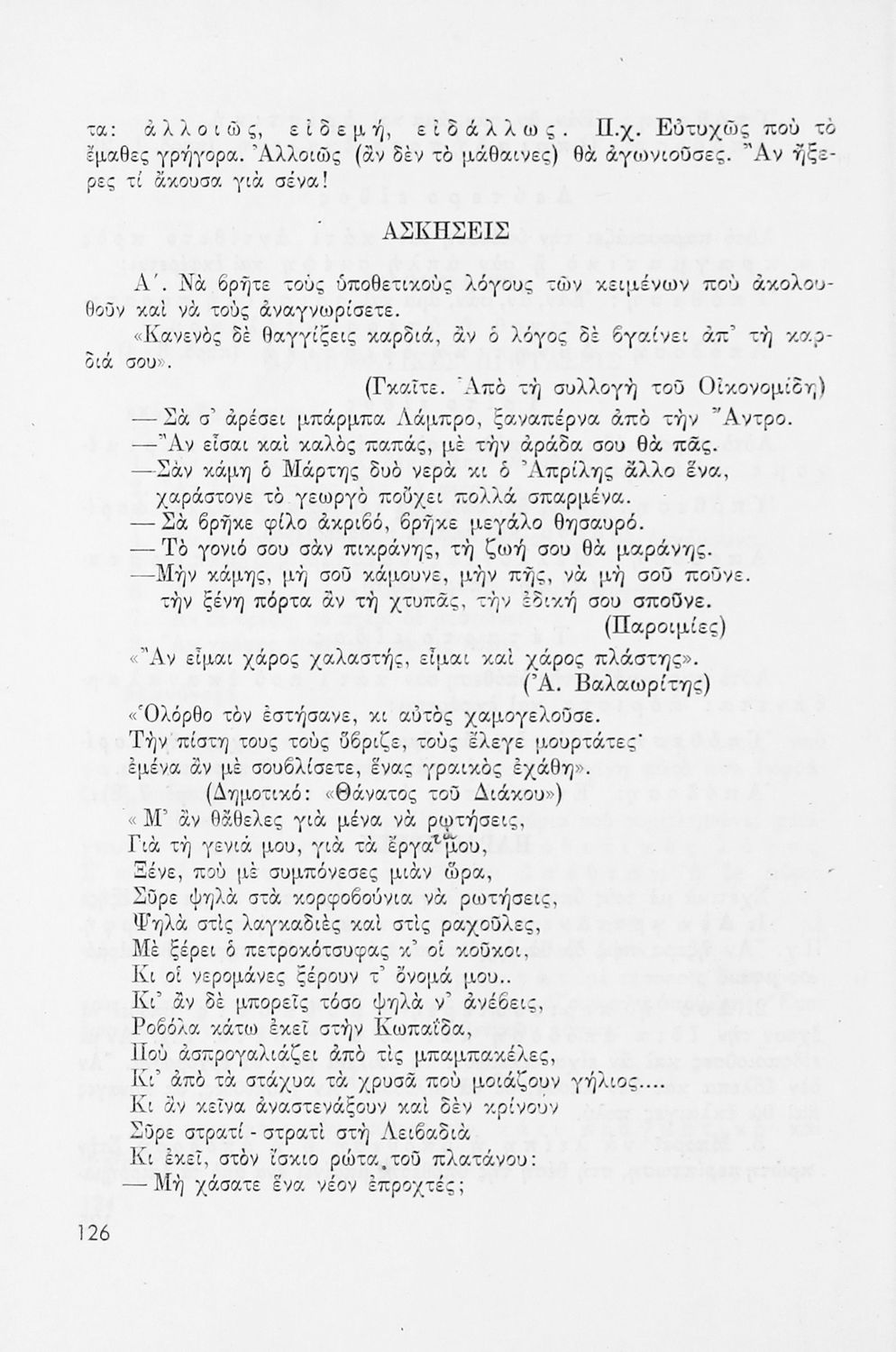 Μαθητικό βοήθημα Αρχαίων Ελληνικών Γυμνασίου που εξετάζει τα μέρη του λόγου και την σύνταξή τους.