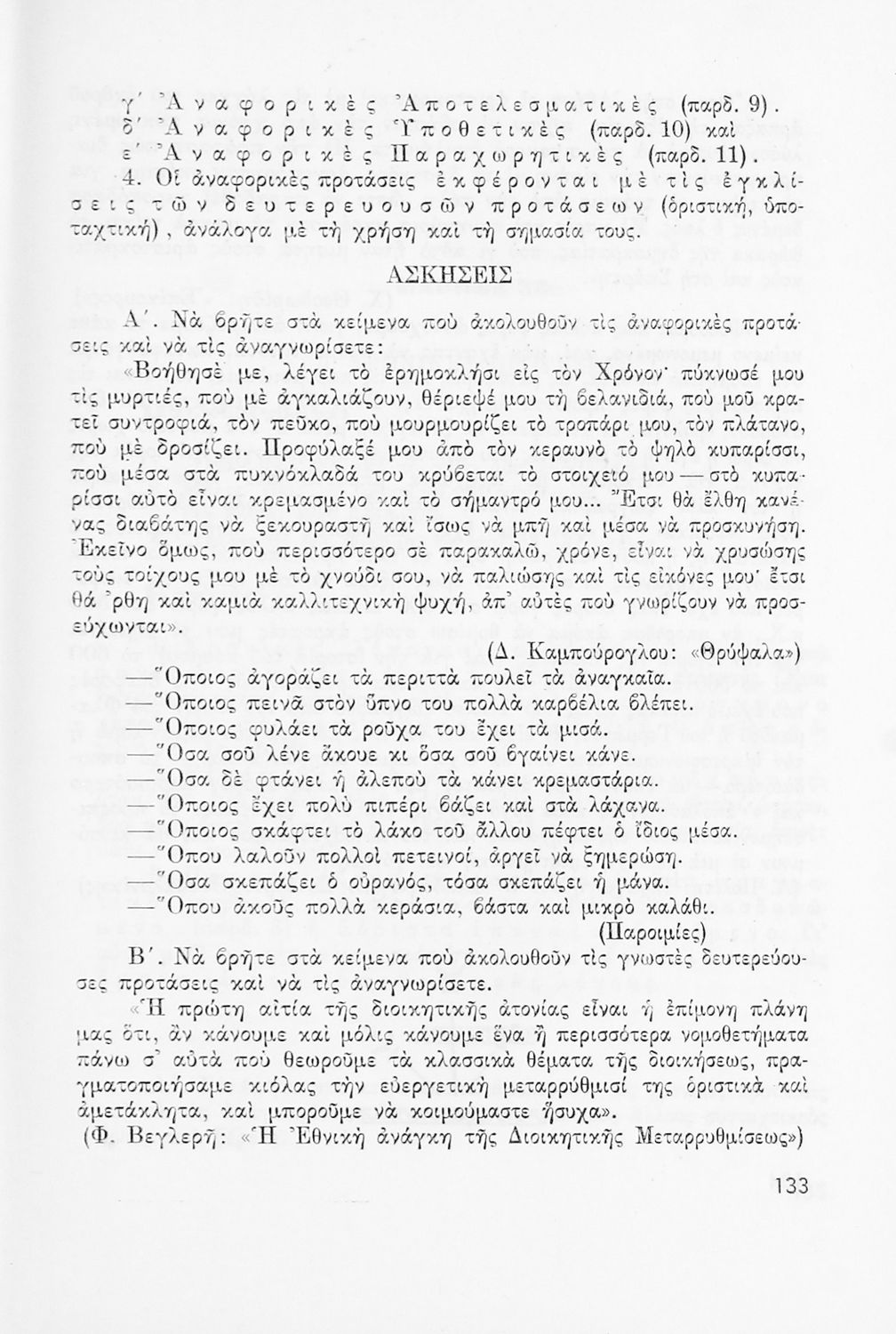 Σχολικό εγχειρίδιο συντακτικού που αναφέρεται στο σύνθετο λόγο και την συσχέτιση προτάσεων της Δημοτικής Γλώσσας.