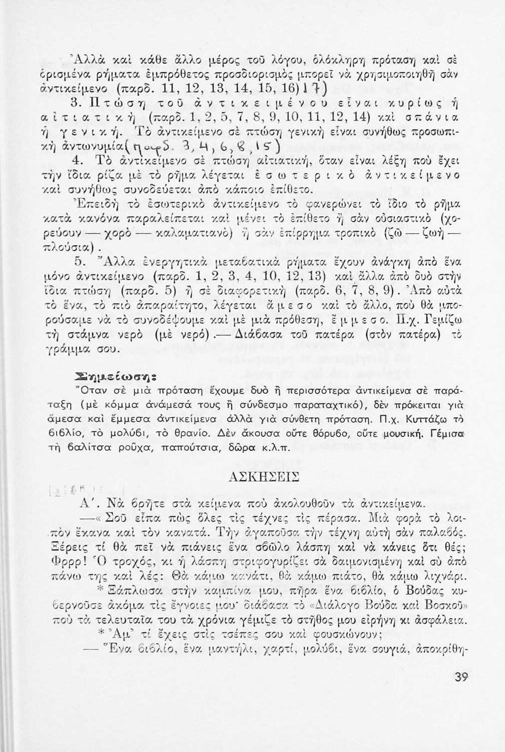 Μαθητικό βοήθημα Αρχαίων Ελληνικών Γυμνασίου που εξετάζει τα μέρη του λόγου και την σύνταξή τους.