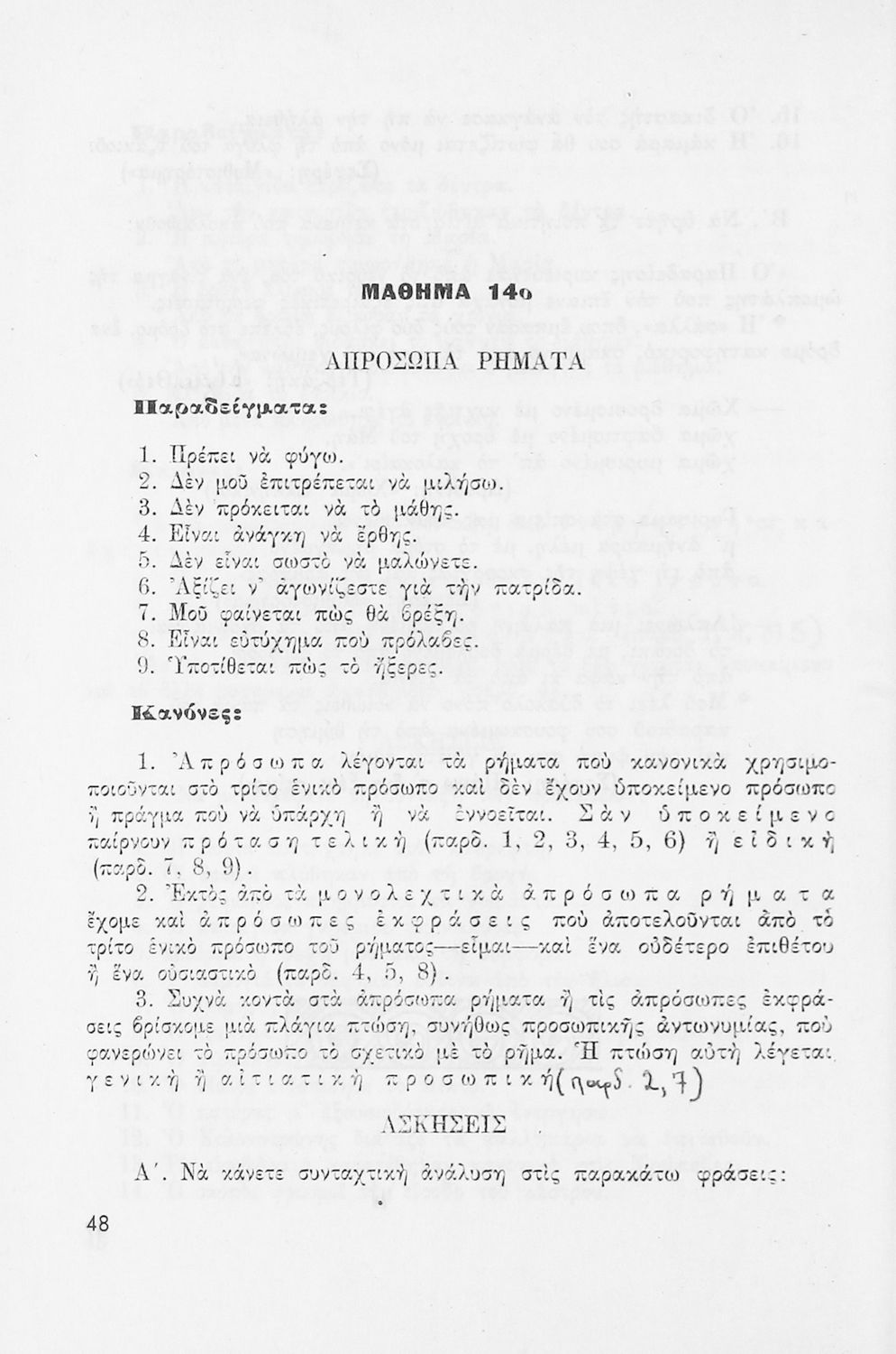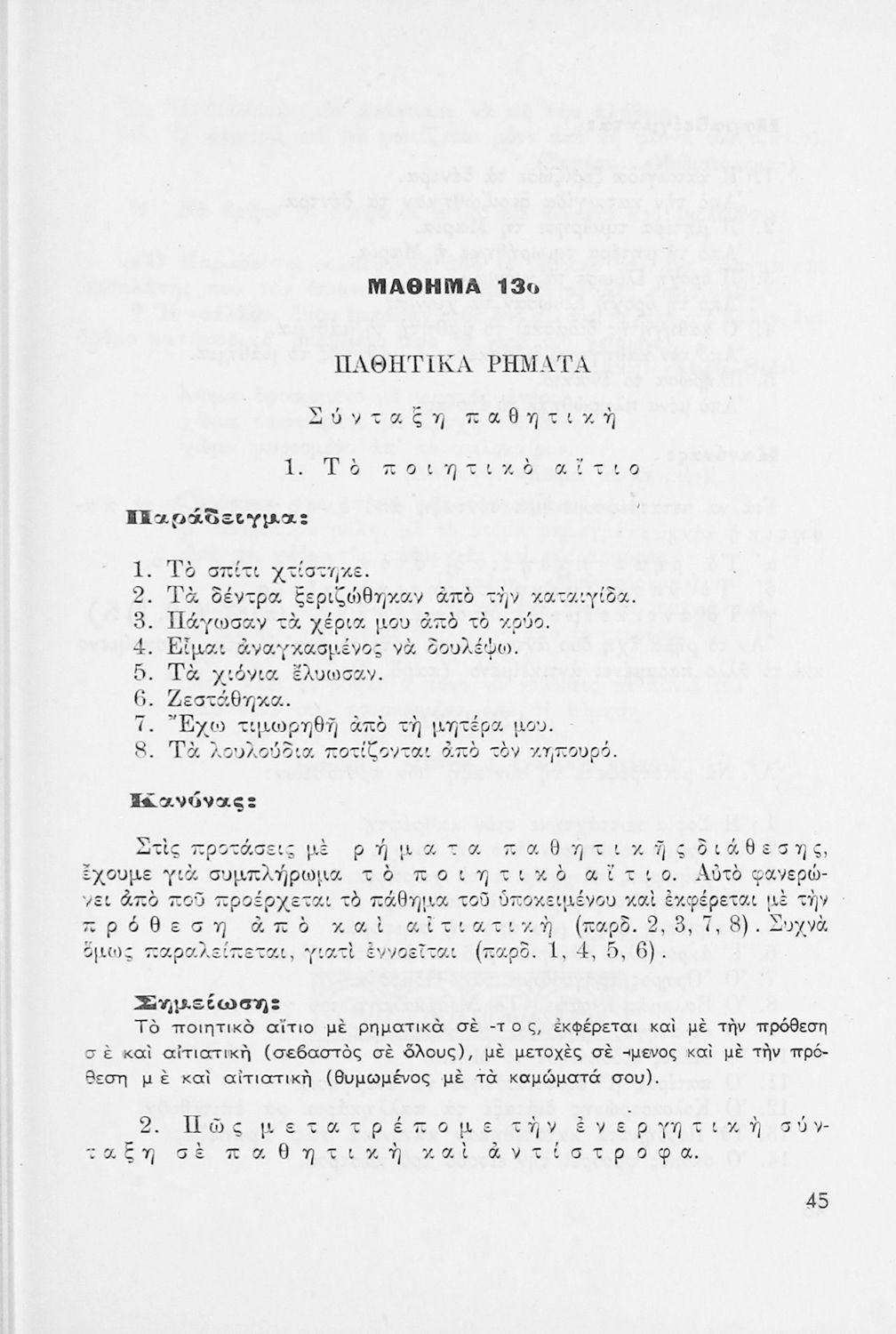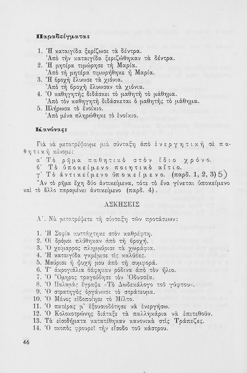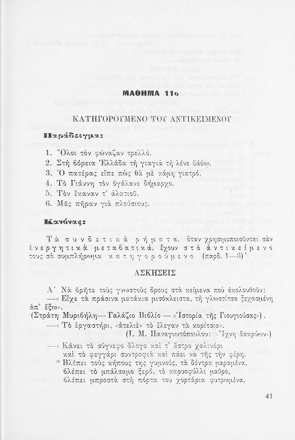 Σχολικό εγχειρίδιο Νέων Ελληνικών που παρουσιάζει το συντακτικό της κοινής δημοτικής μέσα από κανόνες και παραδείγματα.