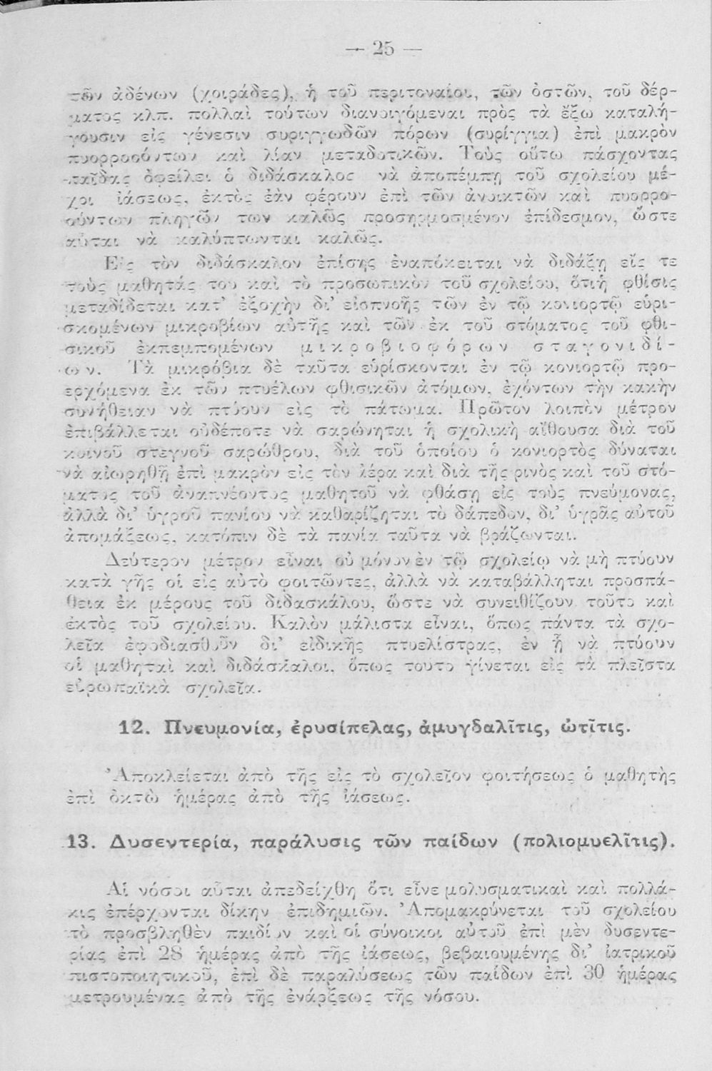 245 0# _aΟδηγίαι προς προφύλαξιν των εις τα Σχολεία φοιτώντων από των λοιμωδών νόσων. Μετά των σχετικών εγκυκλίων