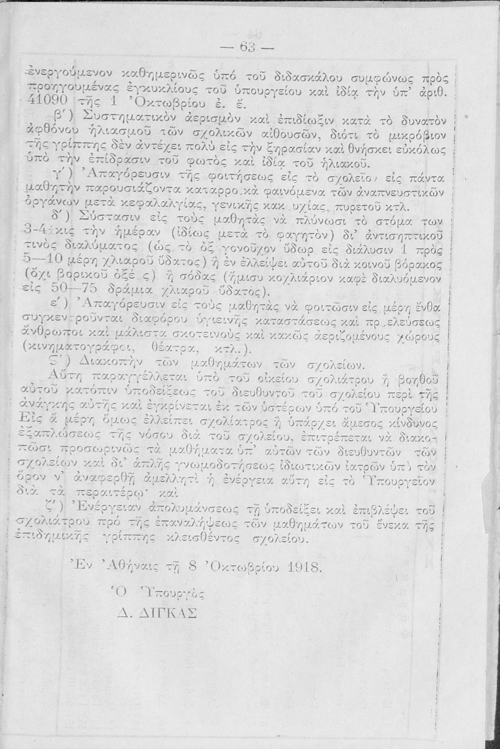 245 0# _aΟδηγίαι προς προφύλαξιν των εις τα Σχολεία φοιτώντων από των λοιμωδών νόσων. Μετά των σχετικών εγκυκλίων