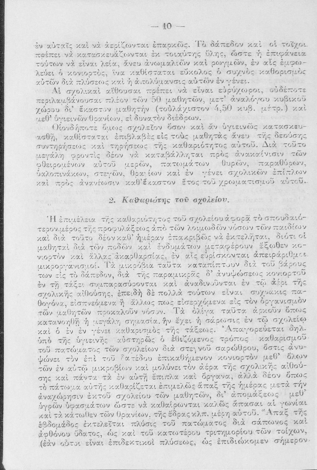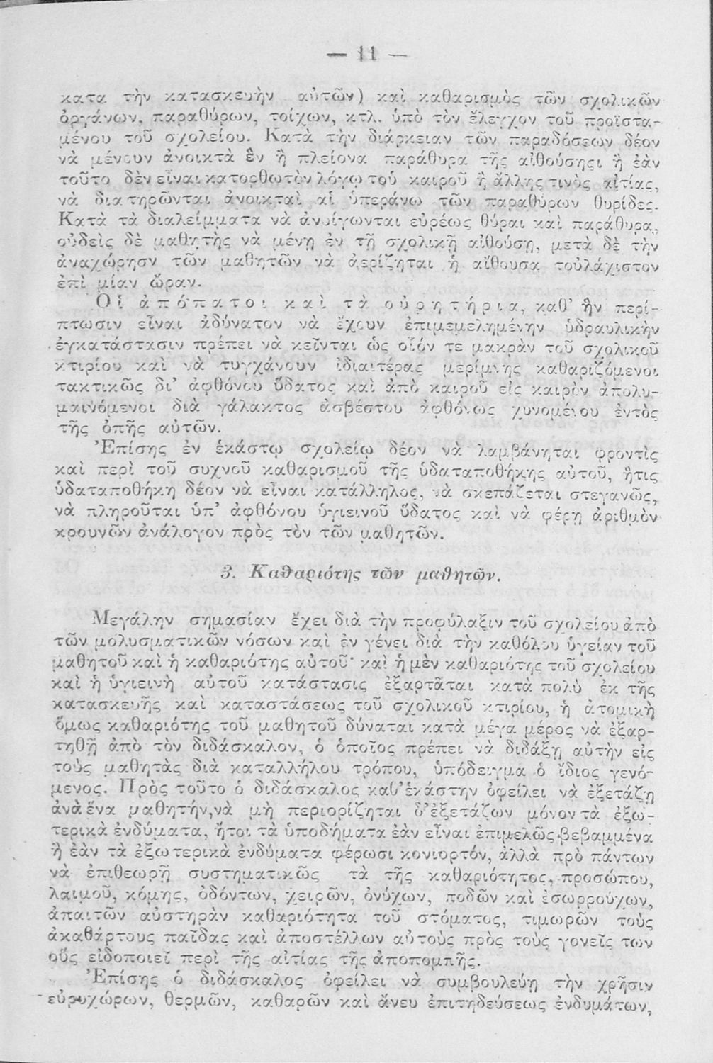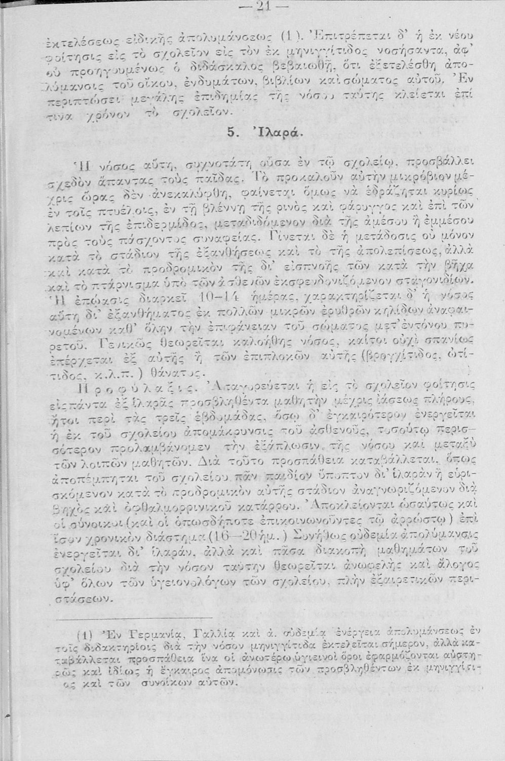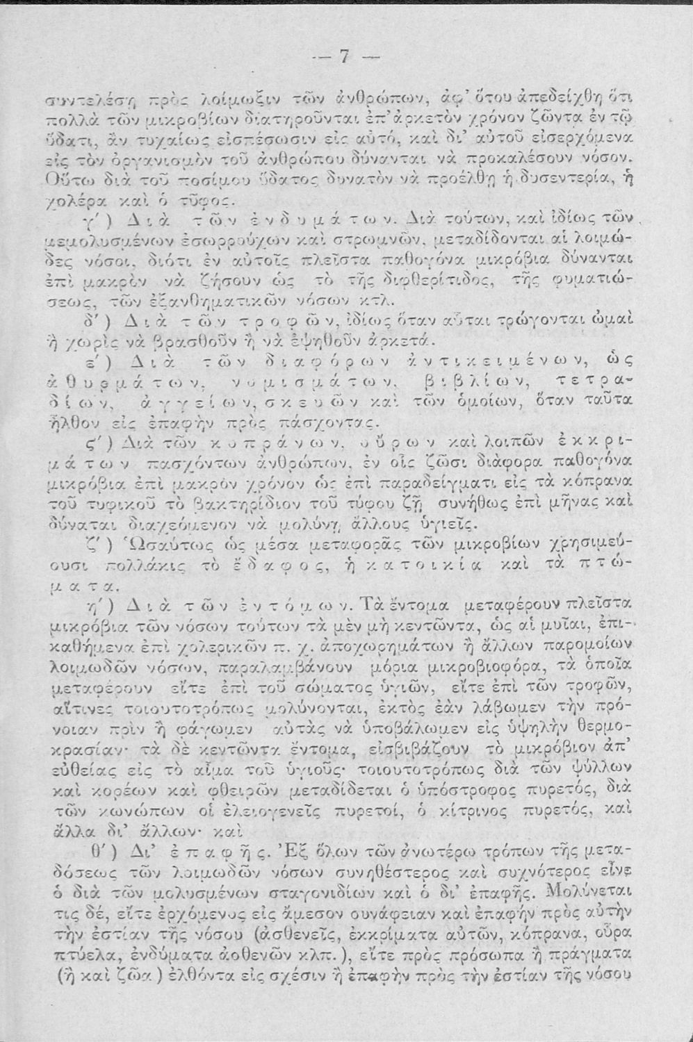 Έκδοση του Υπουργείου Εκκλησιαστικών και Δημοσίας Εκπαιδεύσεως που αποσκοπεί στην παροχή οδηγιών προφύλαξης από τη μετάδοση των λοιμωδών ασθενειών στα σχολεία. Περιλαμβάνει και τις σχετικές εγκυκλίους. Ο συγγραφέας ήταν τμηματάρχης Σχολικής Υγιεινής.