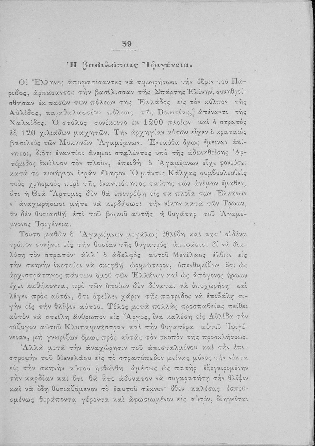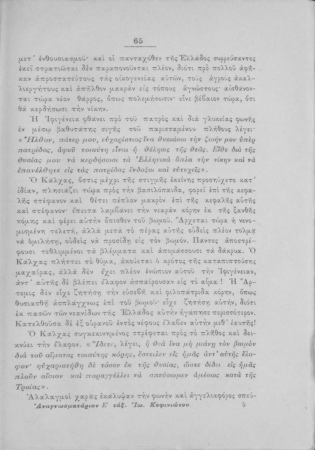 Παιδαγωγικό βοήθημα Αρχαίων Ελληνικών Ε΄ Γυμνασίου που περιλαμβάνει ερμηνευτικές, γλωσσικές και πραγματολογικές παρατηρήσεις στην τραγωδία του Ευριπίδη Ιφιγένειας εν Αυλίδι