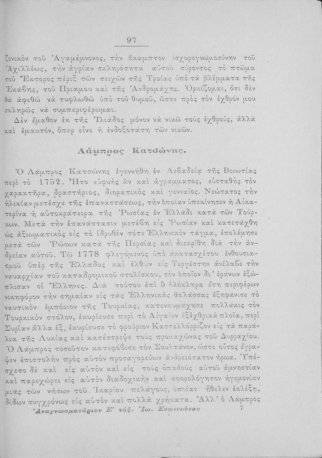 Τίτλος: Ελληνικόν αναγνωσματάριον προς χρήσιν της Ε΄ τάξεως των Δημοτικών Σχολείων εγκριθέν διά την πενταετίαν 1905-1910