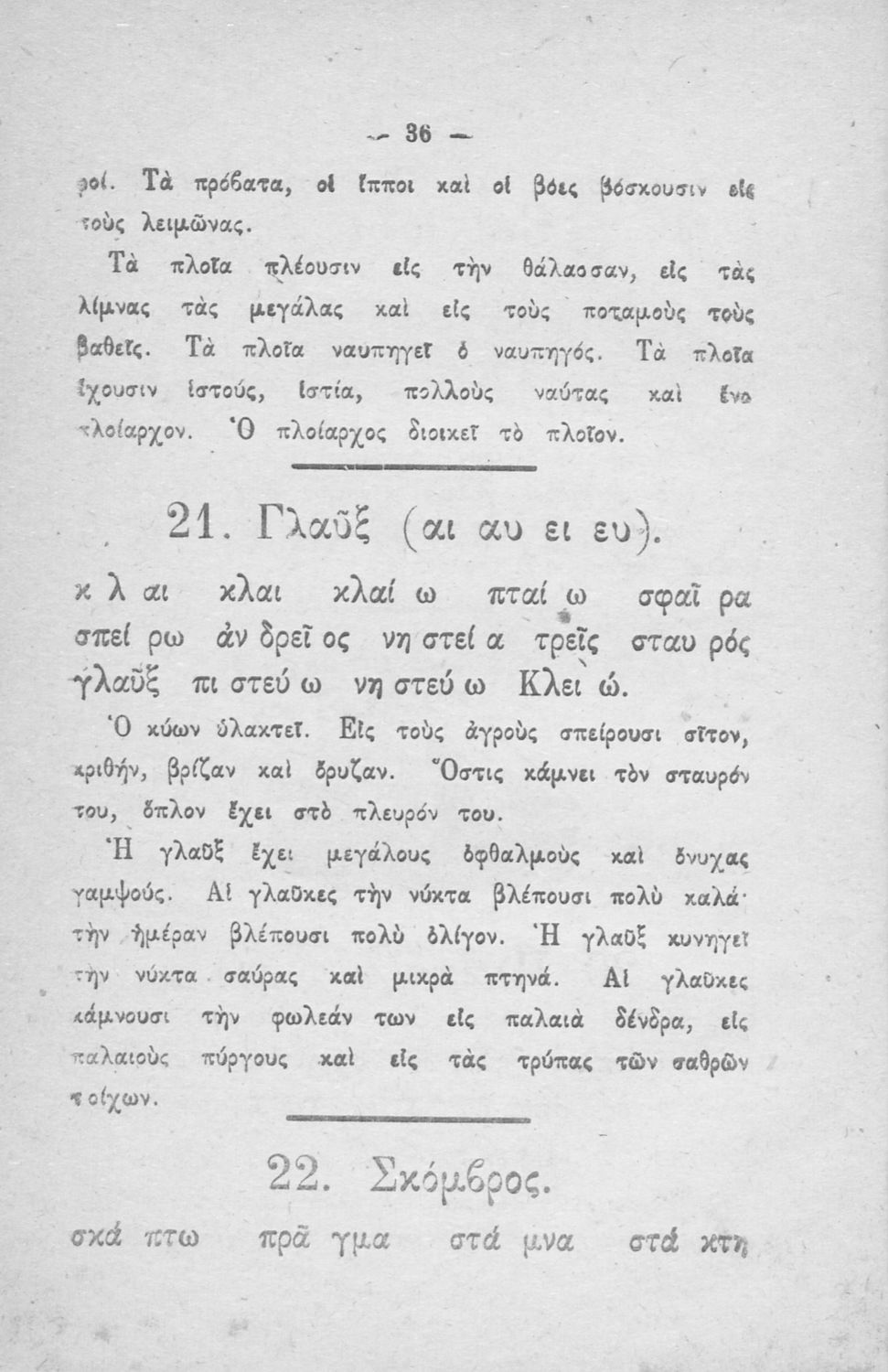 Αναγνωστικό για τους μαθητές [της Α΄ ] Δημοτικού που περιέχει λέξεις και μικρές προτάσεις για την εκμάθηση του συλλαβισμού και της ανάγνωσης.