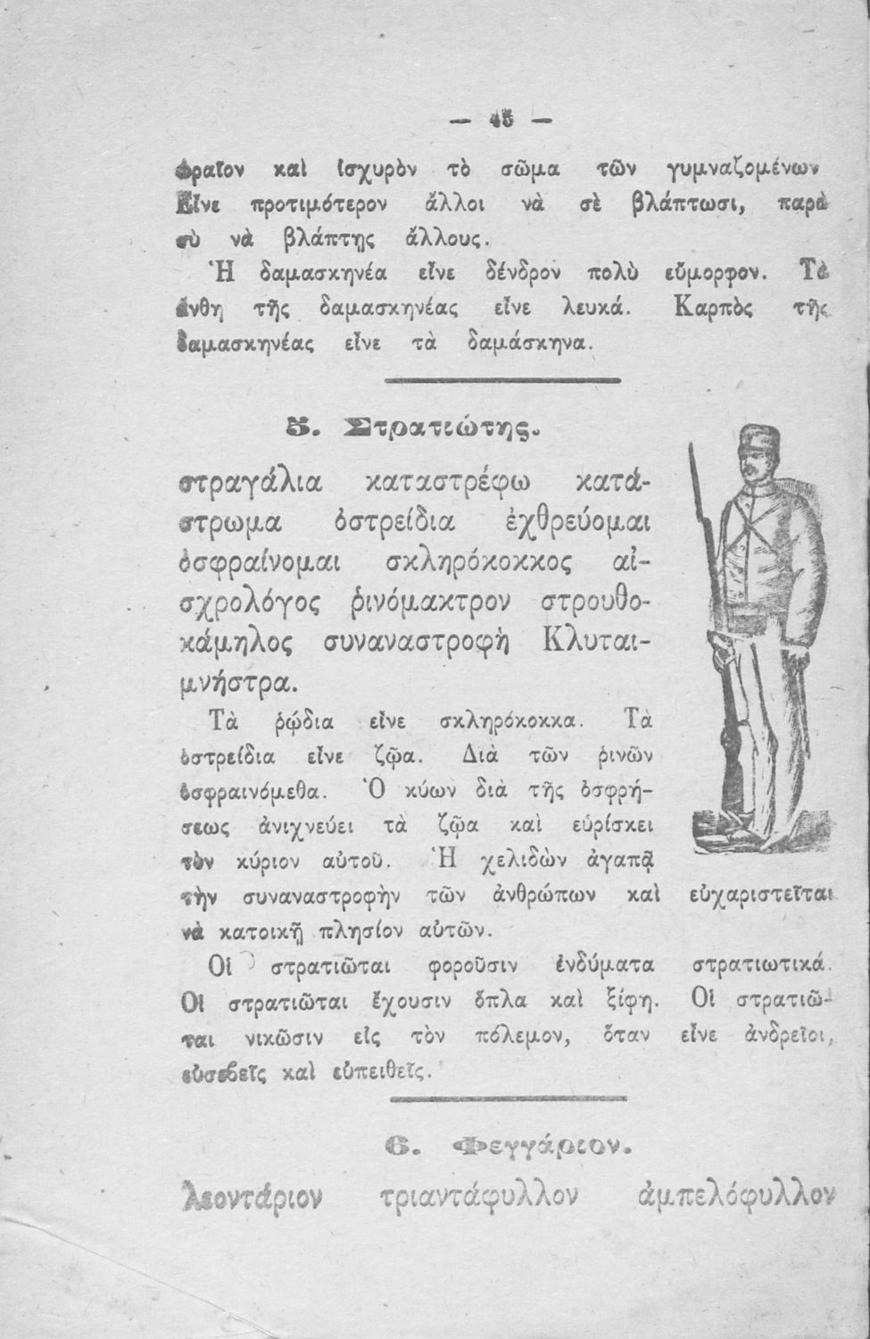 Σχολικό Εγχειρίδιο Φυσικής Ιστορίας για τις Α' και Β' Ελληνικών Σχολείων και Παρθεναγωγείων που περιλαμβάνει στοιχεία ζωολογίας και της φυτολογίας και διακρίνει τα ζώα και τα φυτά ανάλογα με την συνομοταξία ...