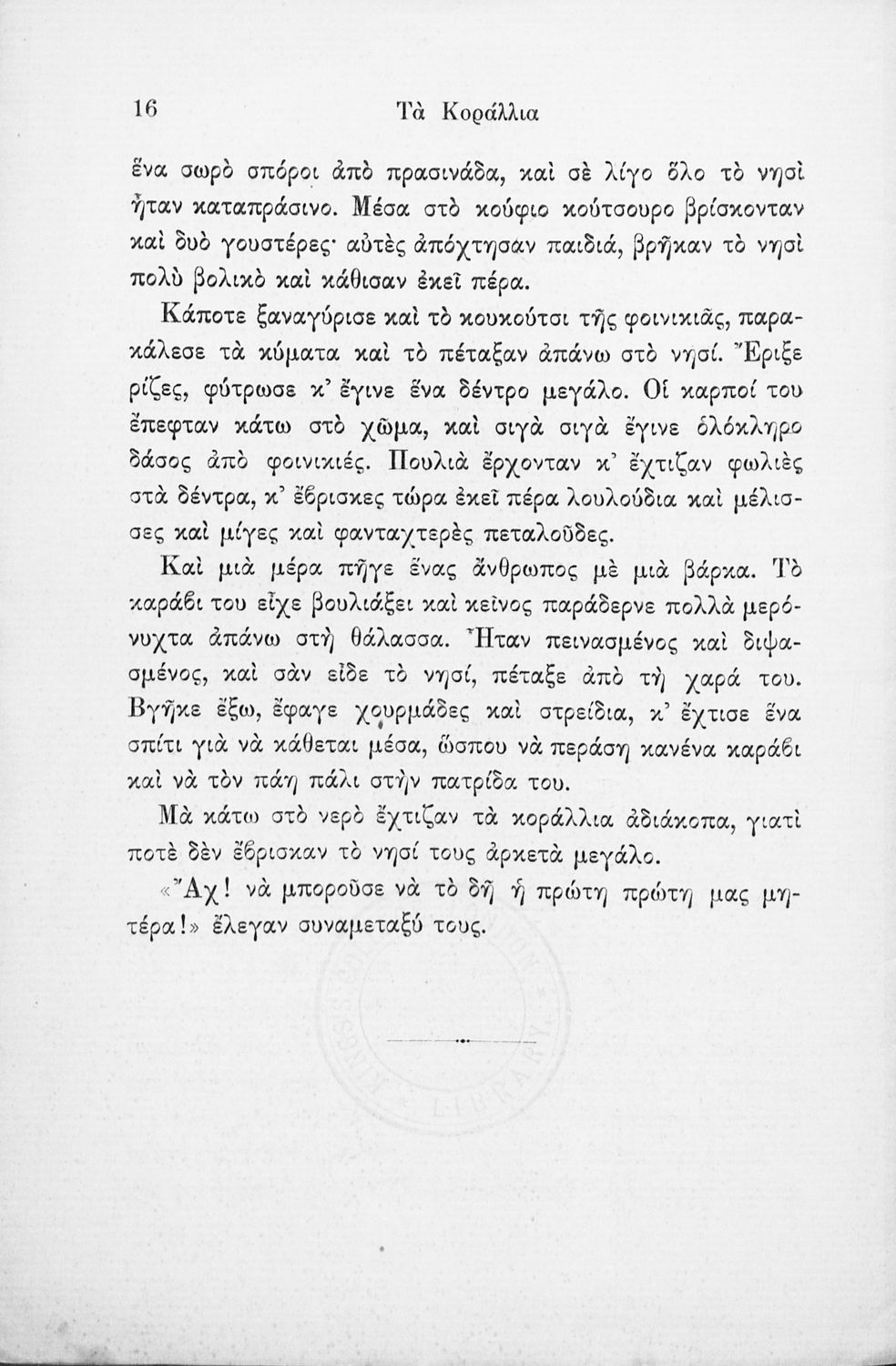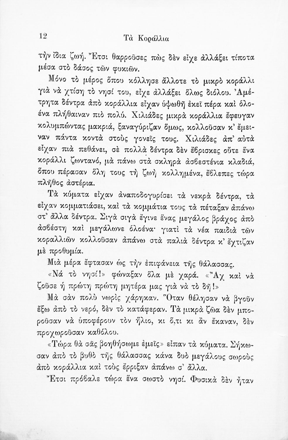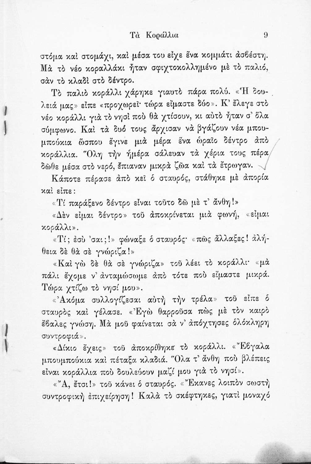 LDR 00971 2200181 4500 035 ## _a05-00188 040 ## _aΕργαστήρι Ιστορίας Ν.Ε. Εκπαίδευσης, Πανεπιστήμιο Ιωαννίνων 041 ## _ael 100 ## _aCarl Ewald _aΑ. Δελμούζος (μετάφραση) 110 ## _a188 245 0# _aΤα κοράλλια. Βιβλία για τα Ελληνόπουλα 260 ## _aΑθήνα _bΤυπογραφείο «Εστία» _c1913 300 ## _a19 520 ## _aΕξωσχολικό ανάγνωσμα για παιδιά 8 ετών και άνω, με χαρακτήρα εκπαιδευτικό και σε μετάφραση Α. Δελμούζου που στόχο είχε να μεταδώσει την αξία του διαβάσματος. 522 ## _aΕλλάδα 546 ## _aΔημοτική 563 ## _aΜαλακό Εξώφυλλο 650 #4 _aΕθνική ζωή _aΕλληνόπουλα _aΛογοτεχνική αξία