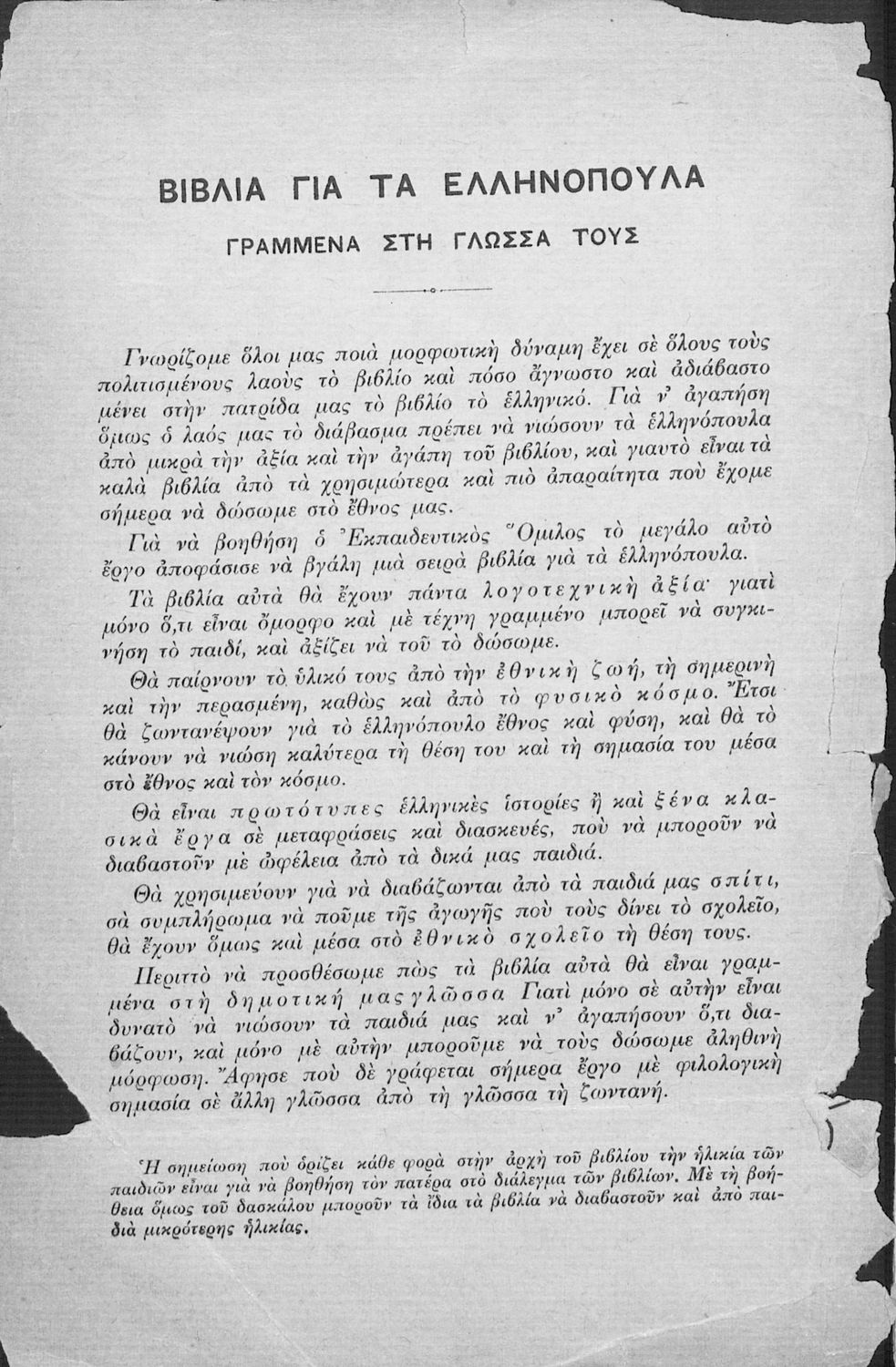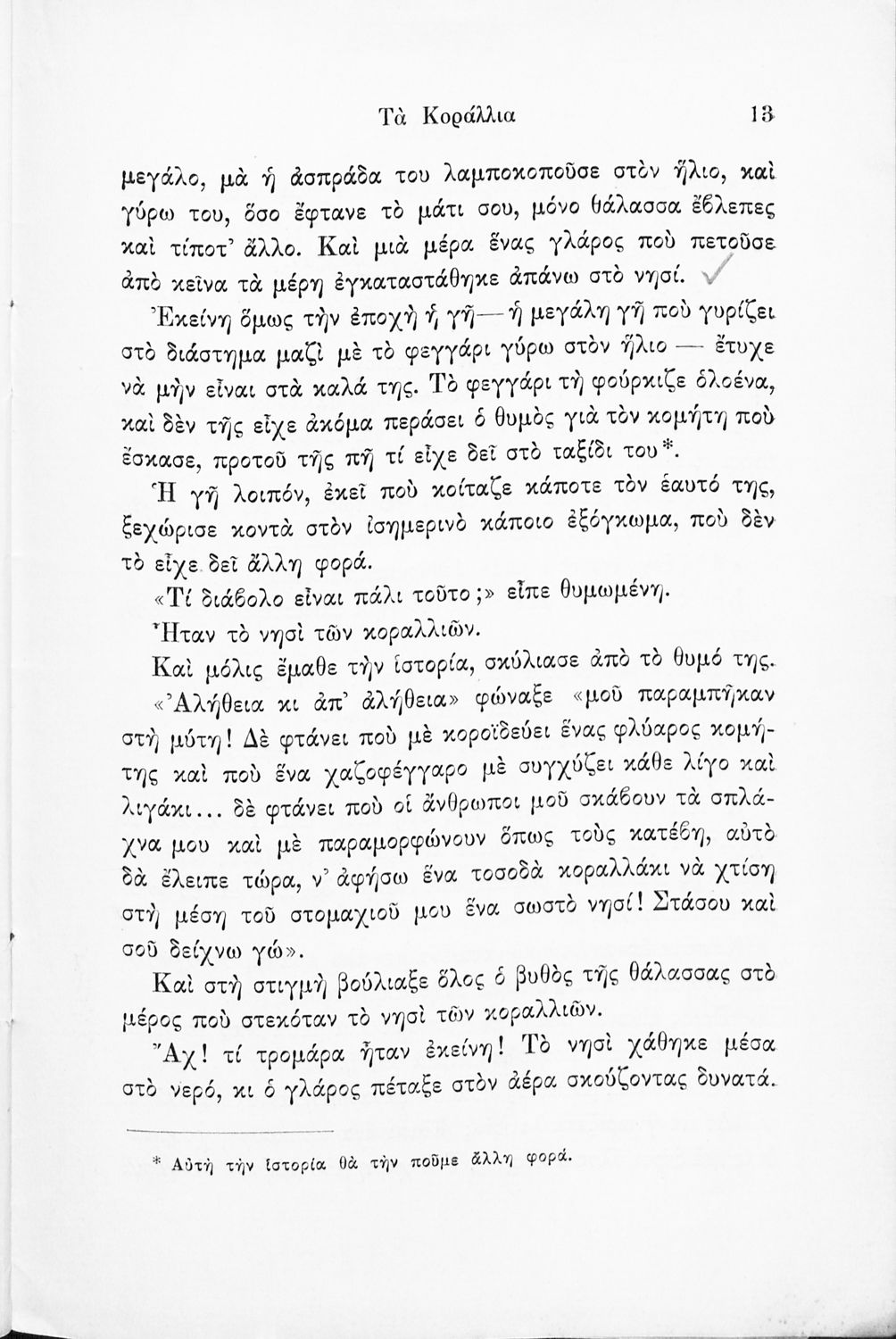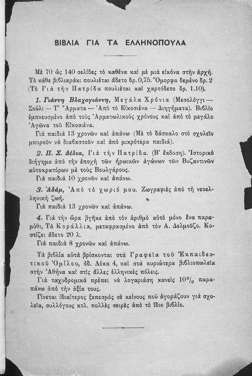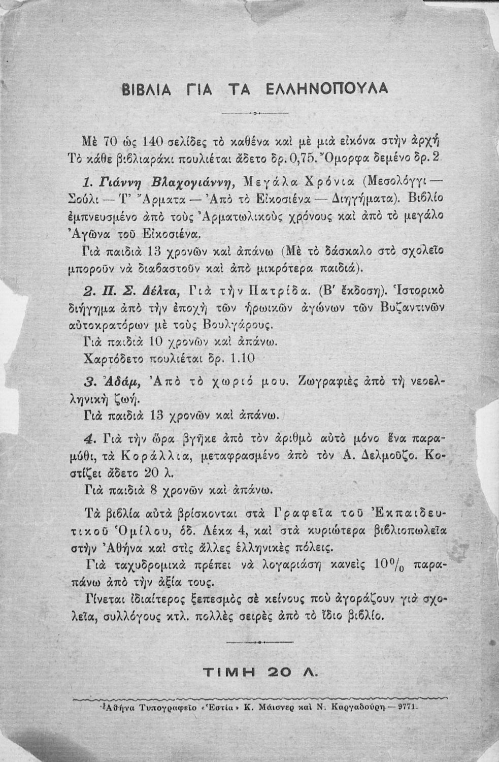 Γλώσσα: Δημοτική Παρουσίαση περιεχομένου: Εξωσχολικό ανάγνωσμα για παιδιά 8 ετών και άνω, με χαρακτήρα εκπαιδευτικό και σε μετάφραση Α. Δελμούζου που στόχο είχε να μεταδώσει την αξία του διαβάσματος. |