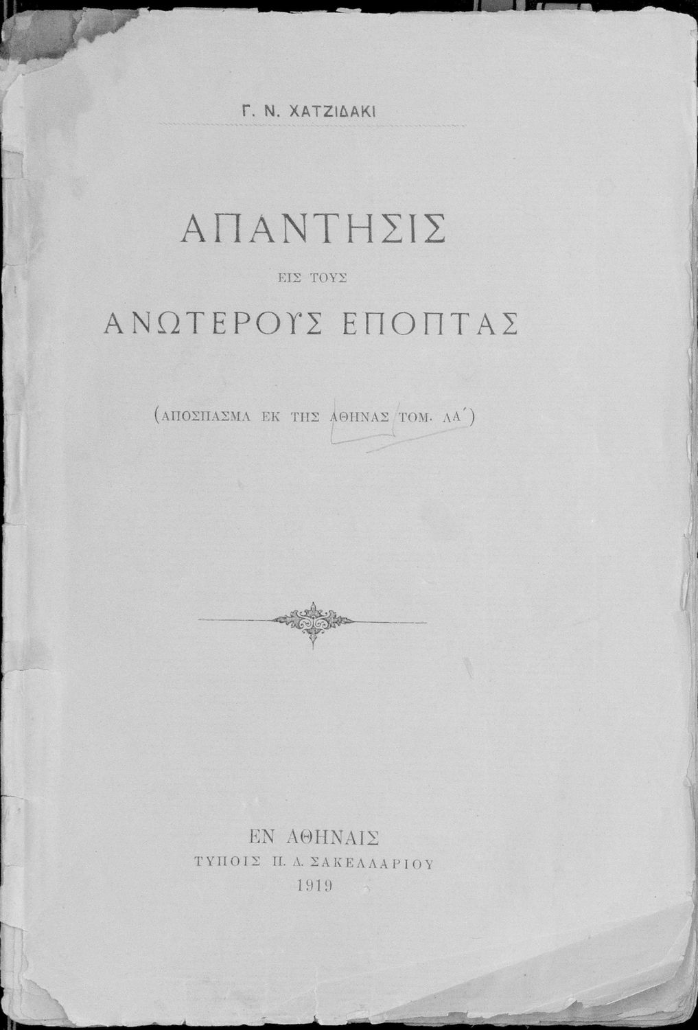 Τίτλος: Απάντησις εις τους ανωτέρους επόπτας