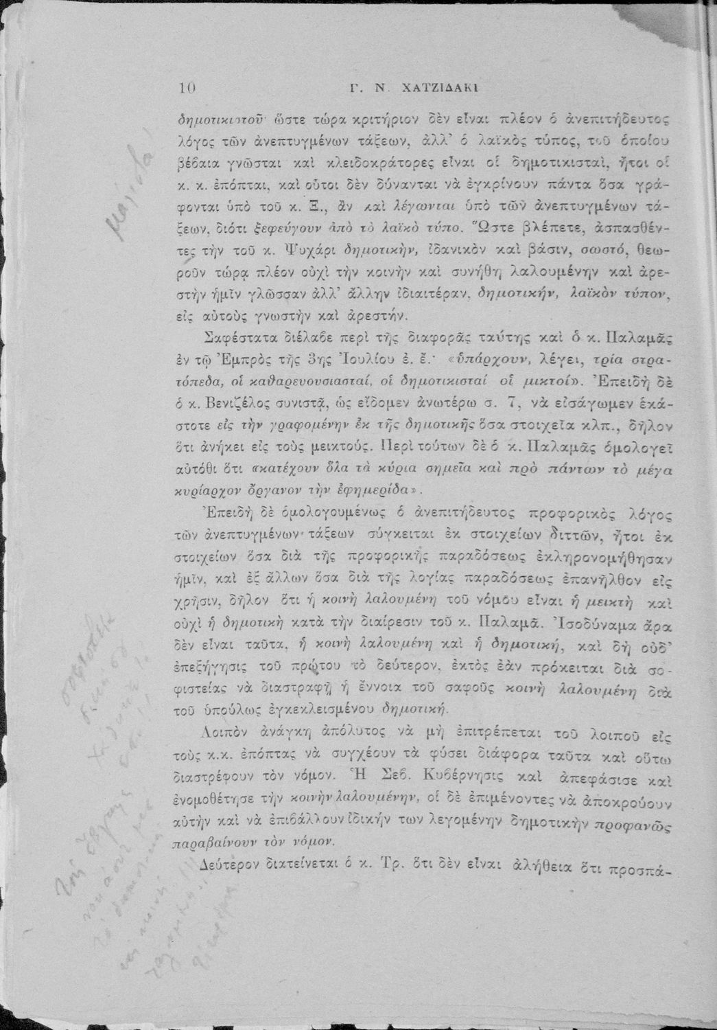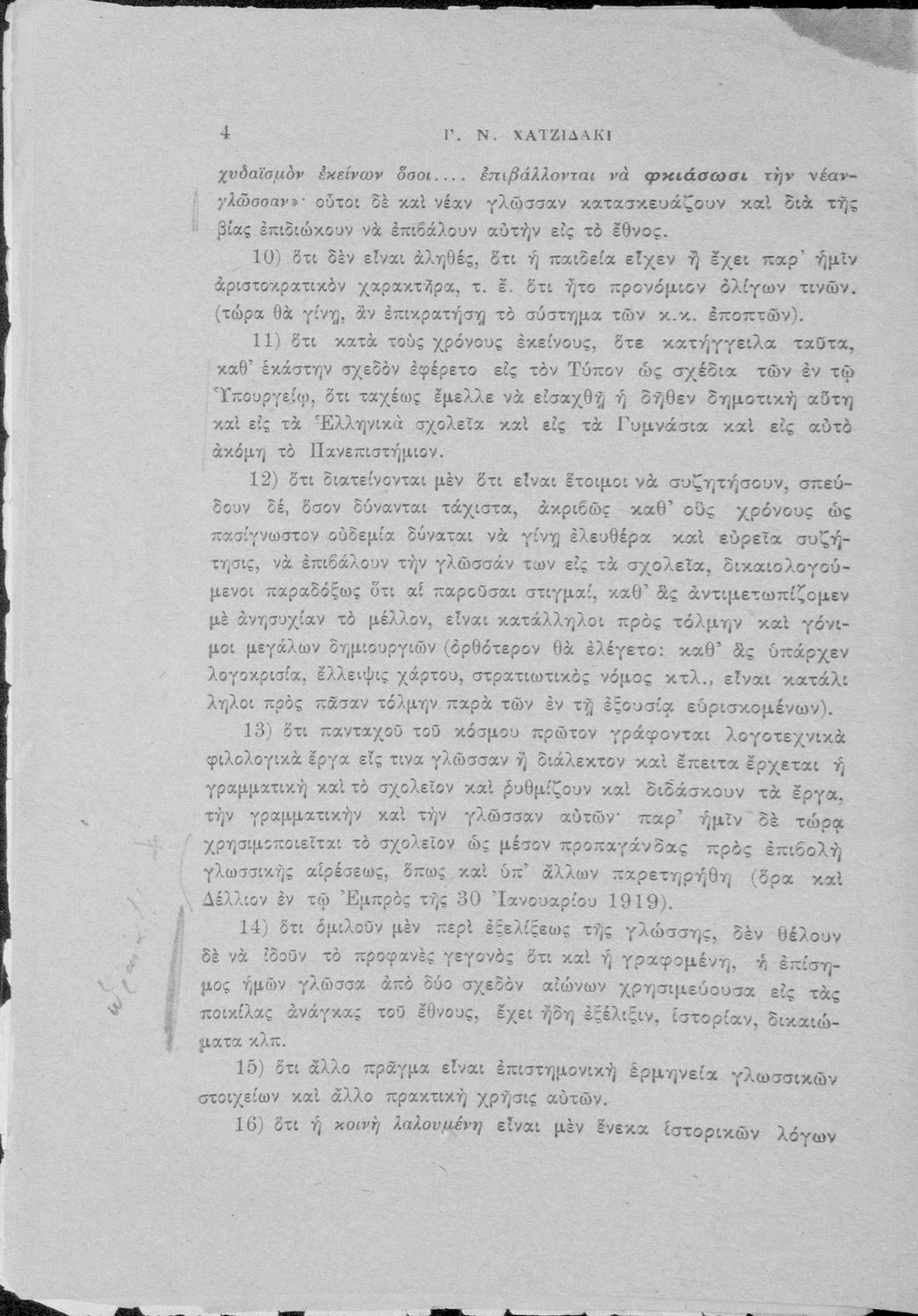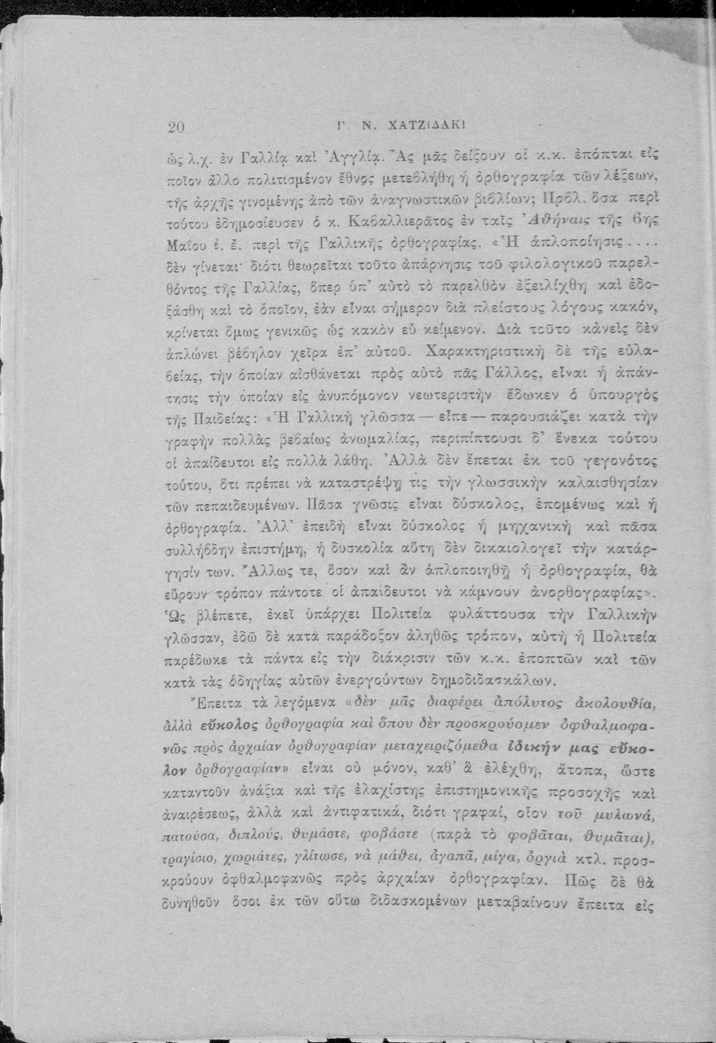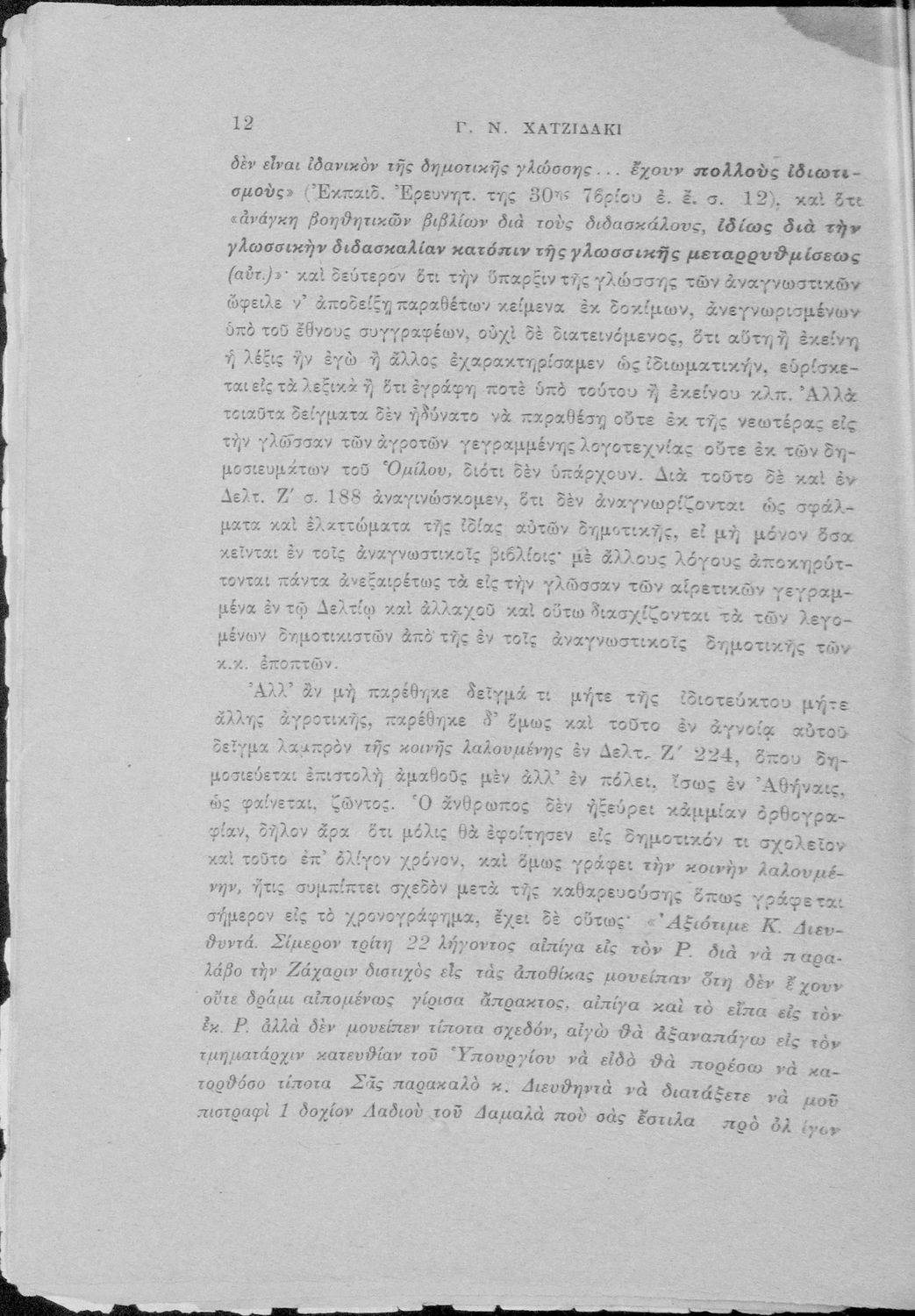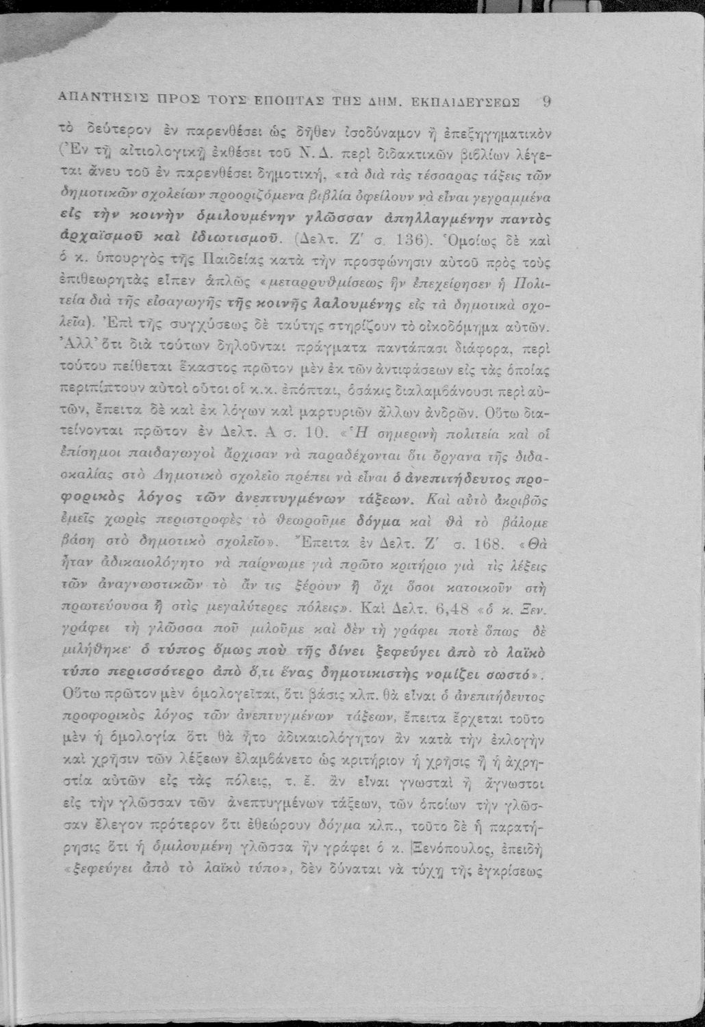 Απάντηση του Γ. Ν. Χατζιδάκι στους ανώτερους επόπτες της δημοτικής εκπαίδευσης (Μ. Τριανταφυλλίδη και Α. Δελμούζο) που δημοσιεύτηκε κατά την περίοδο της πρώτης βενιζελικής εκπαιδευτικής και γλωσσικής μεταρρύθμισης και αφορούσε τη σύγκρουση δημοτικιστών και καθαρευουσιάνων.