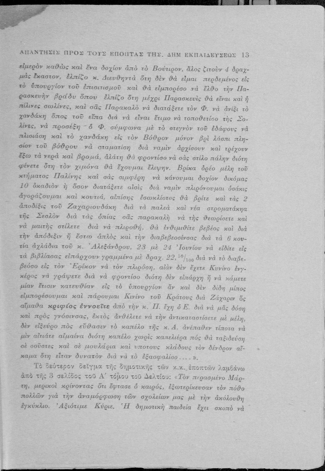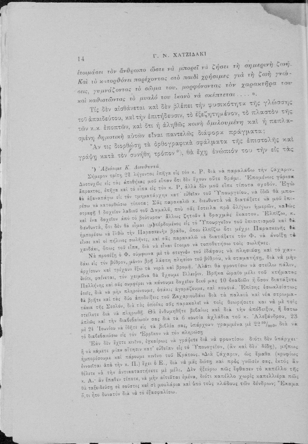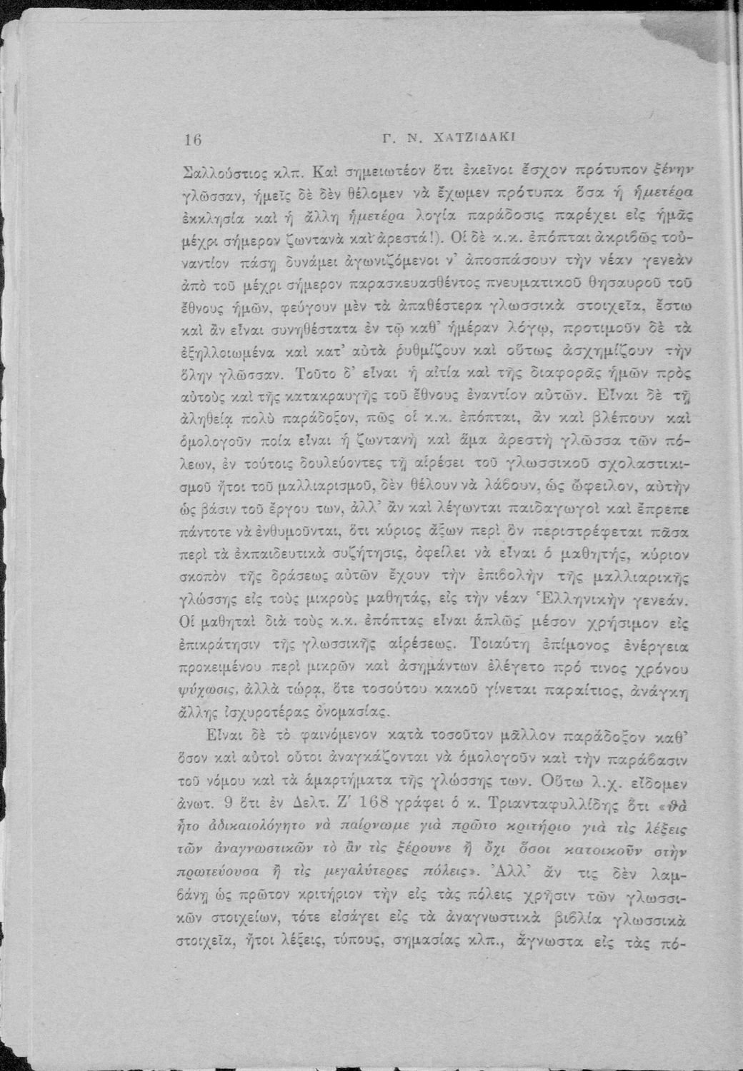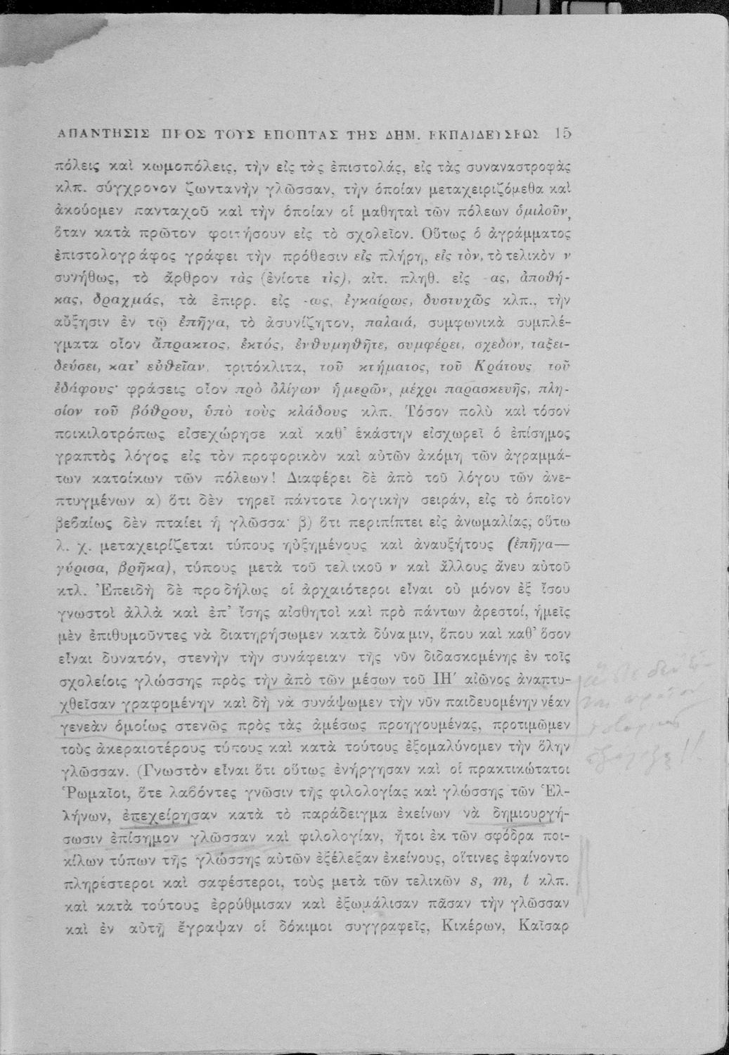 Απάντηση του Γ. Ν. Χατζιδάκι στους ανώτερους επόπτες της δημοτικής εκπαίδευσης (Μ. Τριανταφυλλίδη και Α. Δελμούζο) που δημοσιεύτηκε κατά την περίοδο της πρώτης βενιζελικής εκπαιδευτικής και γλωσσικής μεταρρύθμισης και αφορούσε τη σύγκρουση δημοτικιστών και καθαρευουσιάνων.