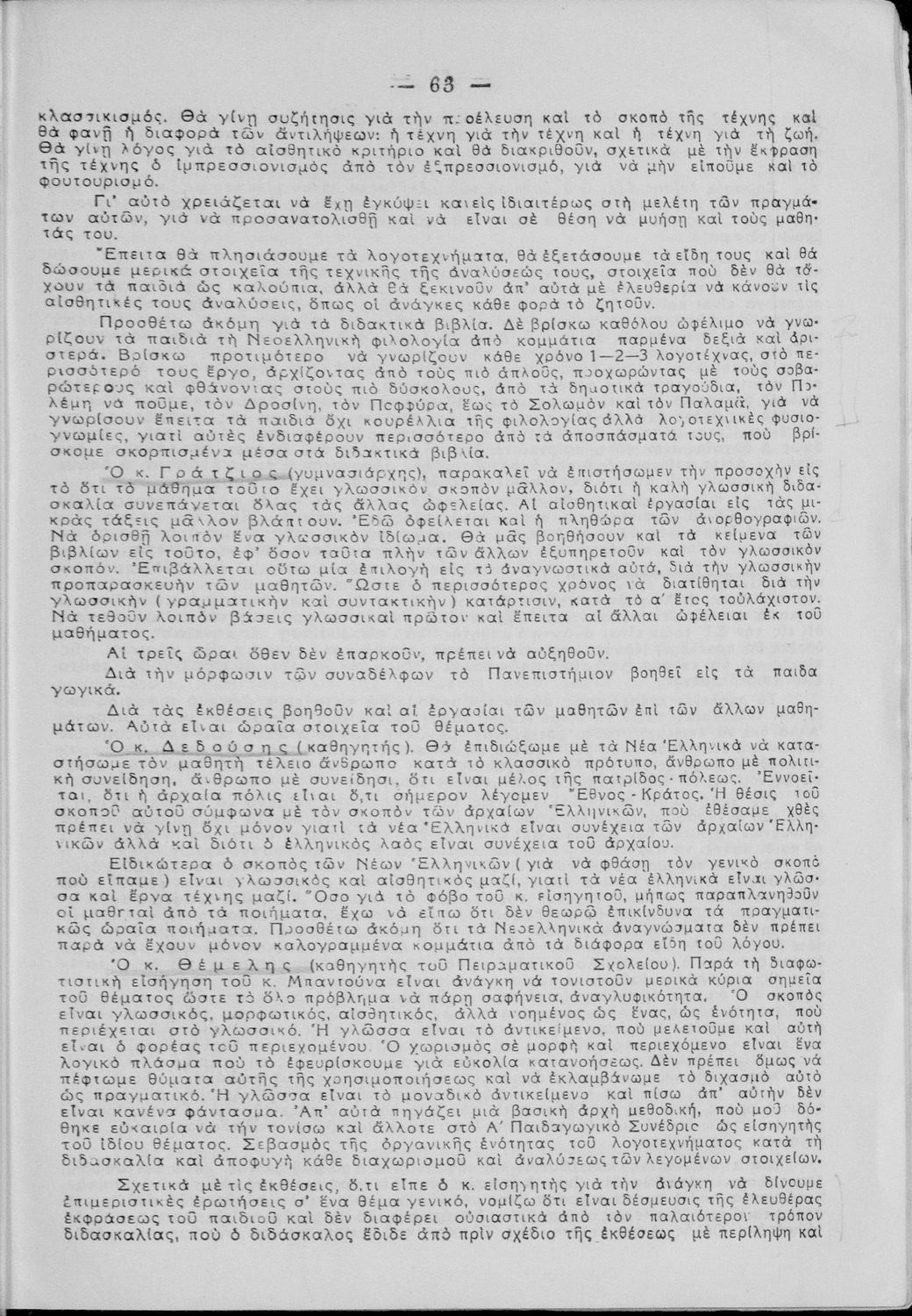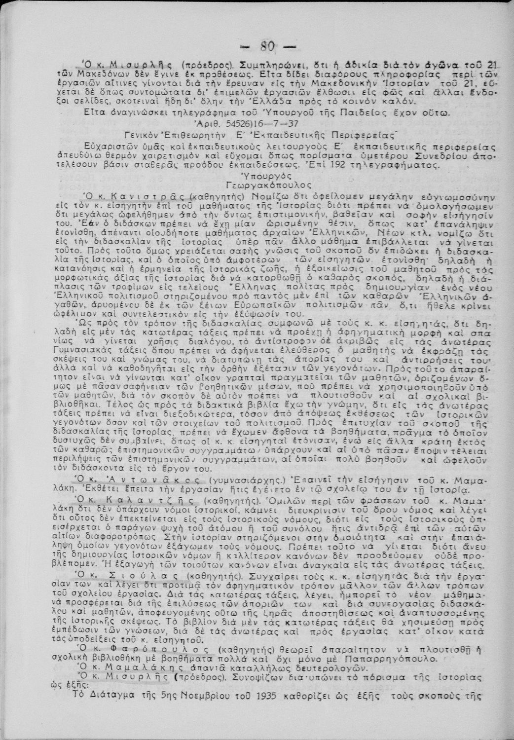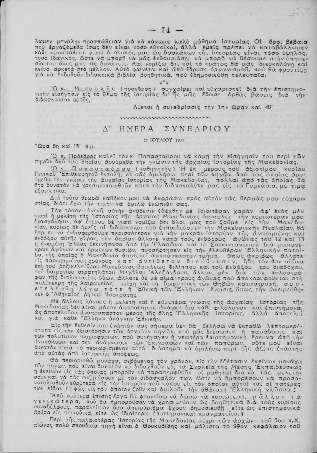 Πρακτικά του συνεδρίου των εκπαιδευτικών της Ε΄ εκπαιδευτικής περιφέρειας που συγκλήθηκε κατόπιν απόφασης του Γενικού Επιθεωρητή της Ε΄ εκπαιδευτικής περιφέρειας Δ. Μισυρλή με σκοπό να συζητηθεί η διδασκαλία των Αρχαίων και Νέων Ελληνικών, της Γραμματικής και της Ιστορίας καθώς και η σχολική ζωή των μαθητών.