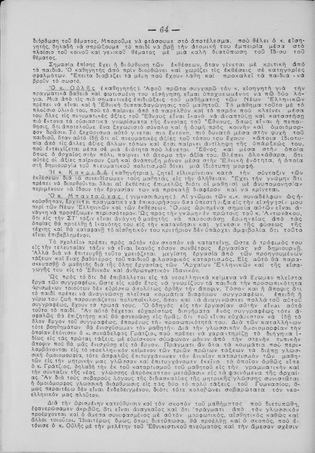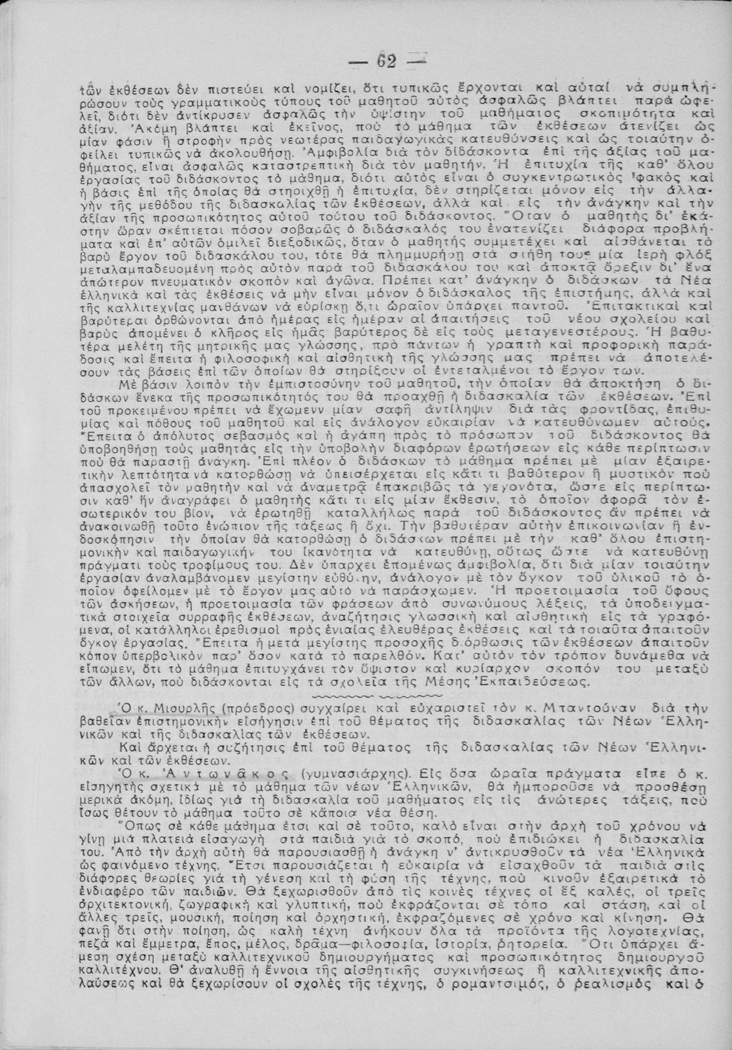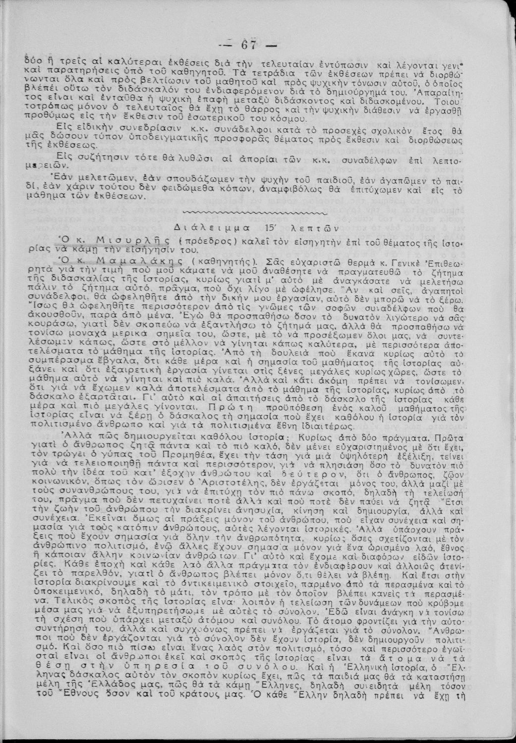 Πρακτικά του συνεδρίου των εκπαιδευτικών της Ε΄ εκπαιδευτικής περιφέρειας που συγκλήθηκε κατόπιν απόφασης του Γενικού Επιθεωρητή της Ε΄ εκπαιδευτικής περιφέρειας Δ. Μισυρλή με σκοπό να συζητηθεί η διδασκαλία των Αρχαίων και Νέων Ελληνικών, της Γραμματικής και της Ιστορίας καθώς και η σχολική ζωή των μαθητών.