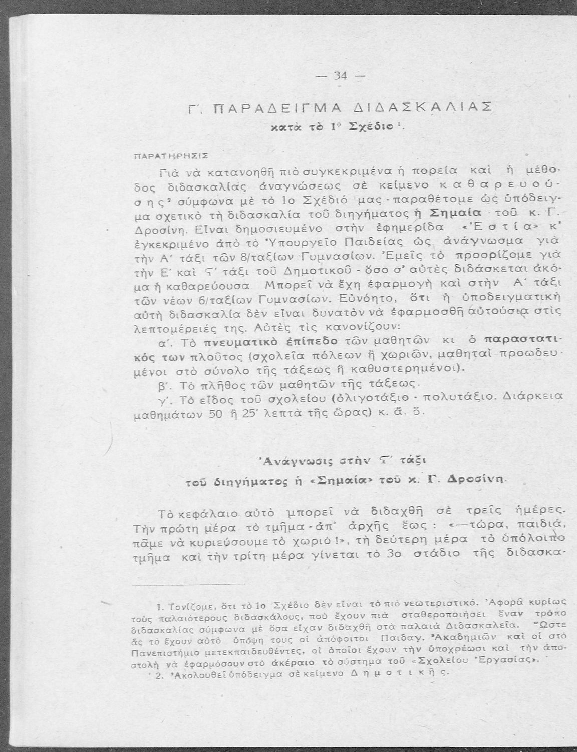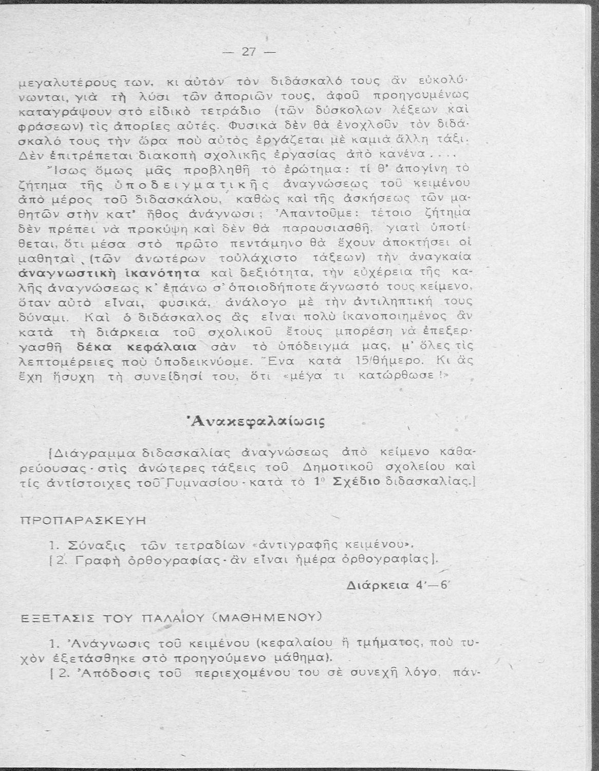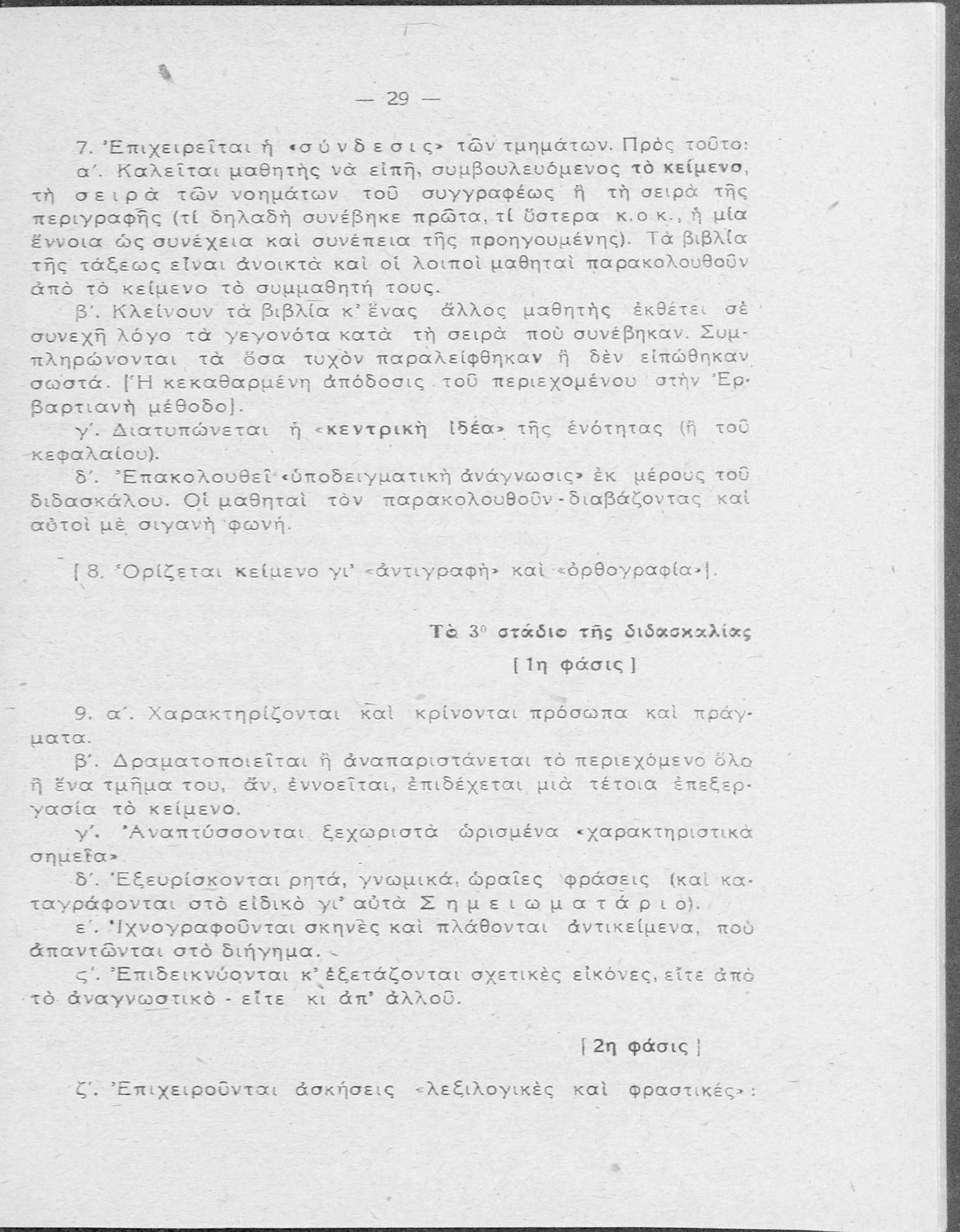 Διδακτικές οδηγίες και σχέδια διδασκαλιών. Τεύχος Α΄ . Το γλωσσικό μάθημα (Ανάγνωσις και Ορθογραφία)