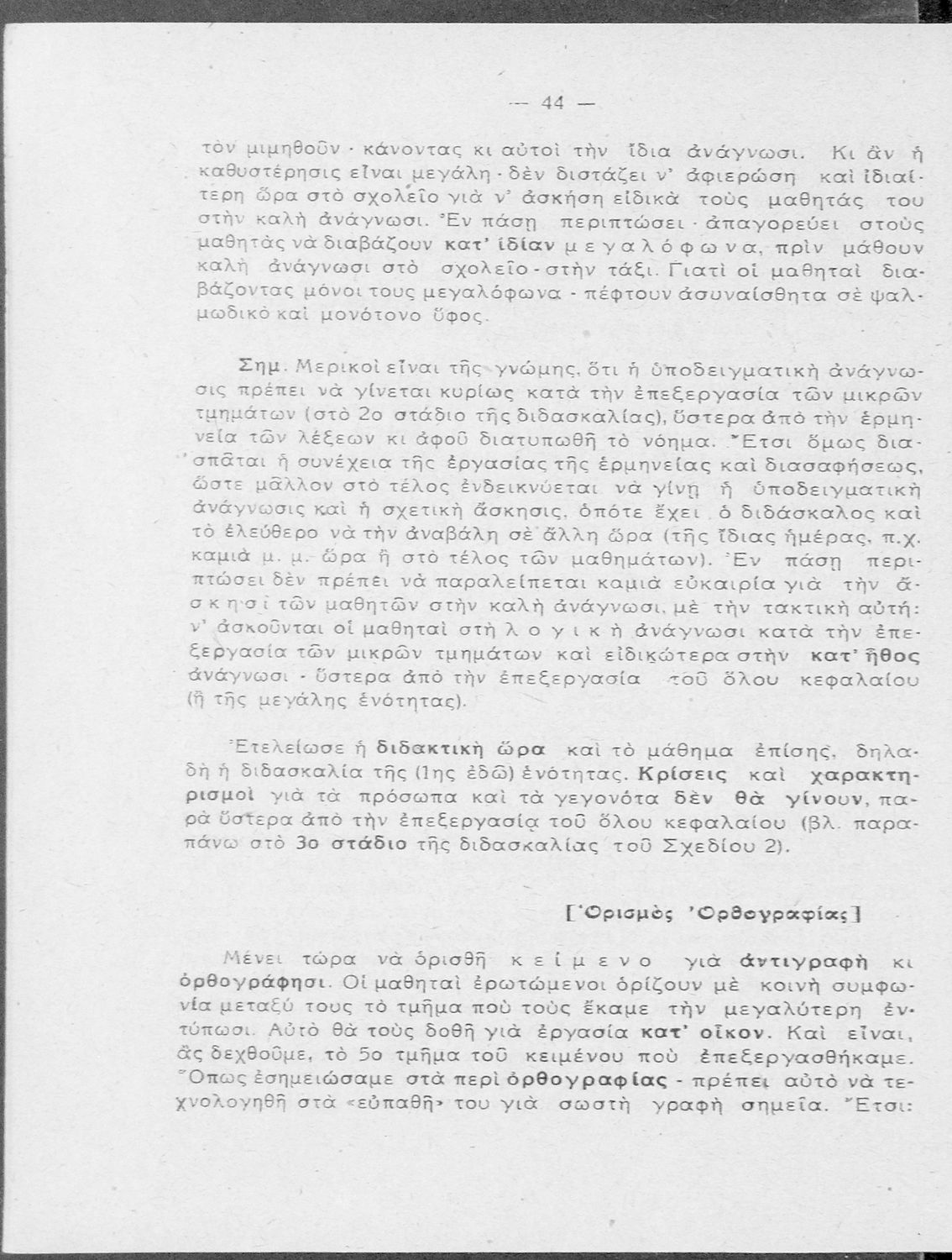 Διδακτικές οδηγίες και σχέδια διδασκαλιών. Τεύχος Α΄ . Το γλωσσικό μάθημα (Ανάγνωσις και Ορθογραφία)