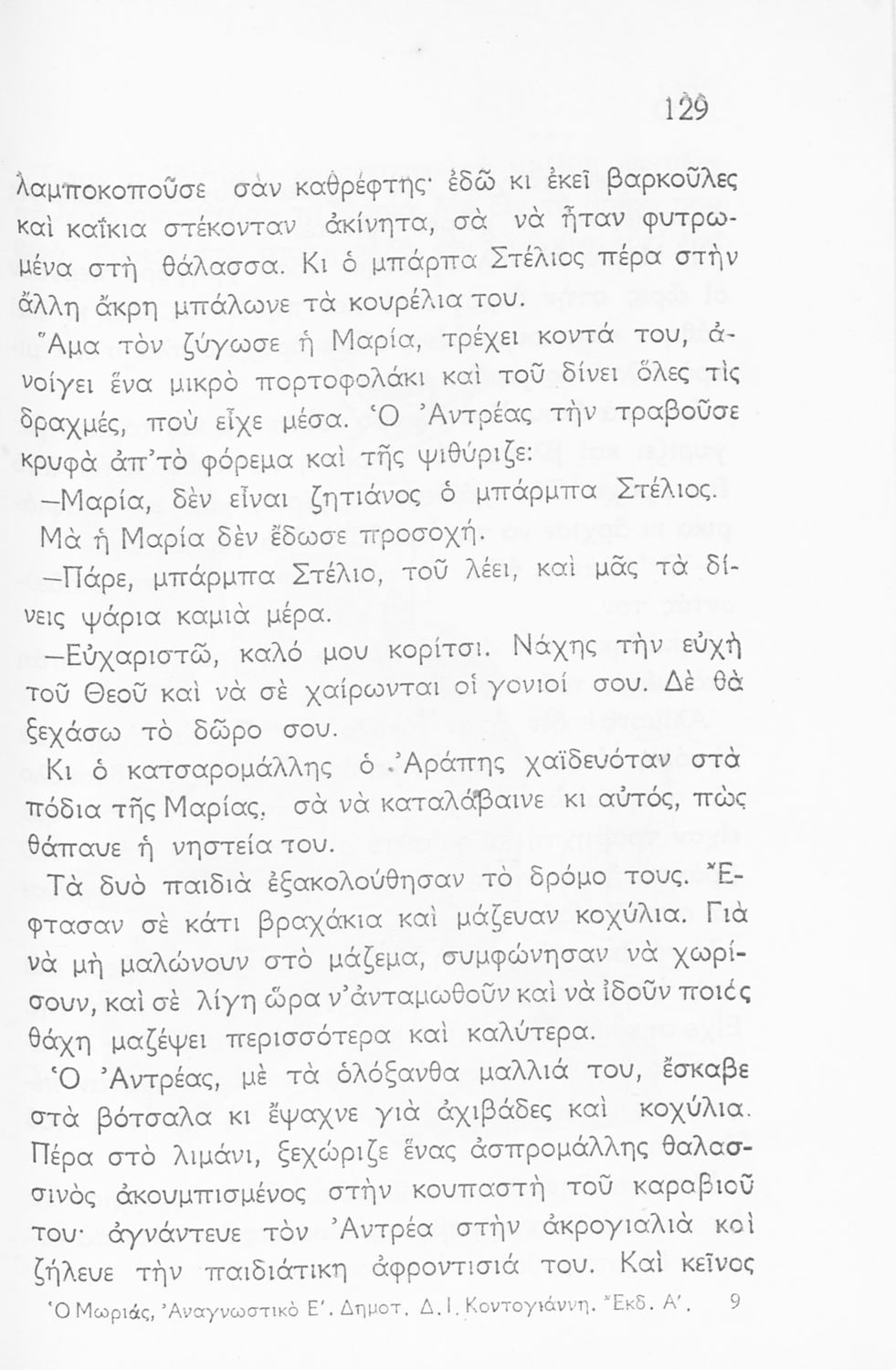 Αναγνωστικό Ε΄ Δημοτικού που περιλαμβάνει πεζογραφήματα εμπνευσμένα από την ελληνική φύση, την αγροτική ζωή και από το τρίπτυχο "Πατρίς- θρησκεία- οικογένεια".