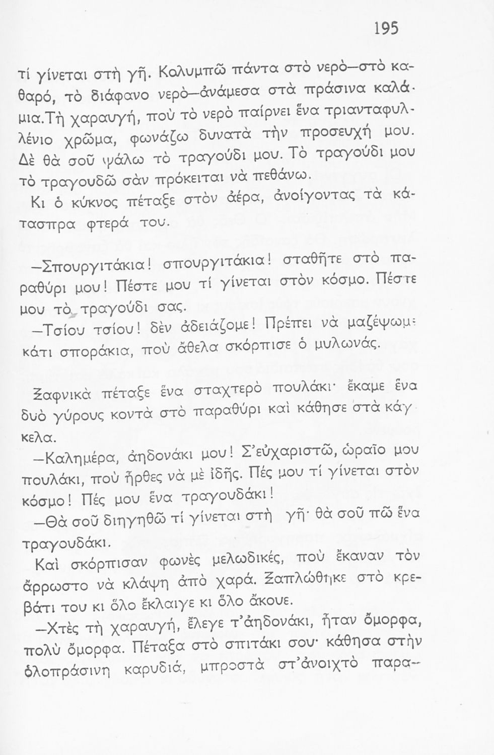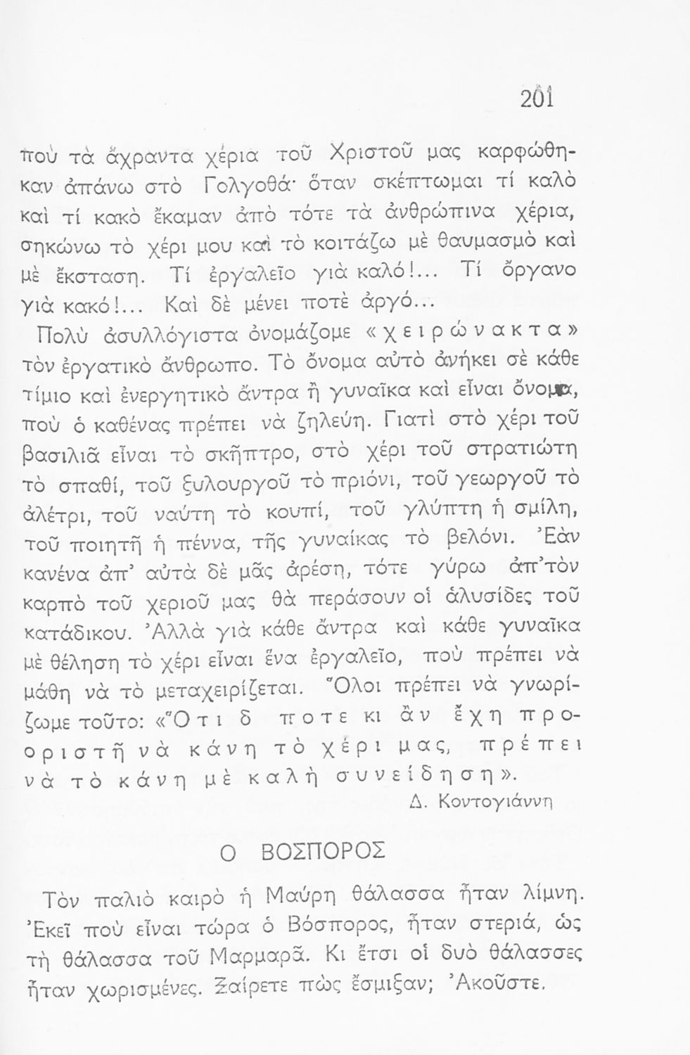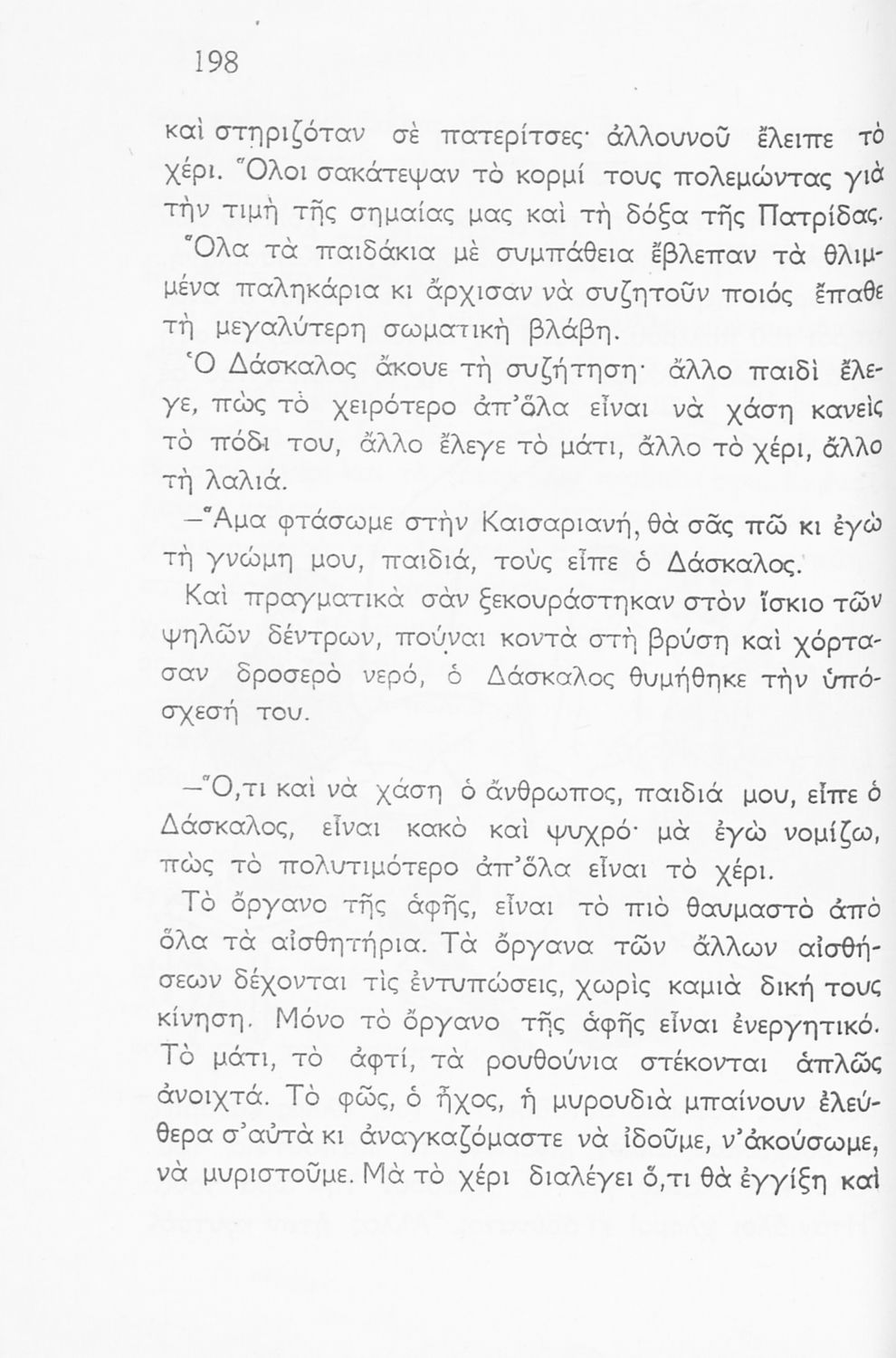 Αναγνωστικό Ε΄ Δημοτικού που περιλαμβάνει πεζογραφήματα εμπνευσμένα από την ελληνική φύση, την αγροτική ζωή και από το τρίπτυχο "Πατρίς- θρησκεία- οικογένεια".