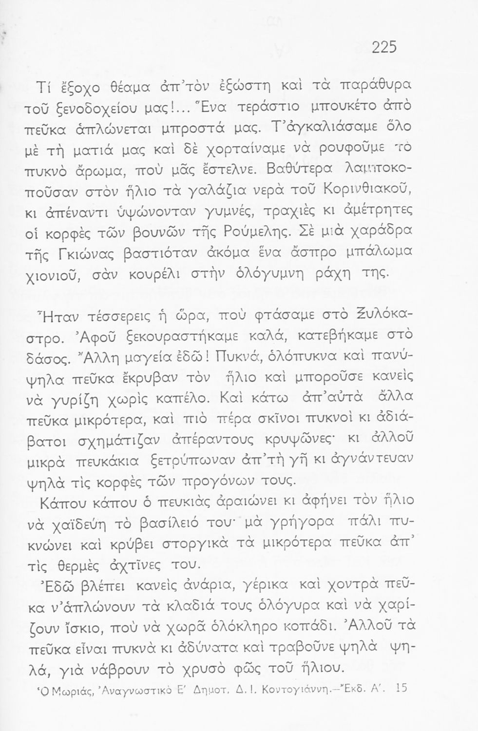 Αναγνωστικό Ε΄ Δημοτικού που περιλαμβάνει πεζογραφήματα εμπνευσμένα από την ελληνική φύση, την αγροτική ζωή και από το τρίπτυχο "Πατρίς- θρησκεία- οικογένεια".