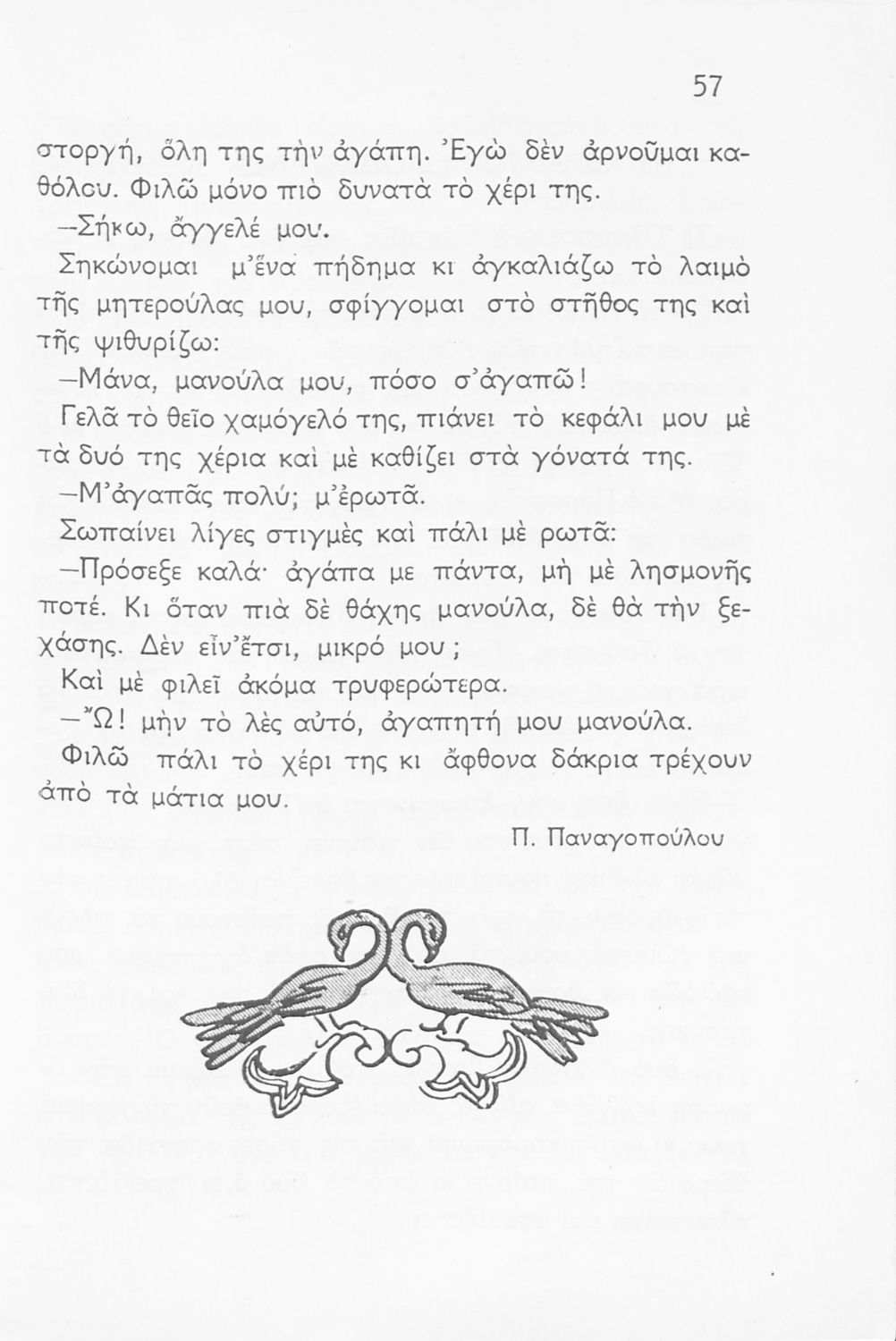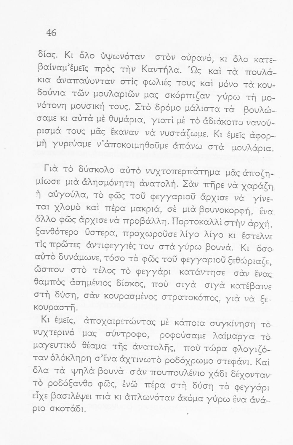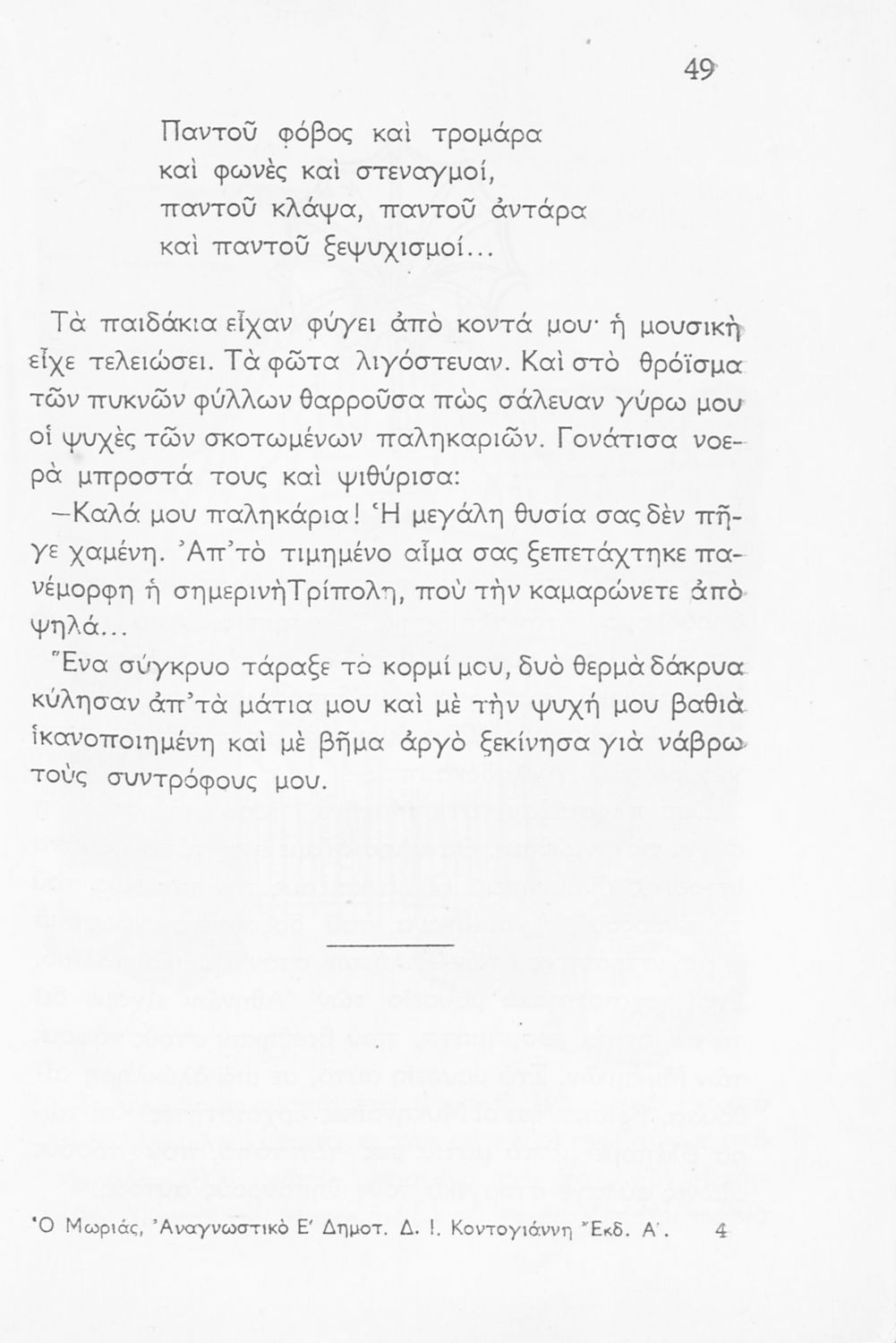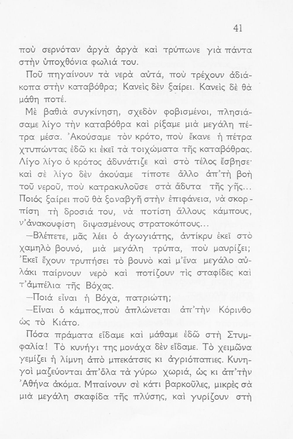 Αναγνωστικό Ε΄ Δημοτικού που περιλαμβάνει πεζογραφήματα εμπνευσμένα από την ελληνική φύση, την αγροτική ζωή και από το τρίπτυχο "Πατρίς- θρησκεία- οικογένεια".