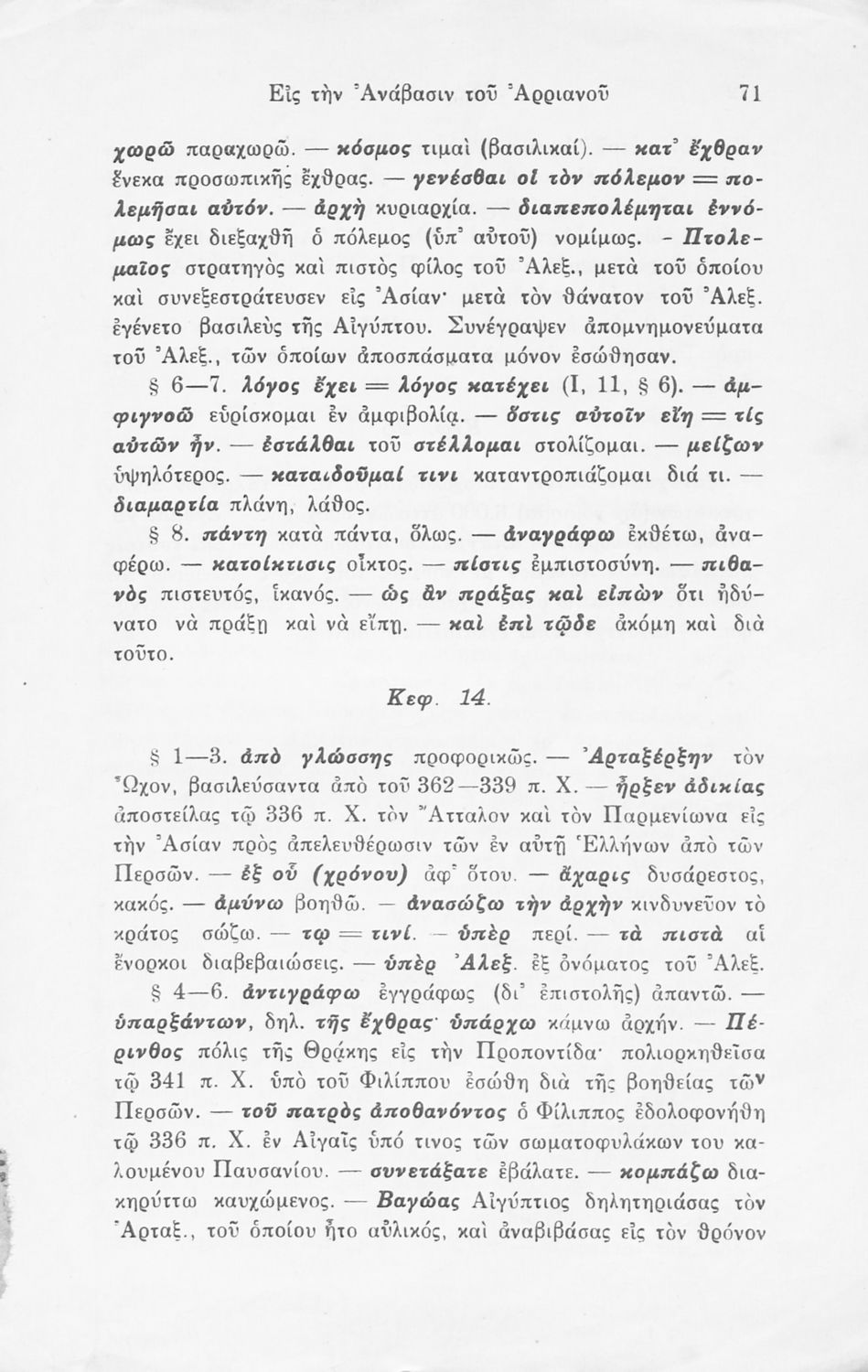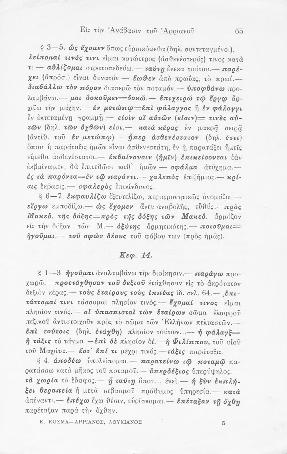 520 ## _aΣχολικό εγχειρίδιο Αρχαίων Ελληνικών Β΄ Γυμνασίου που περιλαμβάνει σύντομο βιογραφικό σημείωμα των Αρριανού και Λουκιανού, εισαγωγή στα έργα, αποσπάσματα από το πρώτο και δεύτερο βιβλίο της Ανάβασης του Αλέξανδρου και του Νεκρικούς Διαλόγους και ετυμολογικές σημειώσεις.