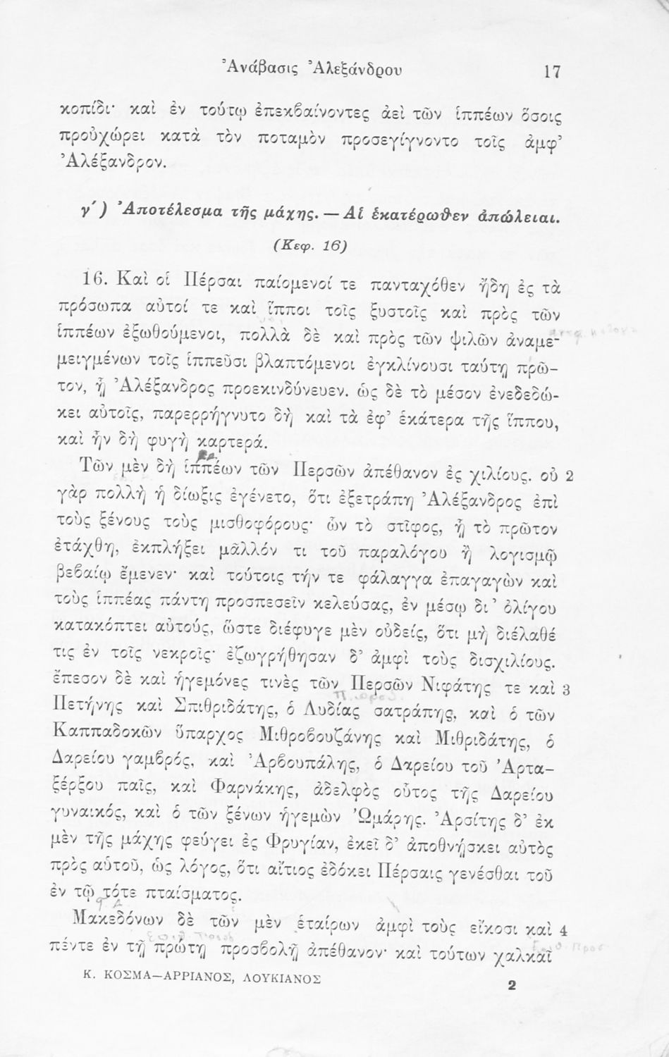Εκλογαί εκ της Αναβάσεως του Αρριανού και των Νεκρικών Διαλόγων του Λουκιανού. Διά την Β΄ τάξιν των Ημιγυμνασίων και των Εξαταξίων Γυμνασίων