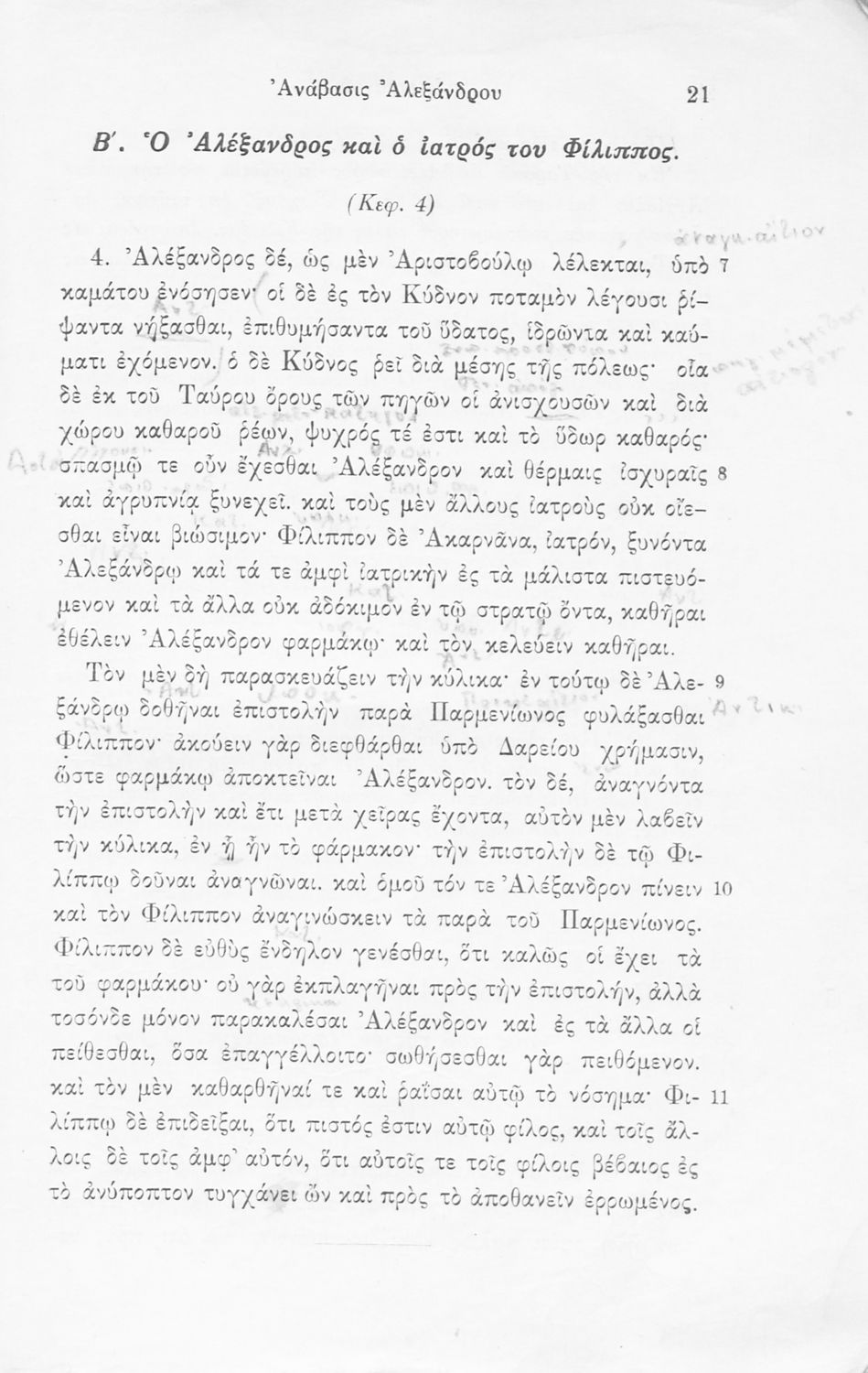 Παρουσίαση περιεχομένου: Σχολικό εγχειρίδιο Αρχαίων Ελληνικών Β΄ Γυμνασίου που περιλαμβάνει σύντομο βιογραφικό σημείωμα των Αρριανού και Λουκιανού, εισαγωγή στα έργα, αποσπάσματα από το πρώτο και δεύτερο βιβλίο της Ανάβασης του Αλέξανδρου και του Νεκρικούς Διαλόγους και ετυμολογικές σημειώσεις.
