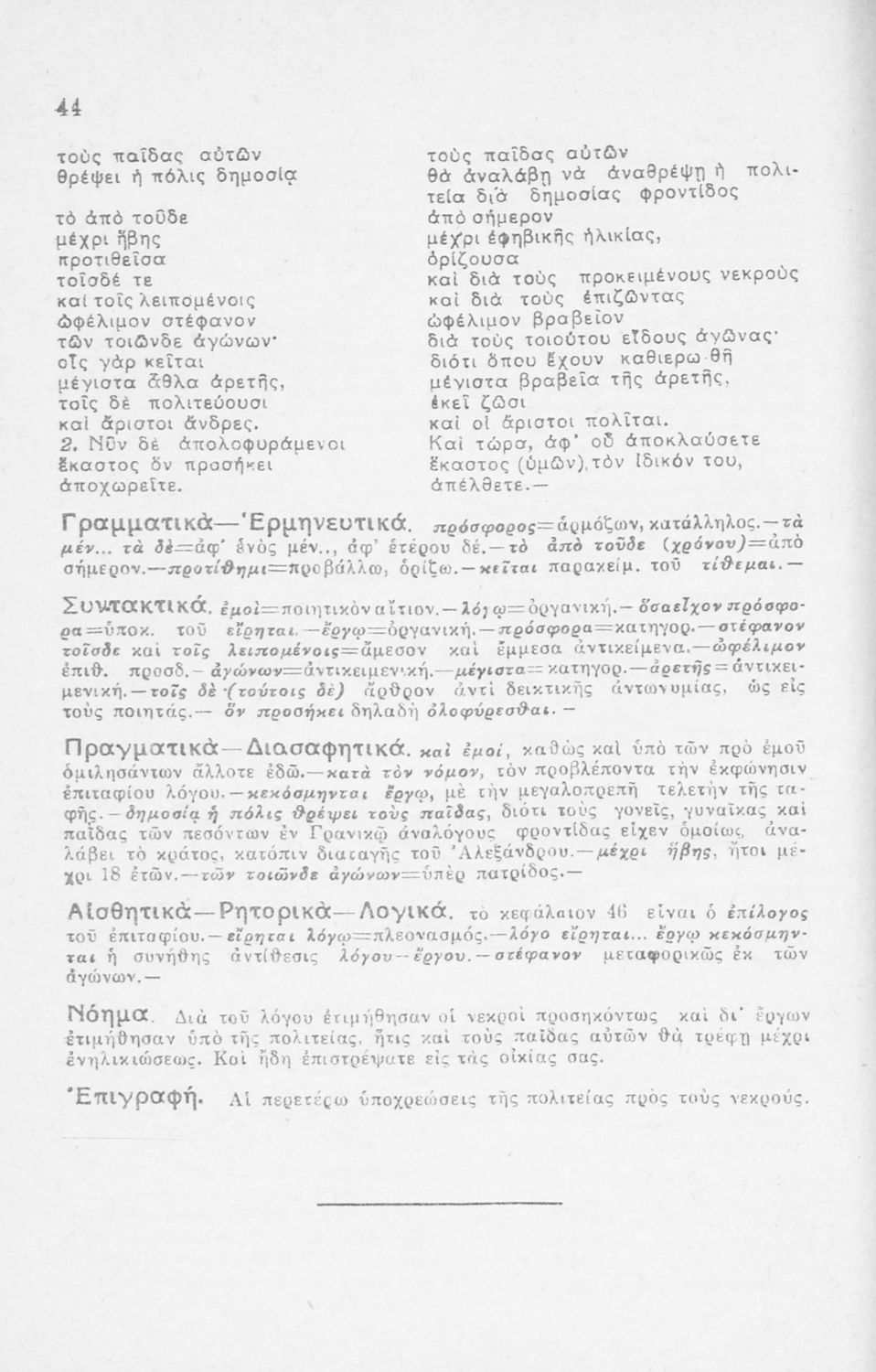 Θουκυδίδου Ο Περικλέους Επιτάφιος. Σχολική μετάφρασις διά τους μαθητάς της Η΄ τάξεως των Οκταταξίων Γυμνασίων κατά το εγκεκριμένον βιβλίον του Ο.Ε.Σ.Β.