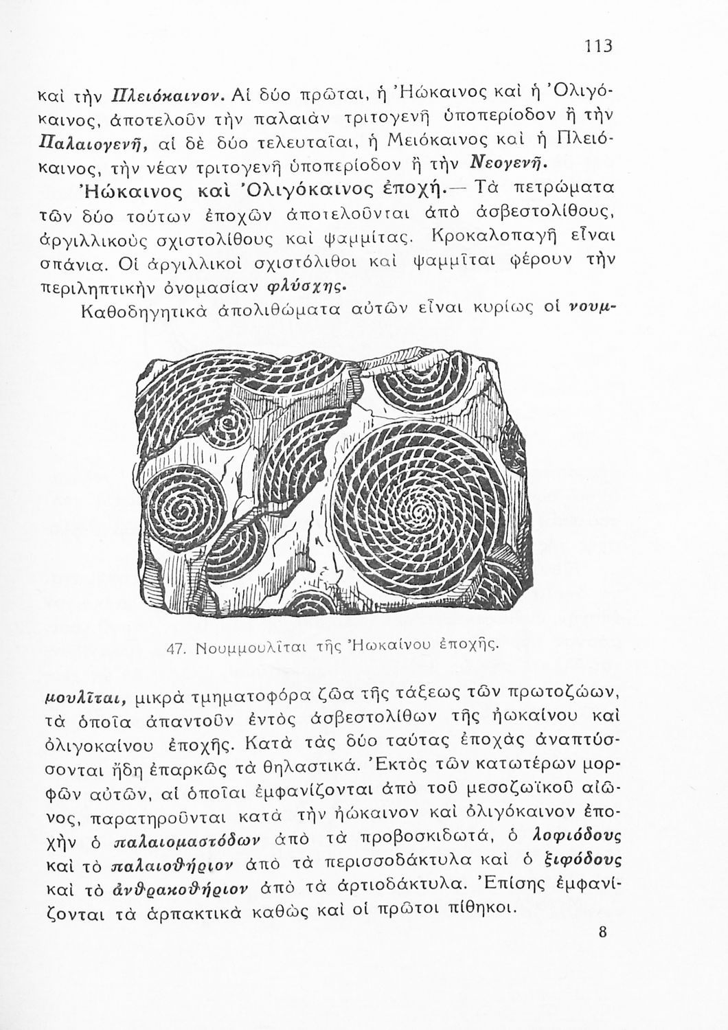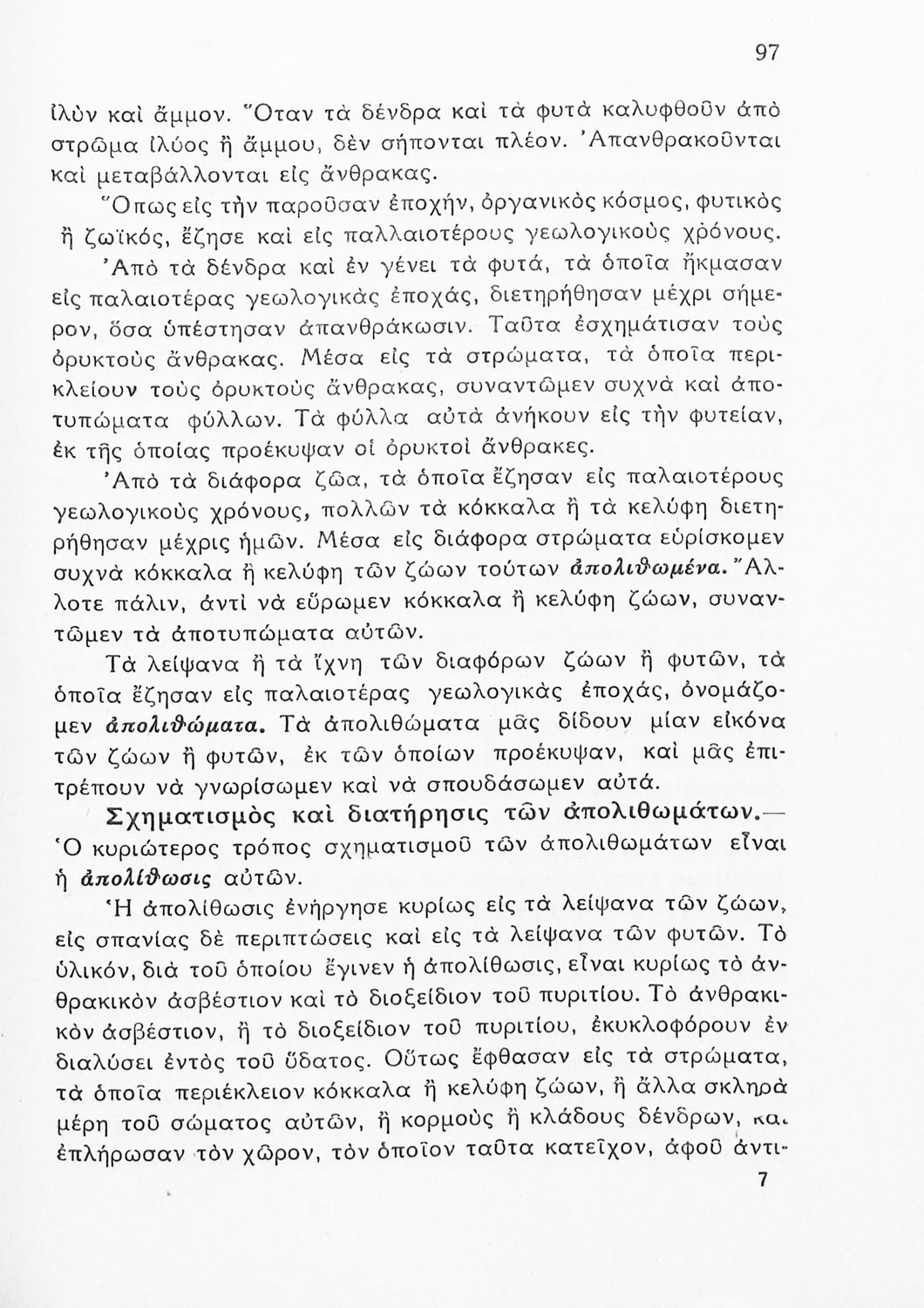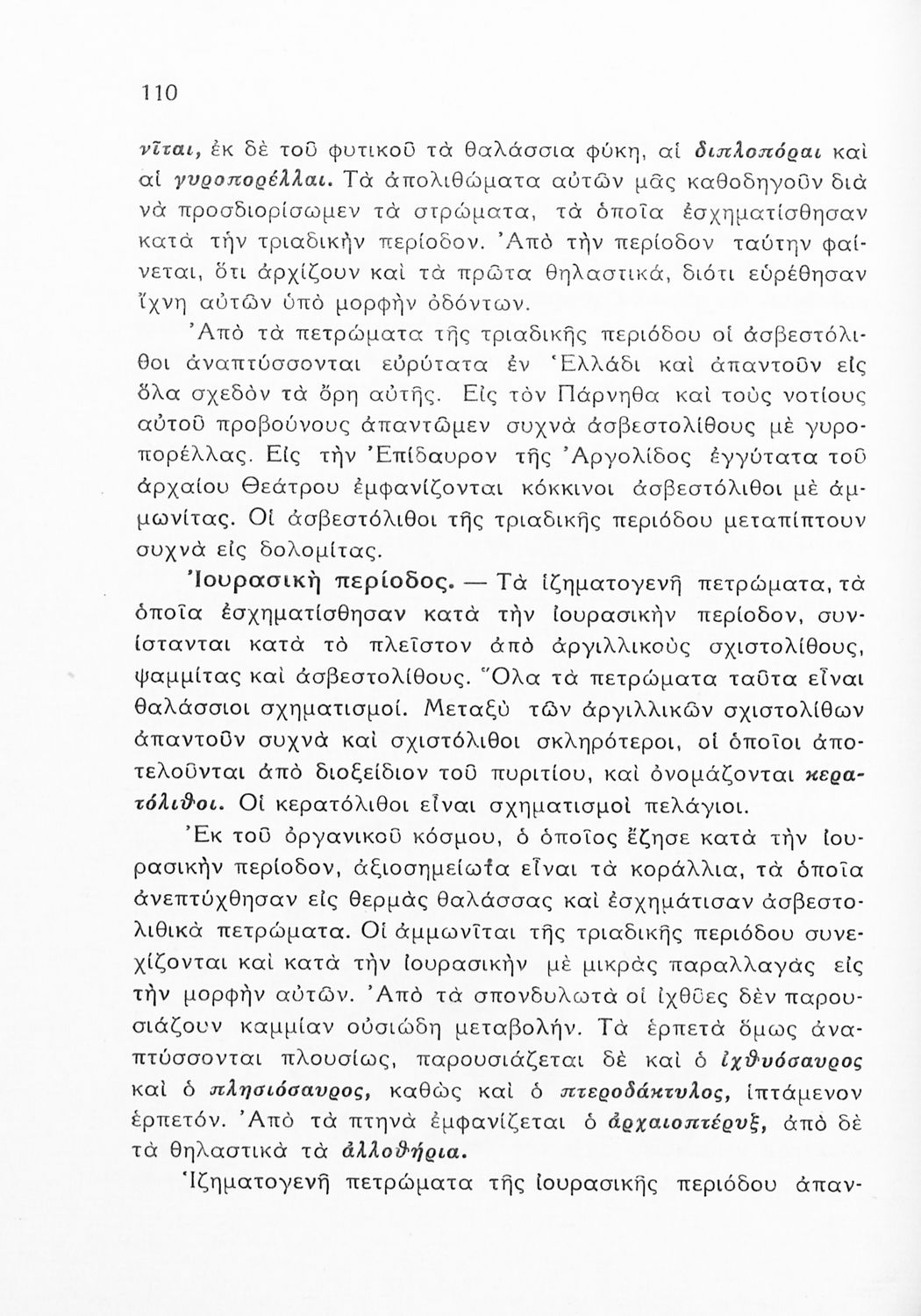 Βιβλίο Γεωλογίας/Ορυκτολογίας για την Δ΄ τάξη των Εξαταξίων Γυμνασίων που παρουσιάζει τα ορυκτά με βάση την κλάση στην οποία ανήκουν. Το τμήμα της γεωλογίας εστιάζει στους γεωλογικούς αιώνες, Ο συγγραφέας ήταν υφηγητής της Γεωλογίας στο Πανεπιστήμιο Αθηνών.