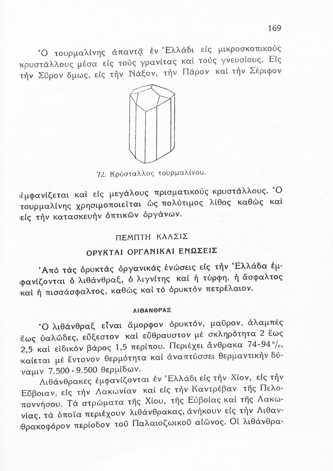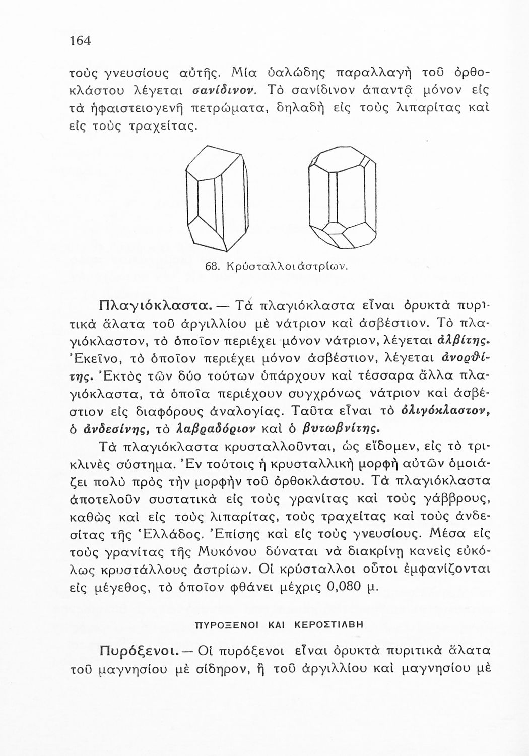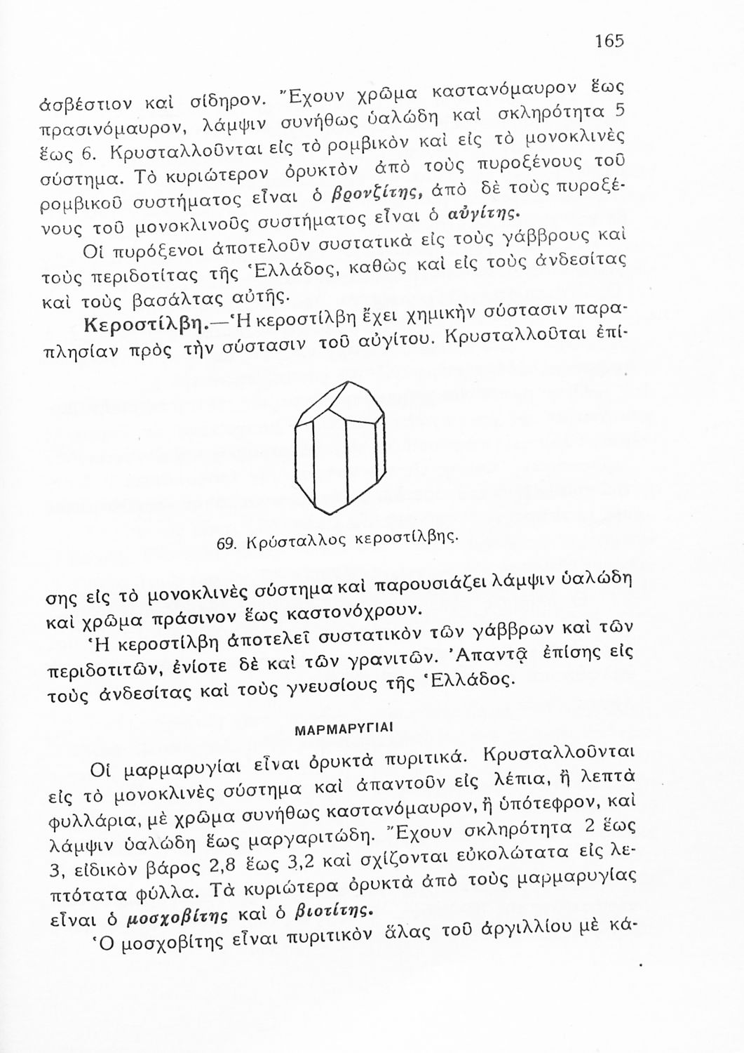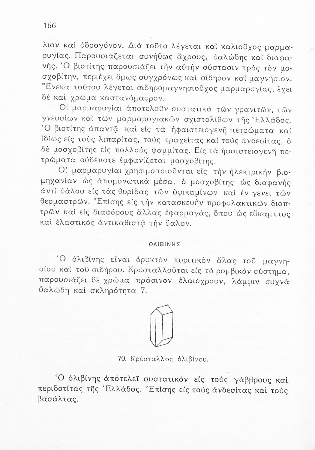 Βιβλίο Γεωλογίας/Ορυκτολογίας για την Δ΄ τάξη των Εξαταξίων Γυμνασίων που παρουσιάζει τα ορυκτά με βάση την κλάση στην οποία ανήκουν. Το τμήμα της γεωλογίας εστιάζει στους γεωλογικούς αιώνες, Ο συγγραφέας ήταν υφηγητής της Γεωλογίας στο Πανεπιστήμιο Αθηνών.