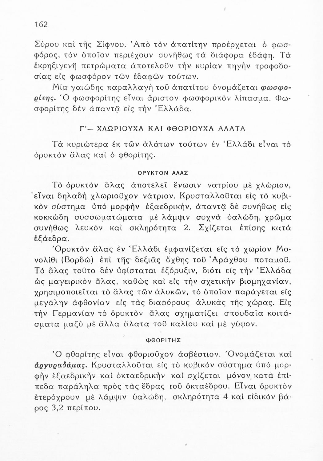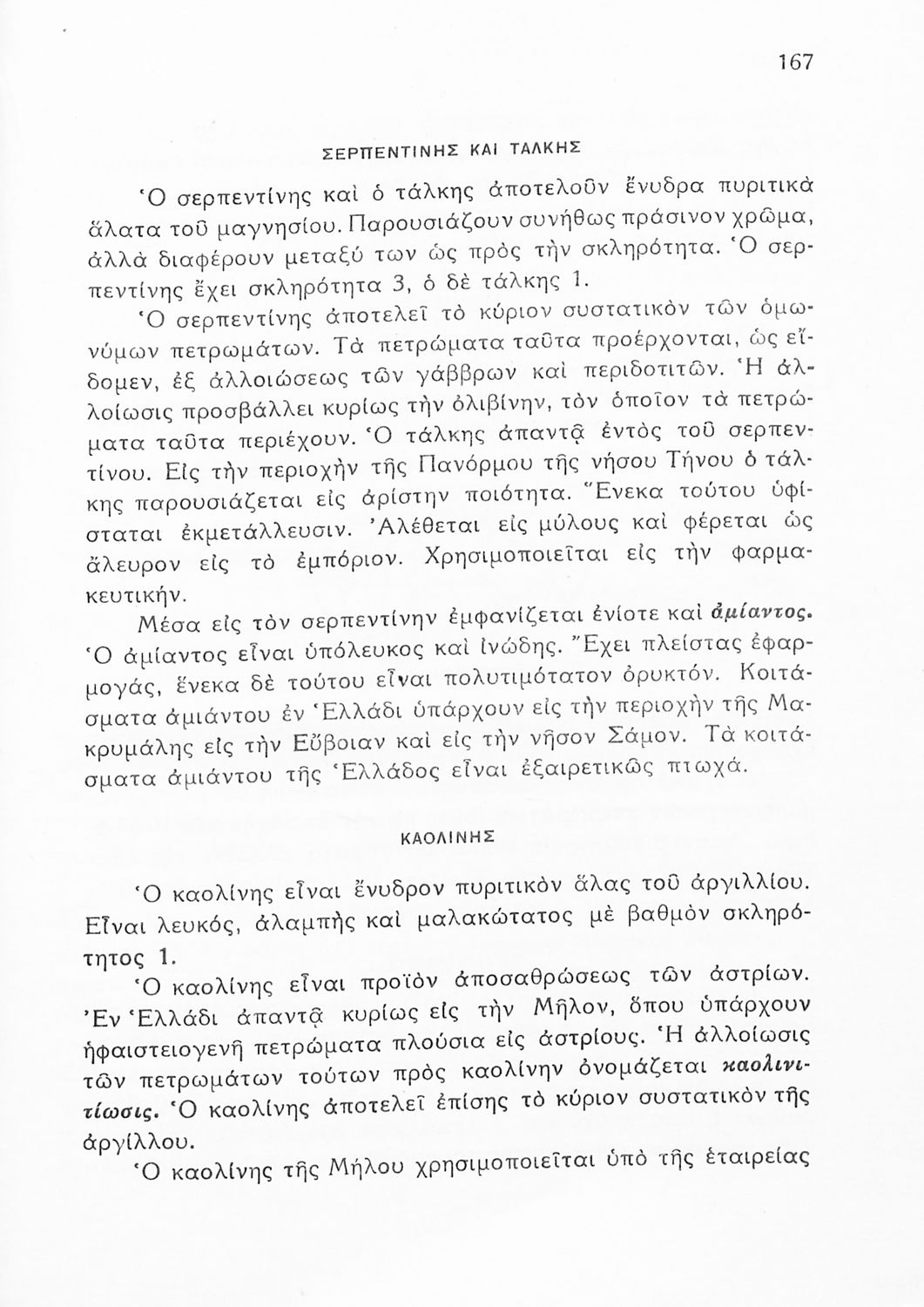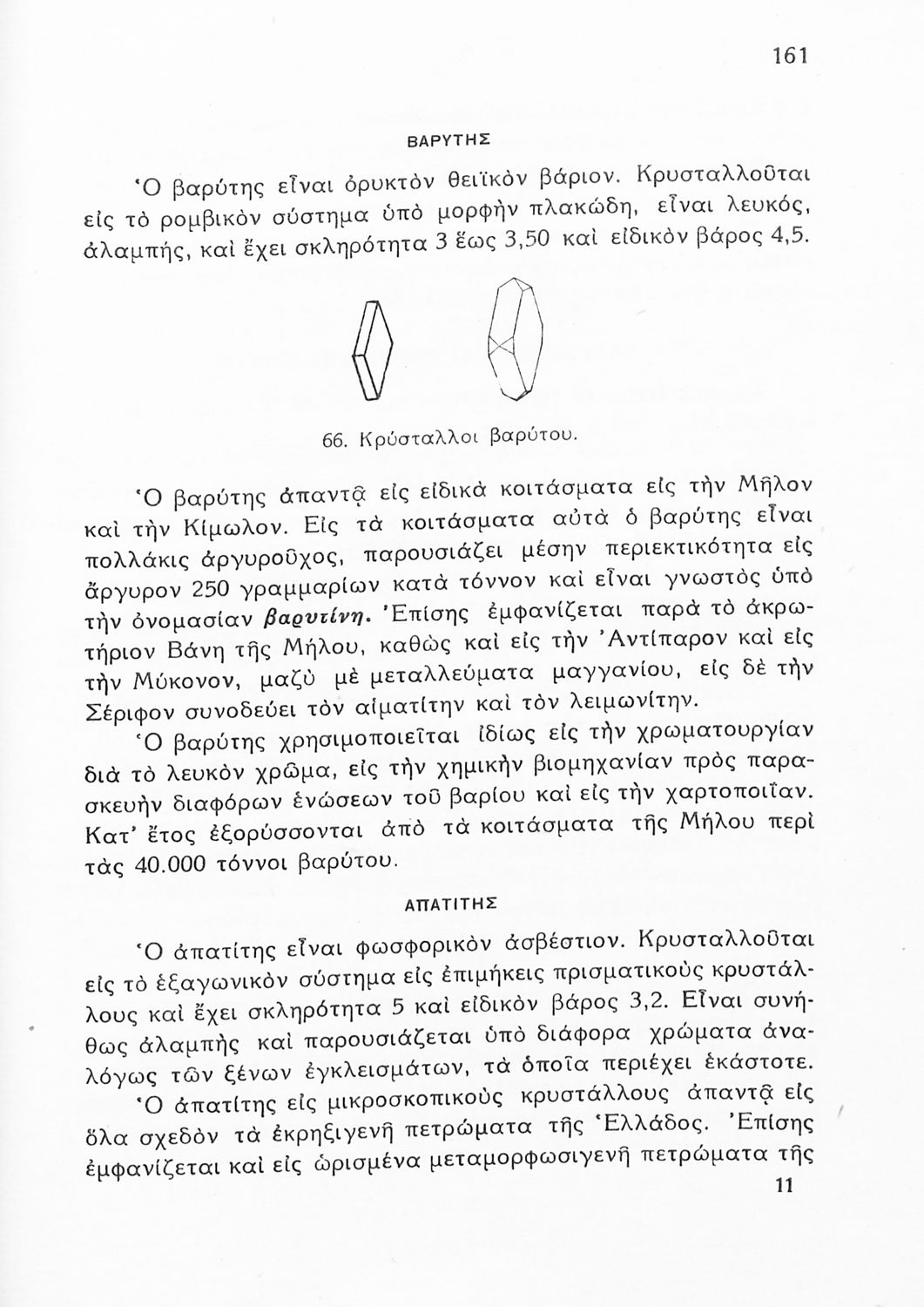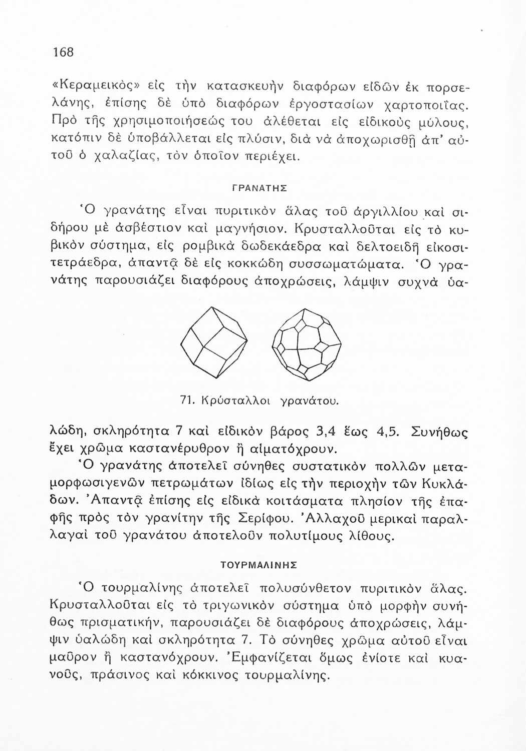 Βιβλίο Γεωλογίας/Ορυκτολογίας για την Δ΄ τάξη των Εξαταξίων Γυμνασίων που παρουσιάζει τα ορυκτά με βάση την κλάση στην οποία ανήκουν. Το τμήμα της γεωλογίας εστιάζει στους γεωλογικούς αιώνες, Ο συγγραφέας ήταν υφηγητής της Γεωλογίας στο Πανεπιστήμιο Αθηνών.