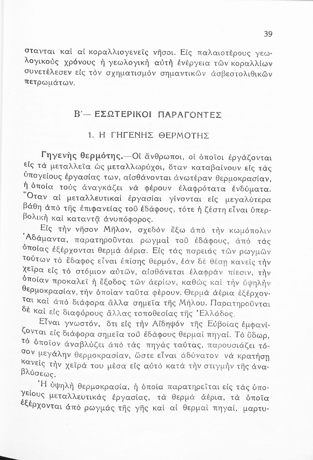 Βιβλίο Γεωλογίας/Ορυκτολογίας για την Δ΄ τάξη των Εξαταξίων Γυμνασίων που παρουσιάζει τα ορυκτά με βάση την κλάση στην οποία ανήκουν. Το τμήμα της γεωλογίας εστιάζει στους γεωλογικούς αιώνες, Ο συγγραφέας ήταν υφηγητής της Γεωλογίας στο Πανεπιστήμιο Αθηνών.