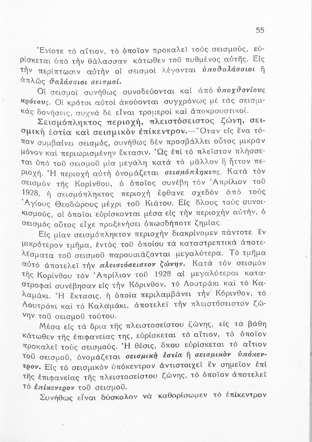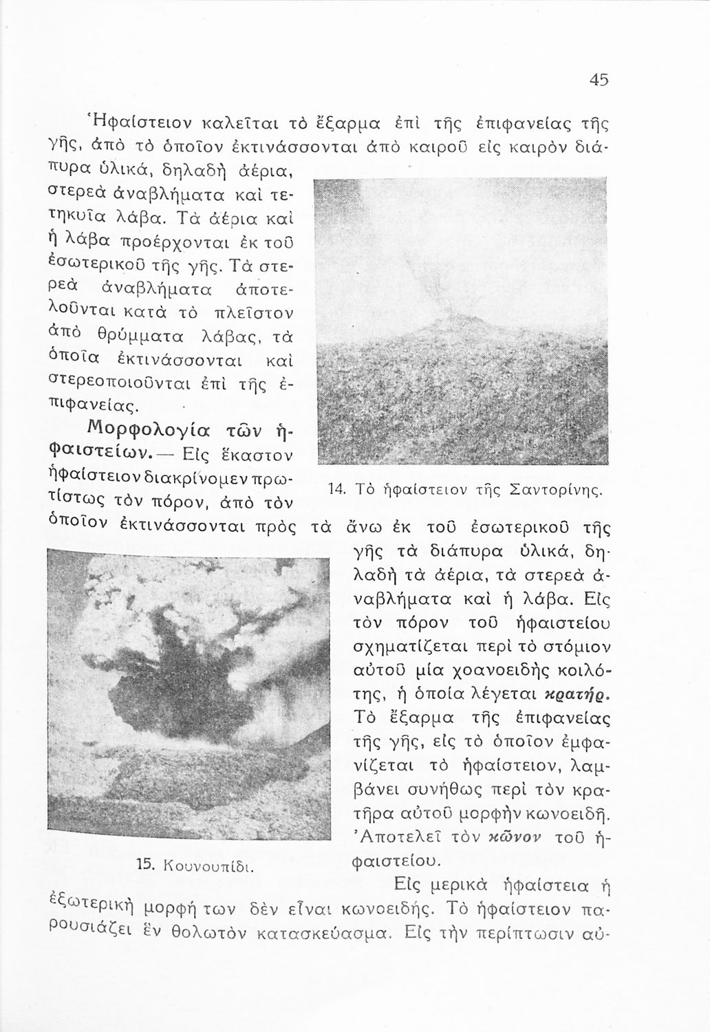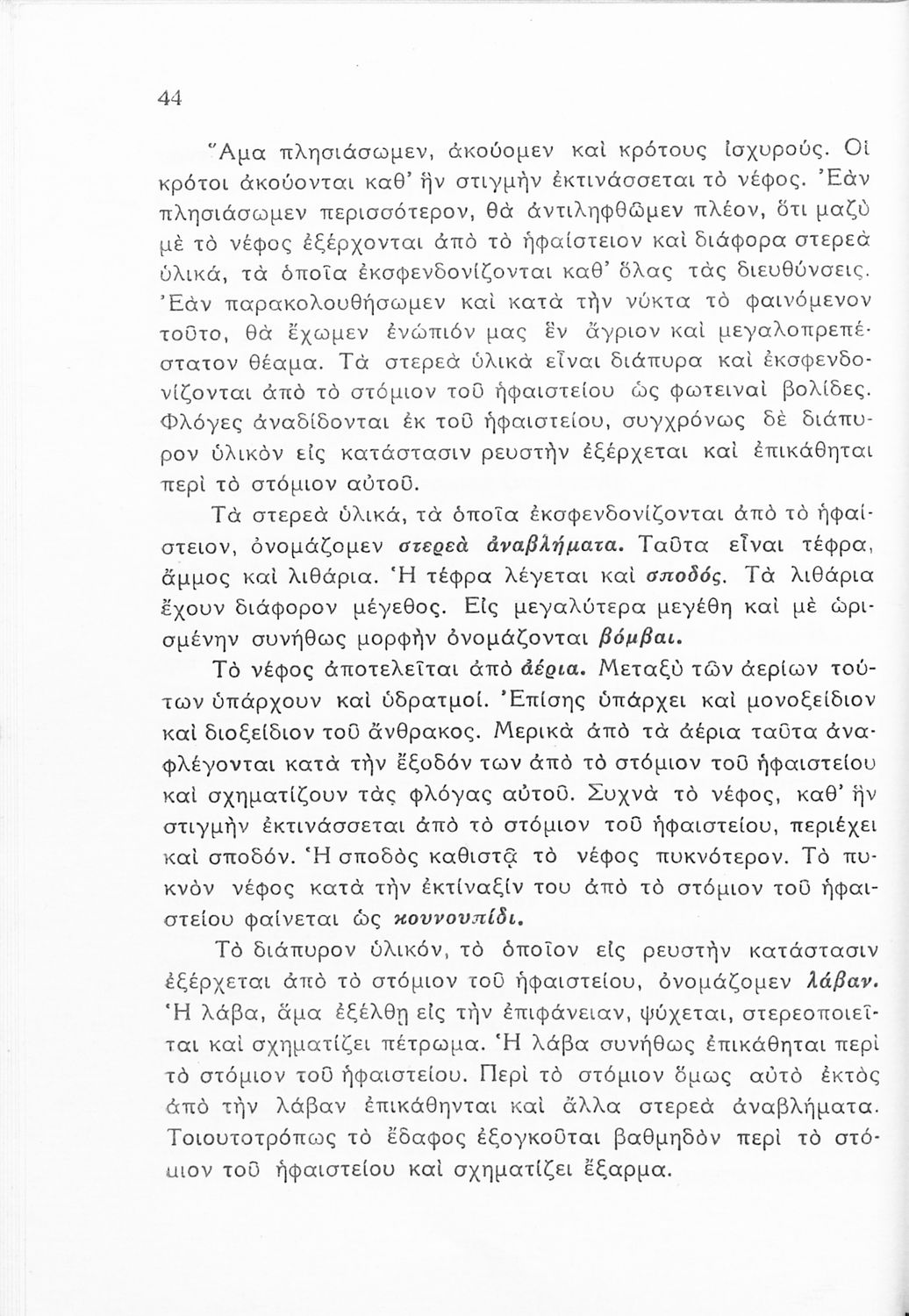 Σχολικό εγχειρίδιο Γεωλογίας και Ορυκτολογίας Β΄ Γυμνασίου που πραγματεύεται διάφορα γεωλογικά φαινόμενα, όπως τα ηφαίστεια και οι σεισμοί, και την στρωματογραφία και το γεωλογικό παρελθόν της Γης. Στο δεύτερο