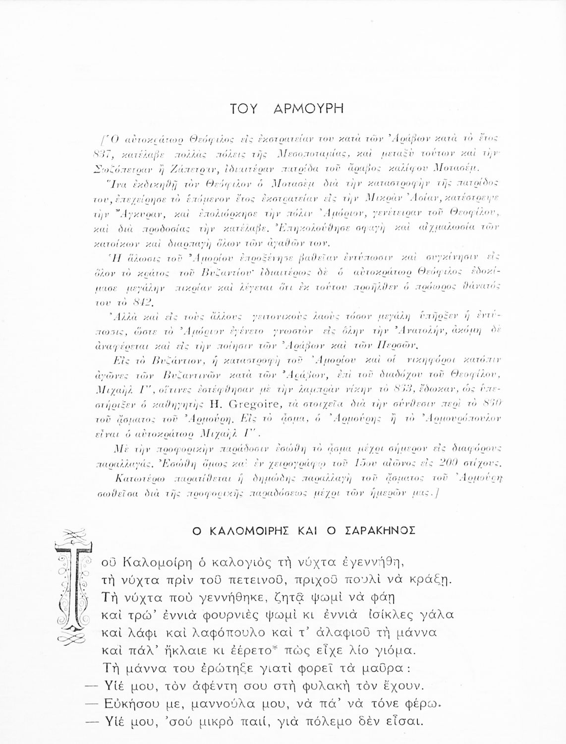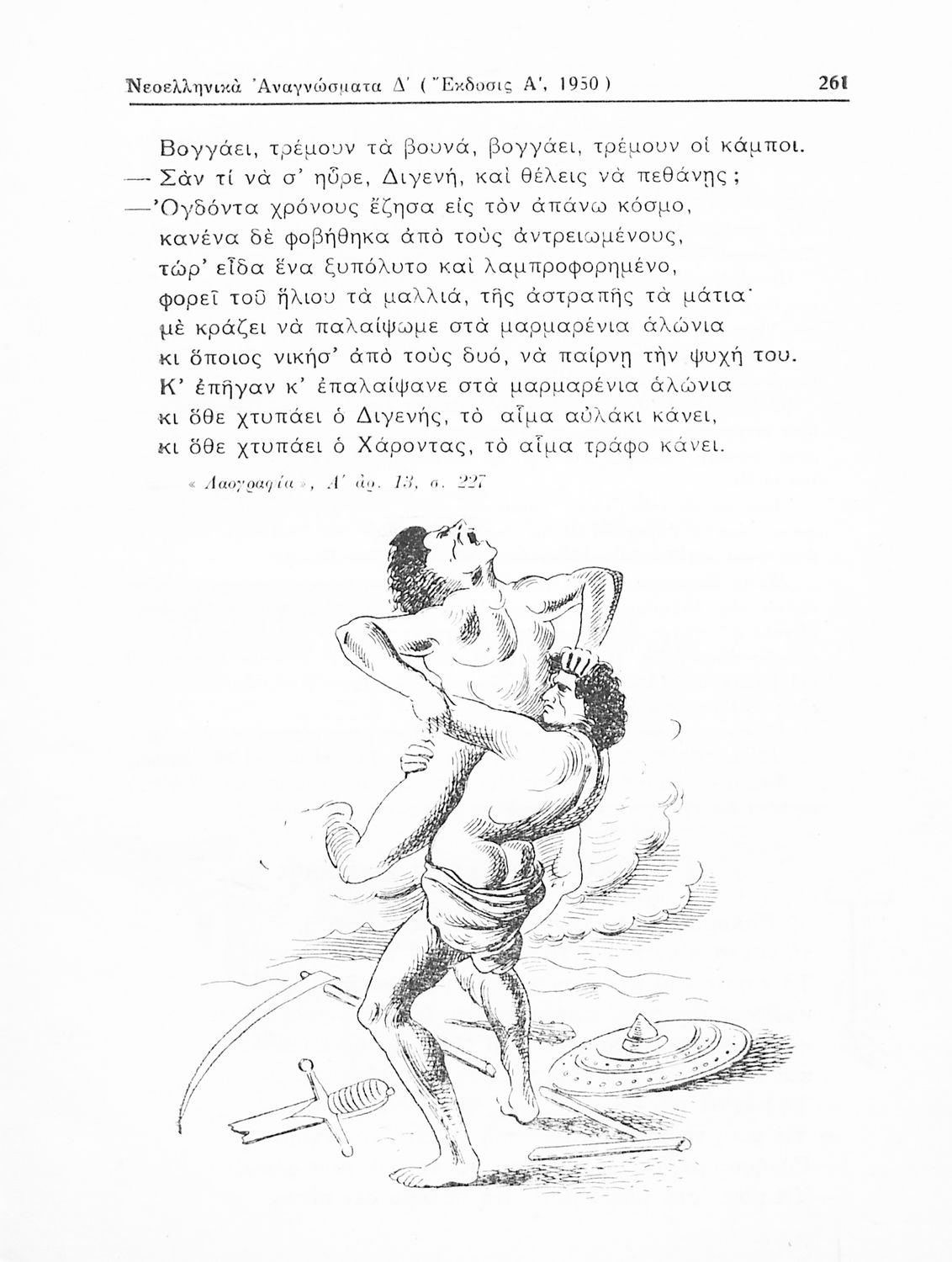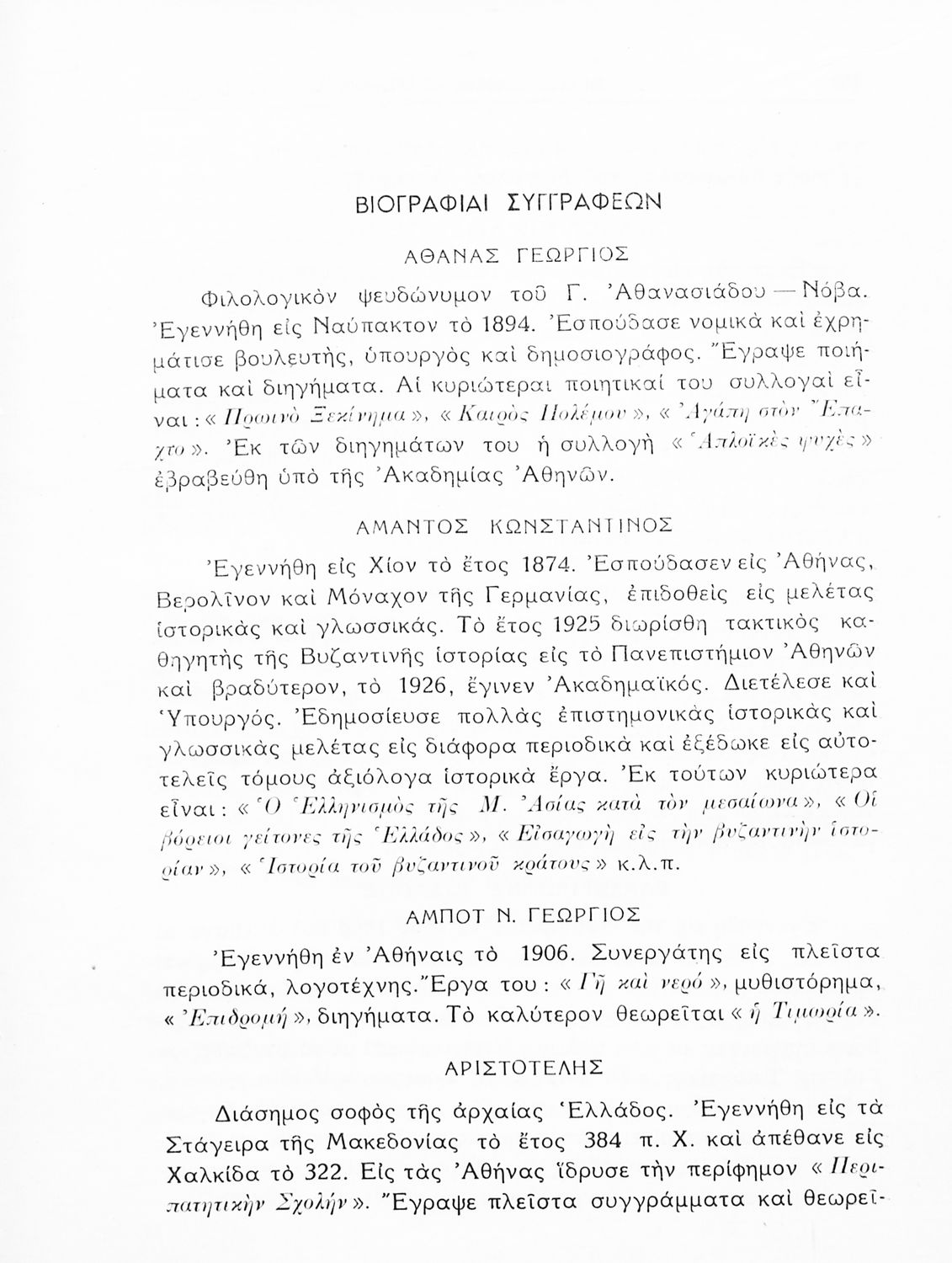 Σχολικό εγχειρίδιο Νέων Ελληνικών Γ΄ Γυμνασίου και Α' Αστικού Σχολείου που περιέχει πεζά και ποιήματα Ελλήνων συγγραφέων εμπνευσμένα από τη θρησκευτική και κοινωνική ζωή, την ελληνική μυθολογία, την αρχαία και
