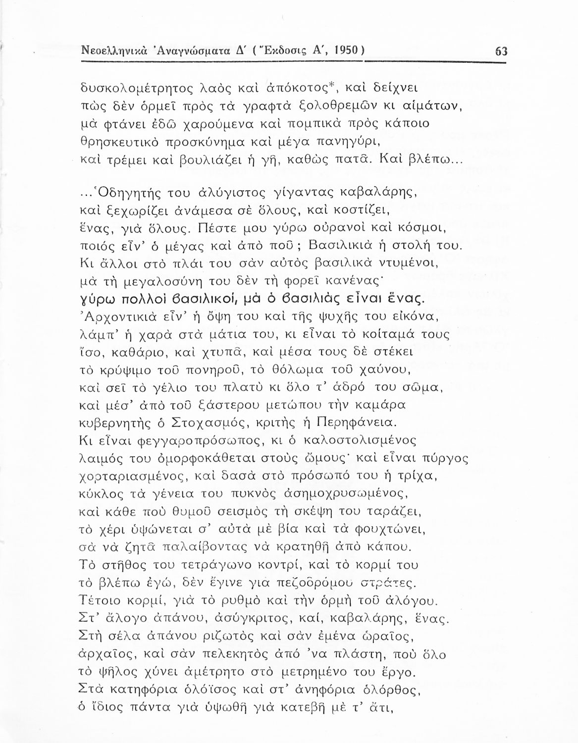 Σχολικό εγχειρίδιο Νέων Ελληνικών Γ΄ Γυμνασίου και Α' Αστικού Σχολείου που περιέχει πεζά και ποιήματα Ελλήνων συγγραφέων εμπνευσμένα από τη θρησκευτική και κοινωνική ζωή, την ελληνική μυθολογία, την αρχαία και